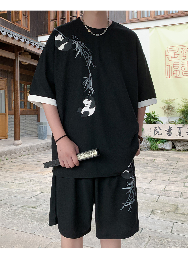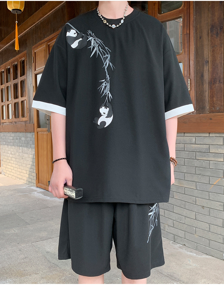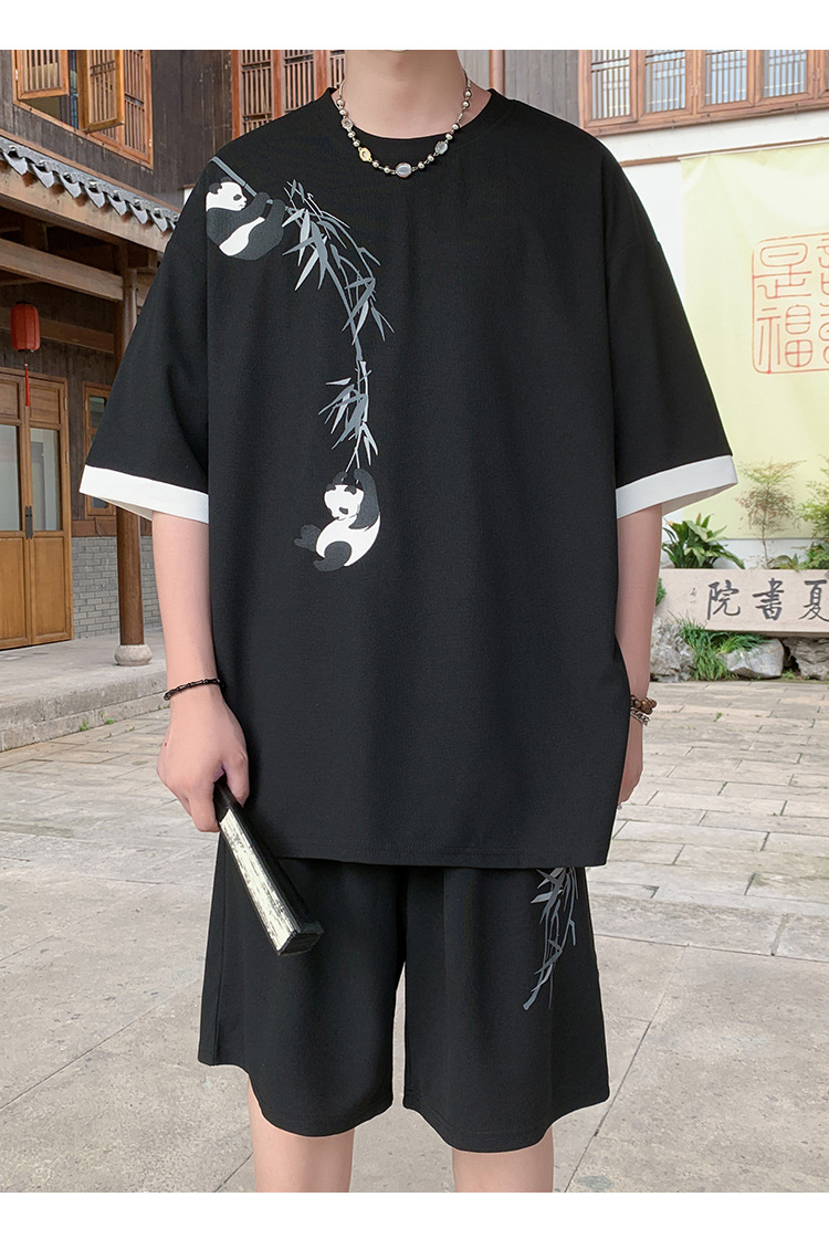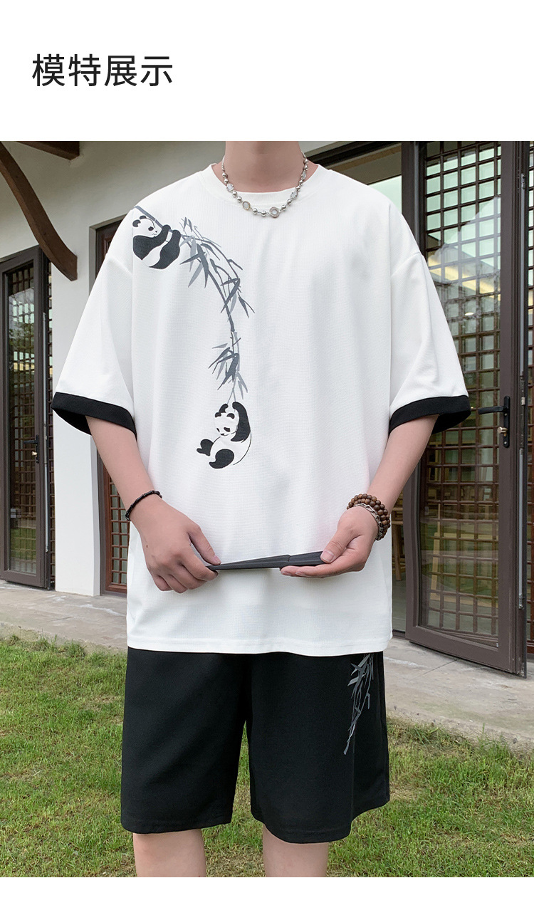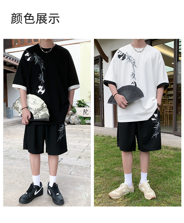 NASA 새로운 중국 패션 캐주얼 스포츠 세트 남성 여름 얇은 아이스 실크 짧은 소매 반바지 느슨한 정리