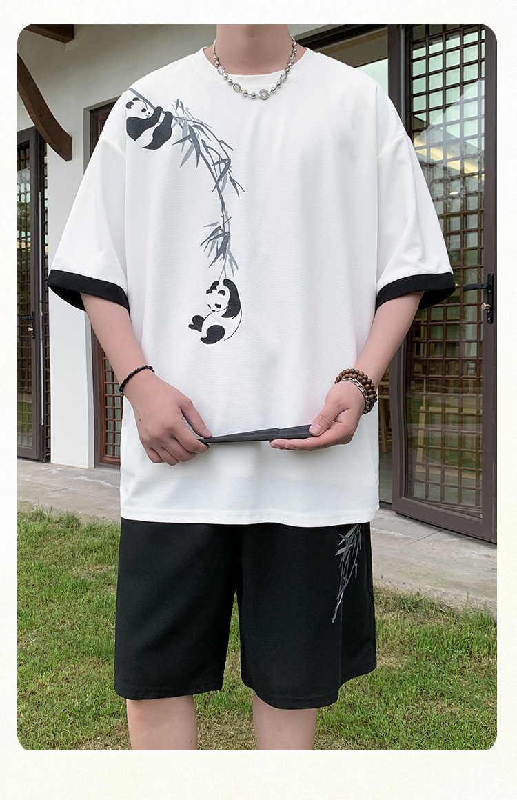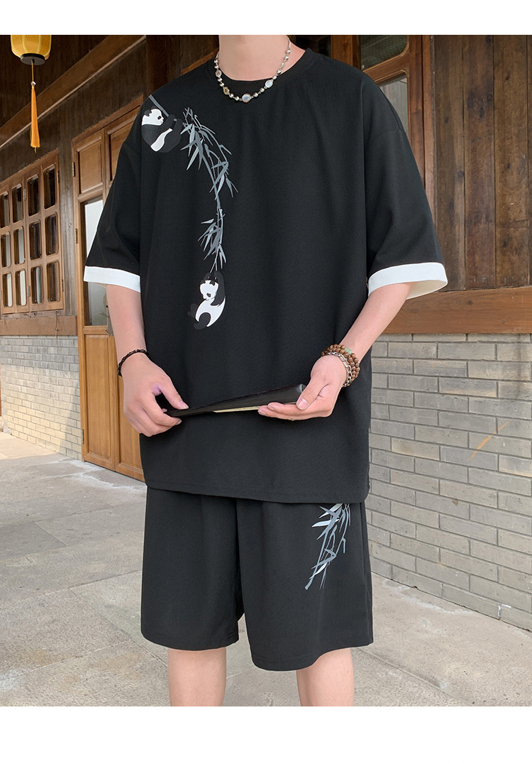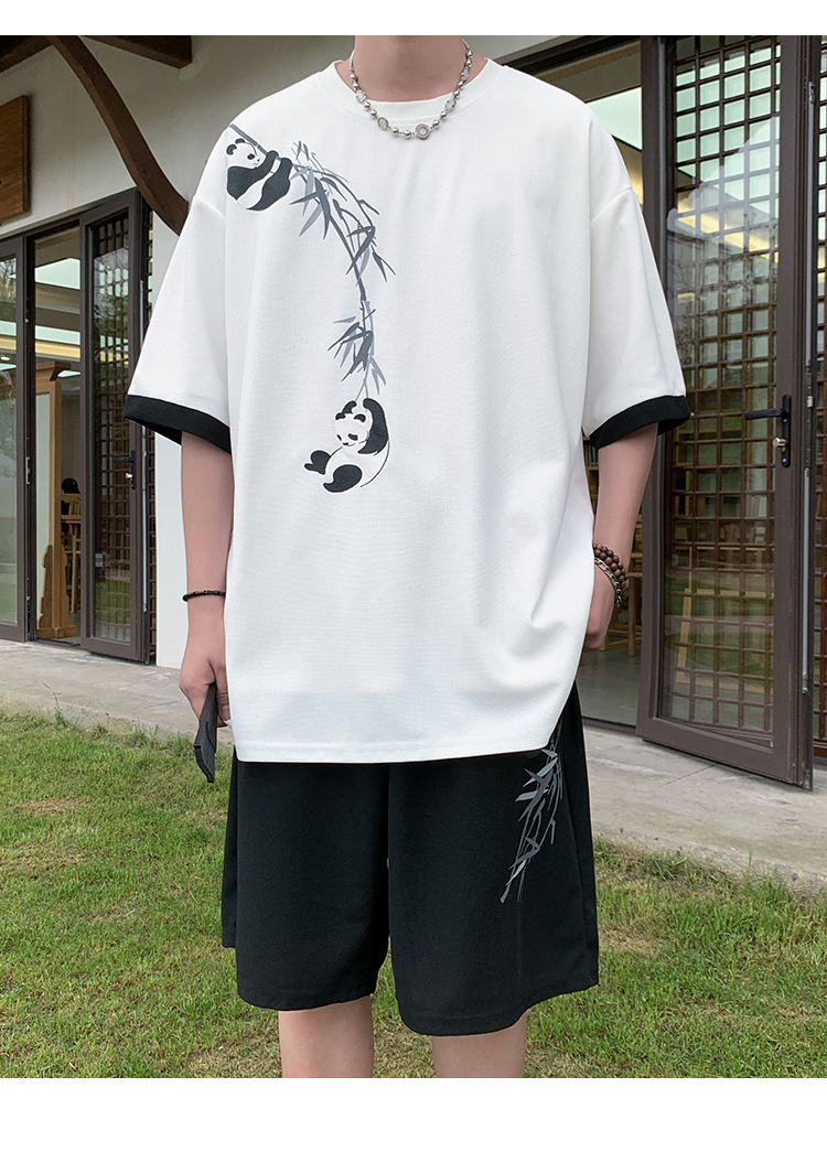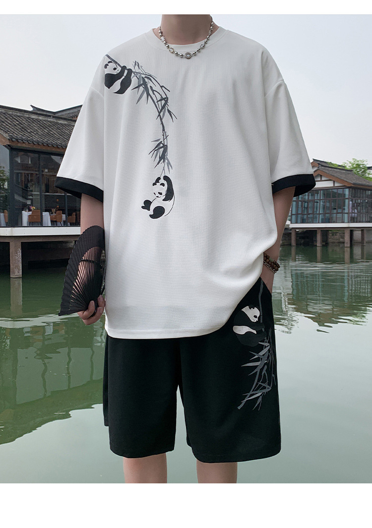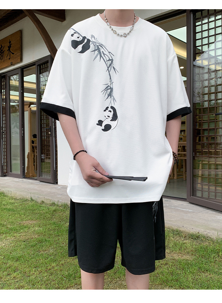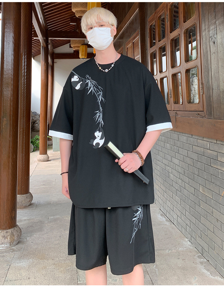 NASA 새로운 중국 패션 캐주얼 스포츠 세트 남성 여름 얇은 아이스 실크 짧은 소매 반바지 느슨한 정리
