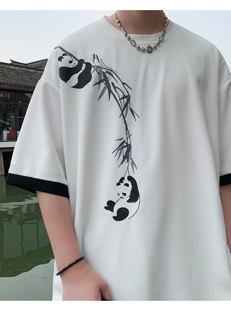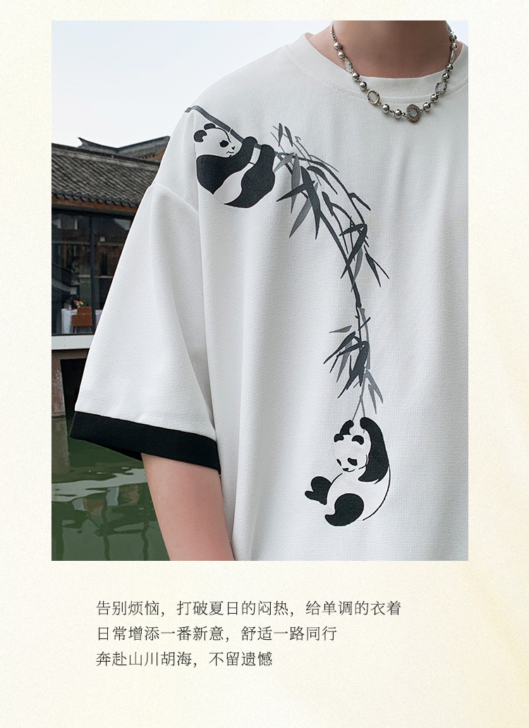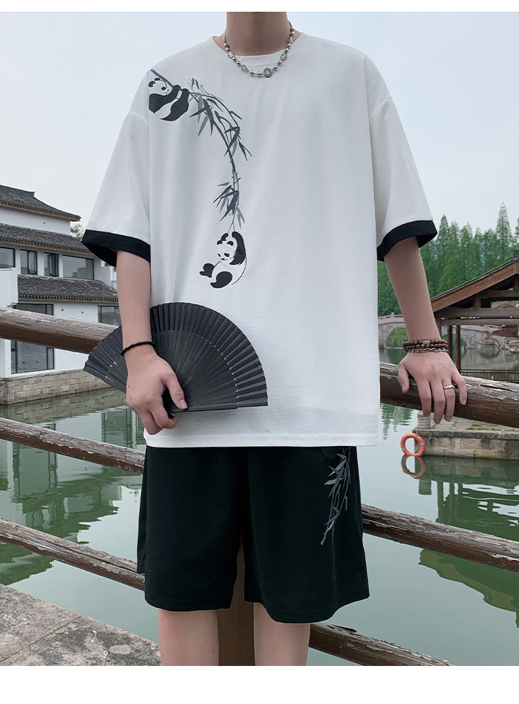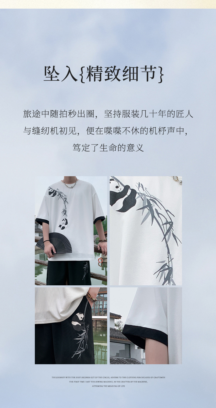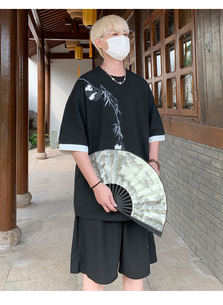 NASA 새로운 중국 패션 캐주얼 스포츠 세트 남성 여름 얇은 아이스 실크 짧은 소매 반바지 느슨한 정리