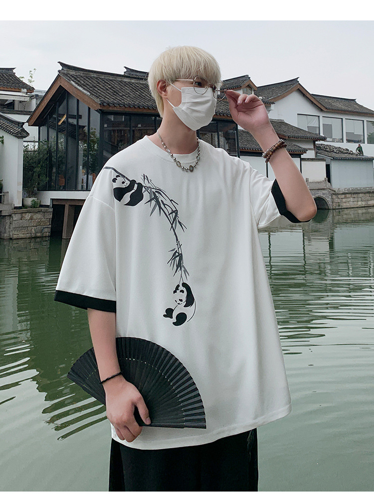 NASA 새로운 중국 패션 캐주얼 스포츠 세트 남성 여름 얇은 아이스 실크 짧은 소매 반바지 느슨한 정리스토어 가기