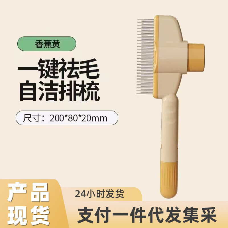 • 업그레이드 모델 - 바나나 옐로우 - 캣 스트립 빗 [제모 마사지, 원클릭 셀프 클리닝]