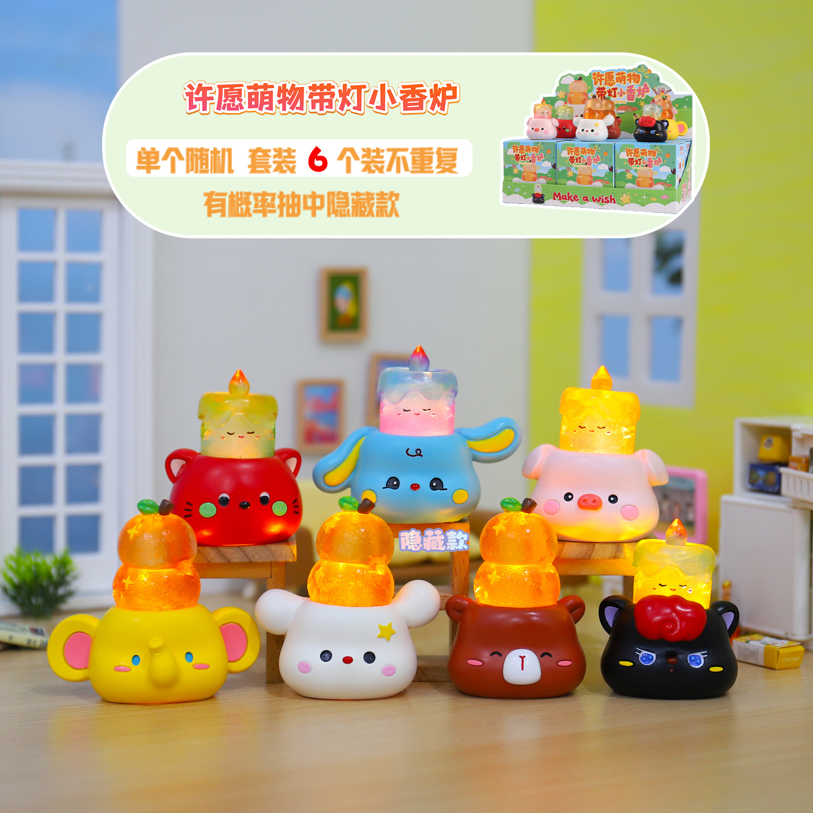 | 【产品名称】 | A133许愿萌物带灯小香炉盲盒-自带垫片+香片 |