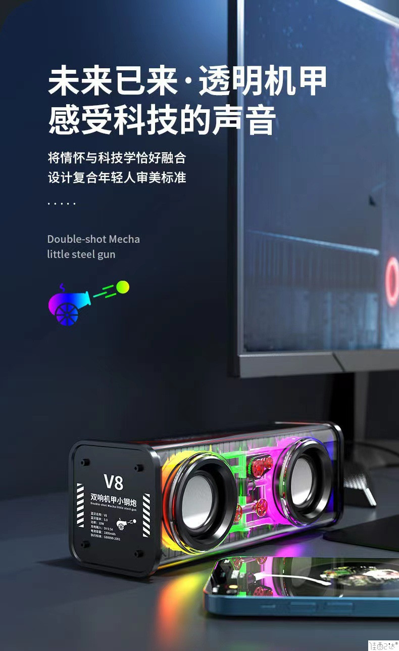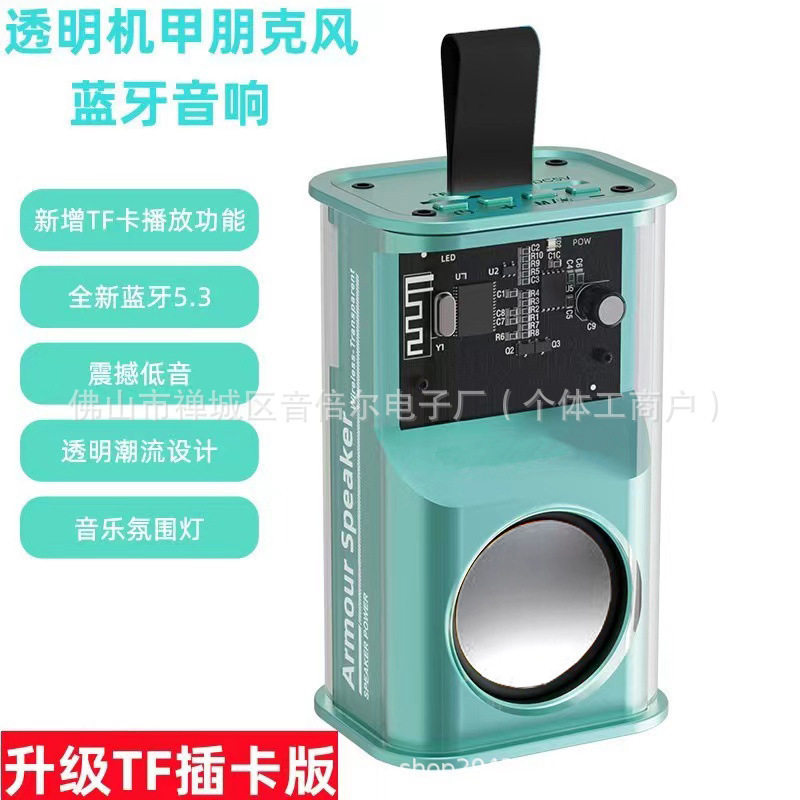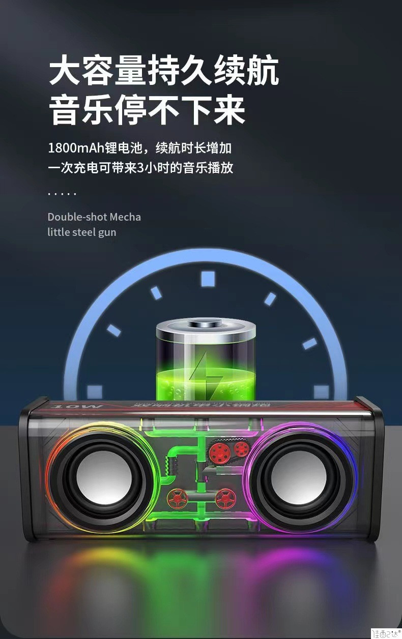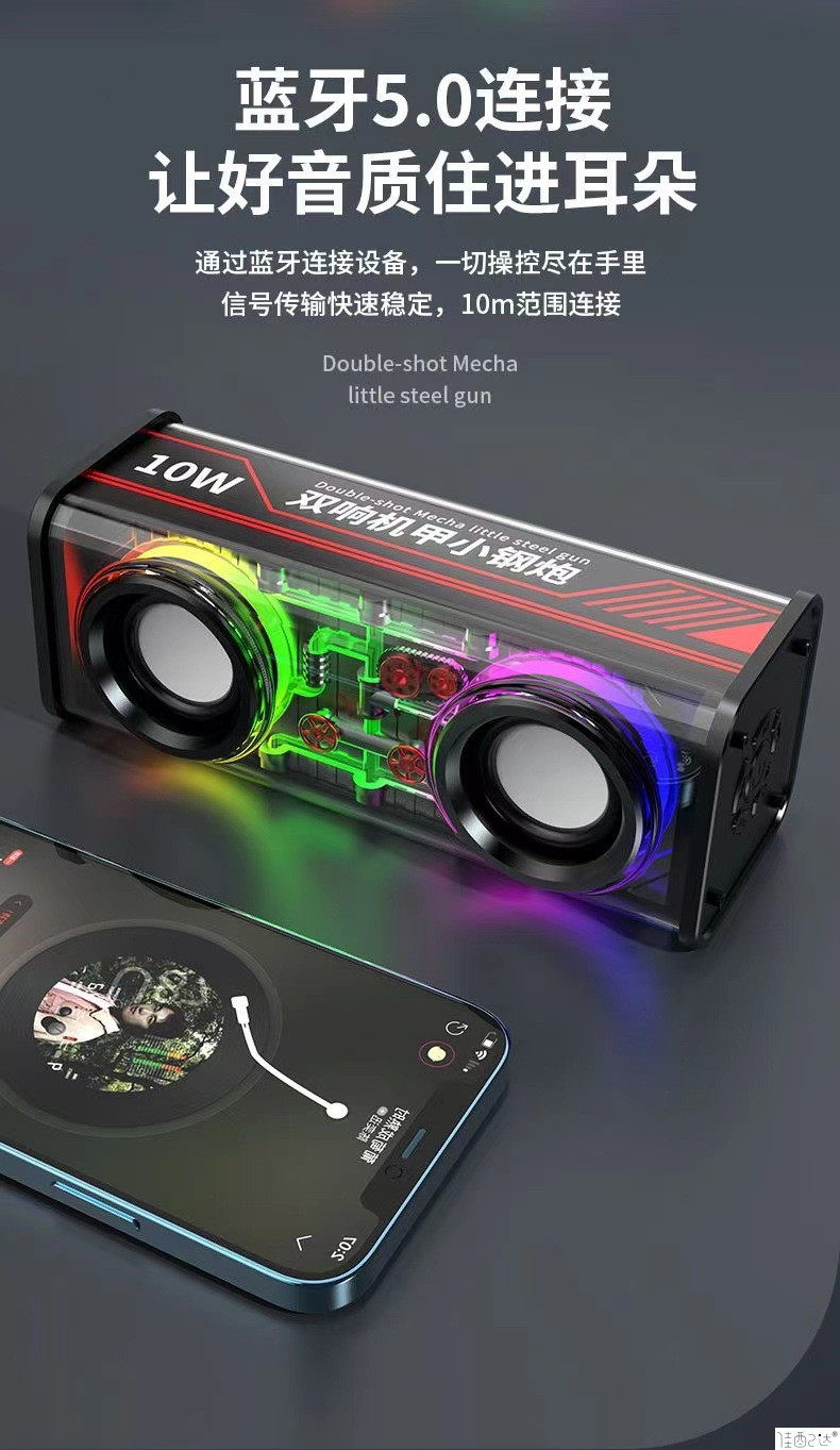 인터넷 연예인 블루투스 스피커 투명 메카 더블 리액션 소형 강철 총 무선 미니 스피커 대용량 다채로운 조명 서브 우퍼