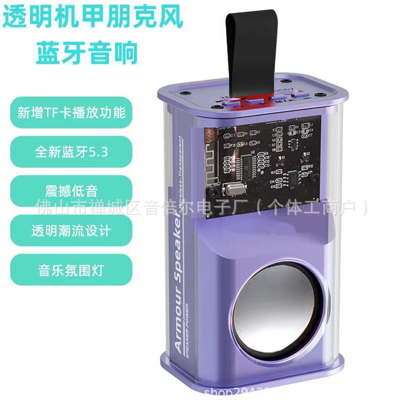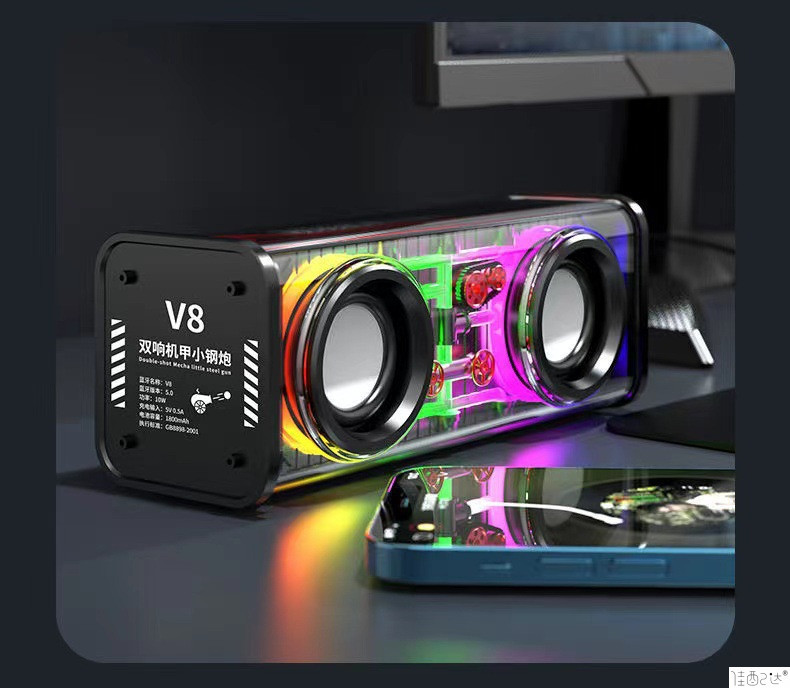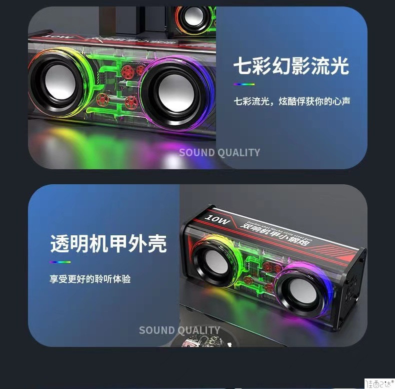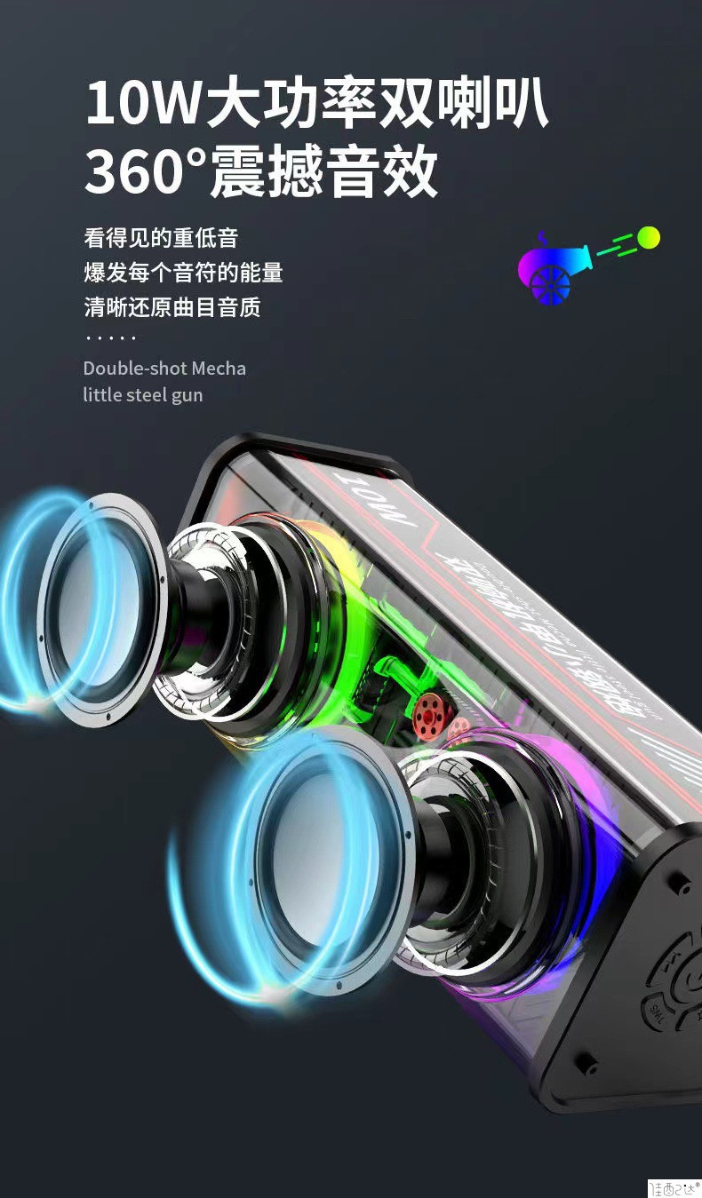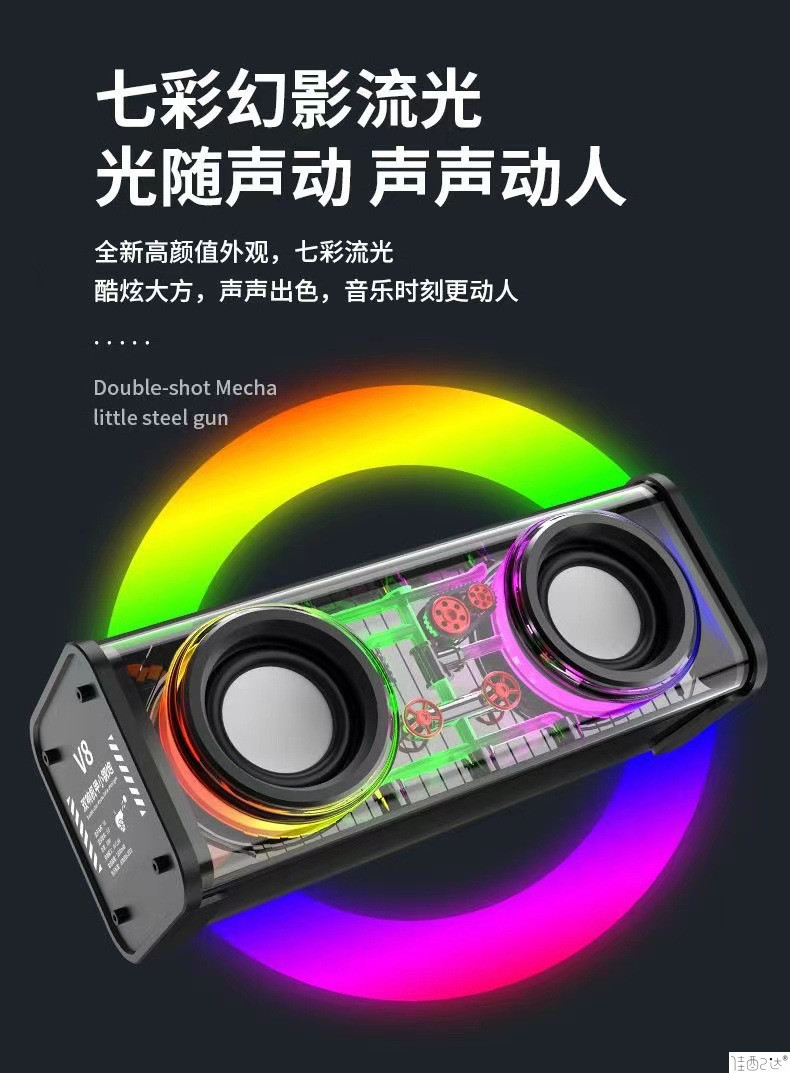 인터넷 연예인 블루투스 스피커 투명 메카 더블 리액션 소형 강철 총 무선 미니 스피커 대용량 다채로운 조명 서브 우퍼