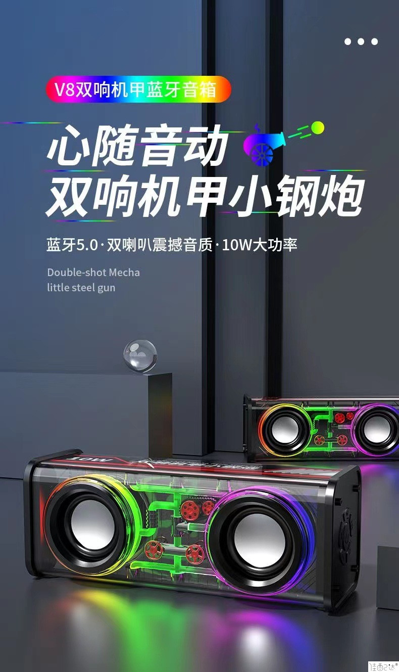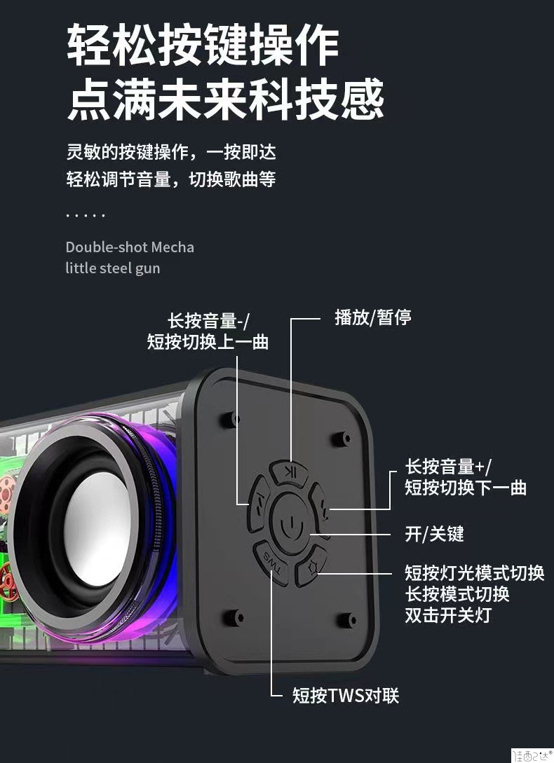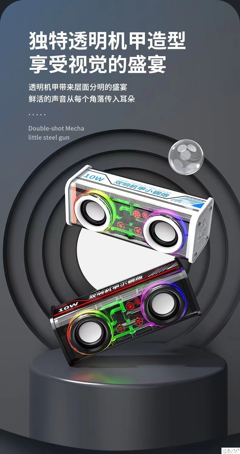 인터넷 연예인 블루투스 스피커 투명 메카 더블 리액션 소형 강철 총 무선 미니 스피커 대용량 다채로운 조명 서브 우퍼스토어 가기