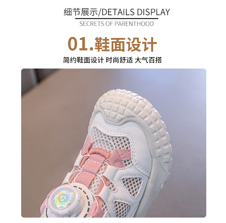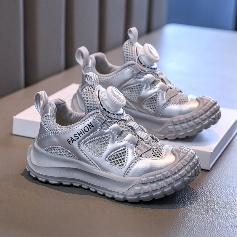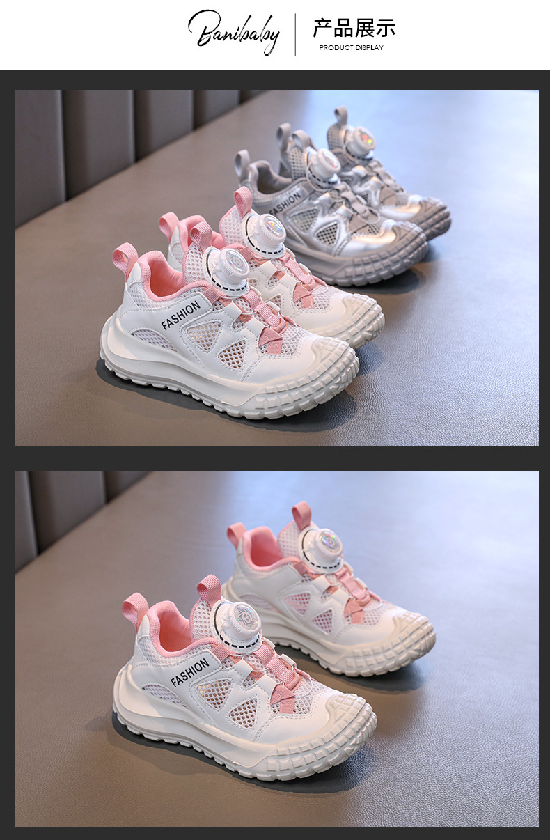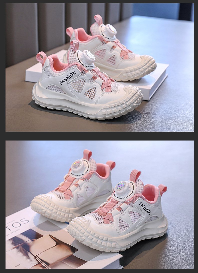 버튼 어린이 신발 싱글 그물 통기성 소년 소녀 운동화 봄과 여름 2025 새로운 중공 메쉬 대형 어린이 운동화스토어 가기