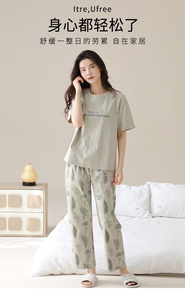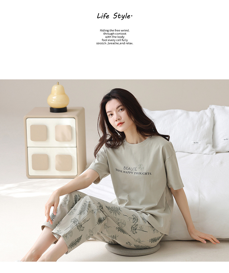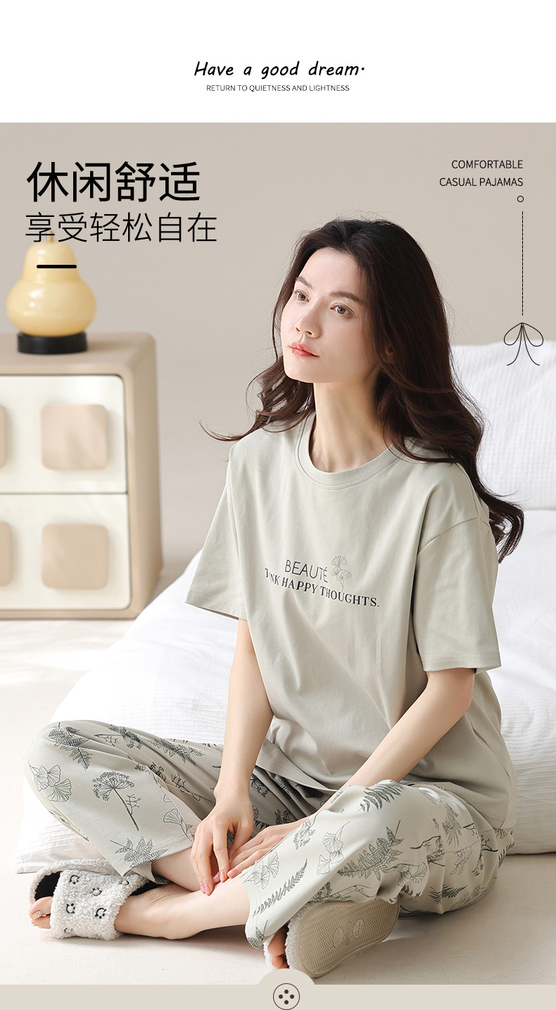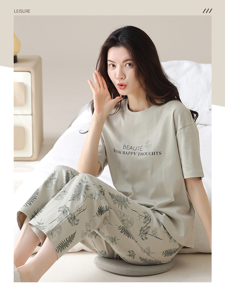 여성 잠옷 여성 면 100% 면 반팔 바지 투피스 세트 트렌디 패션 캐주얼 홈웨어스토어 가기