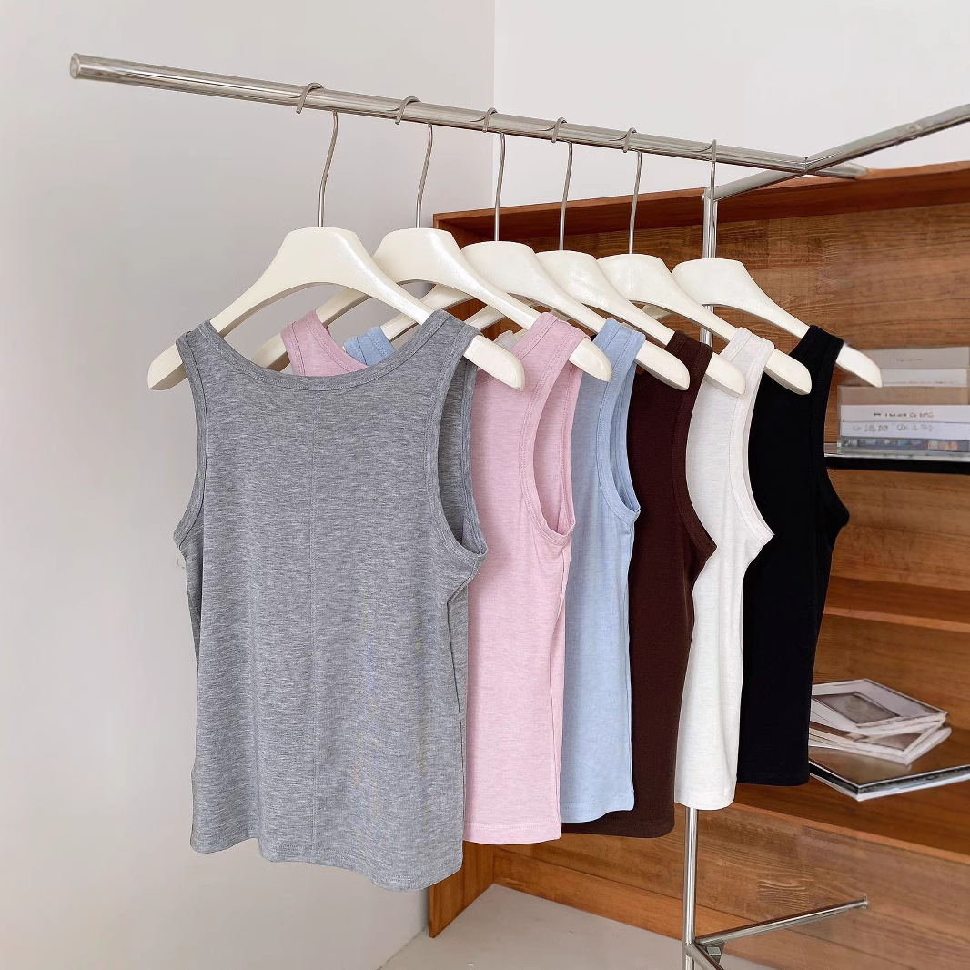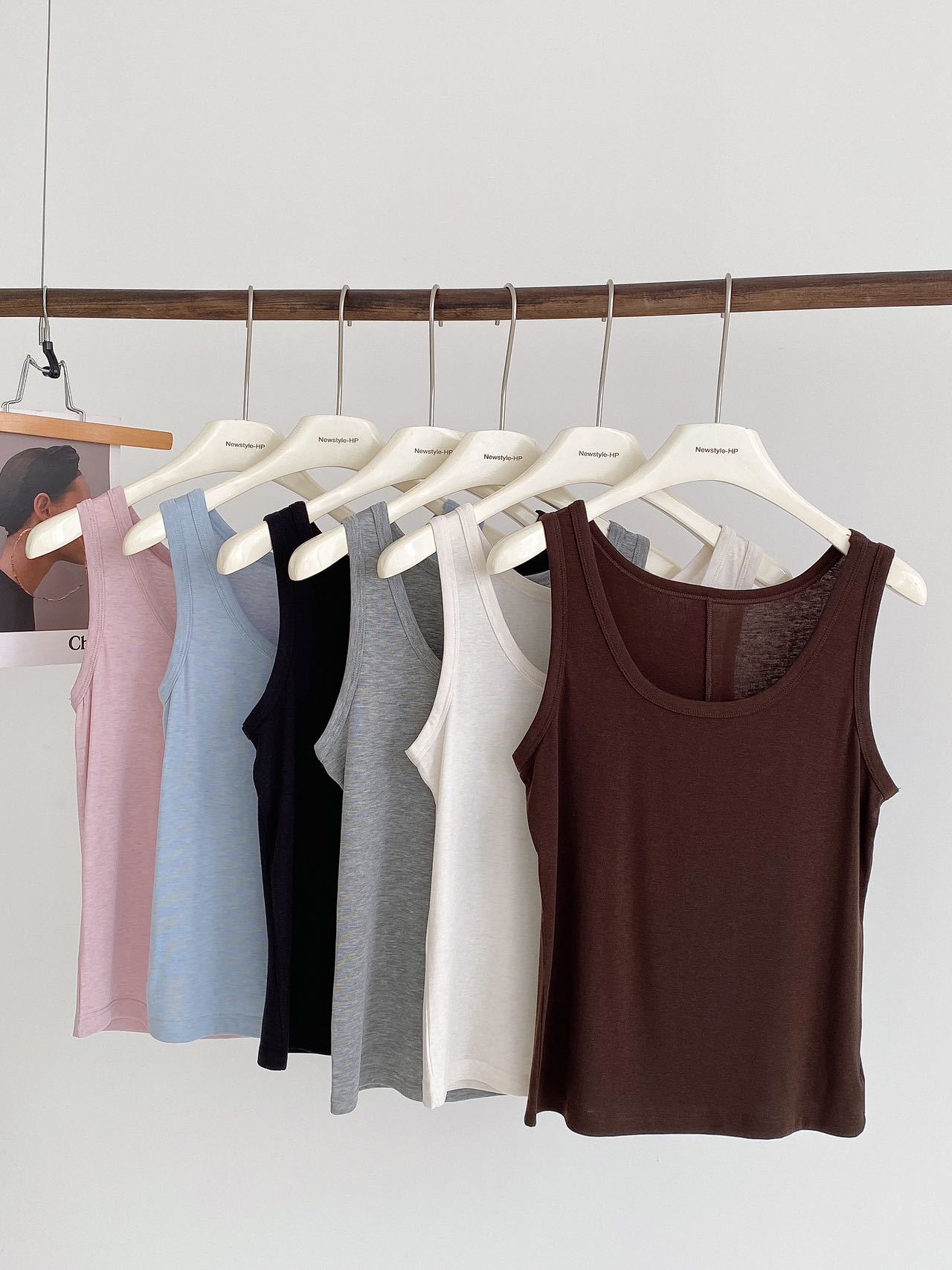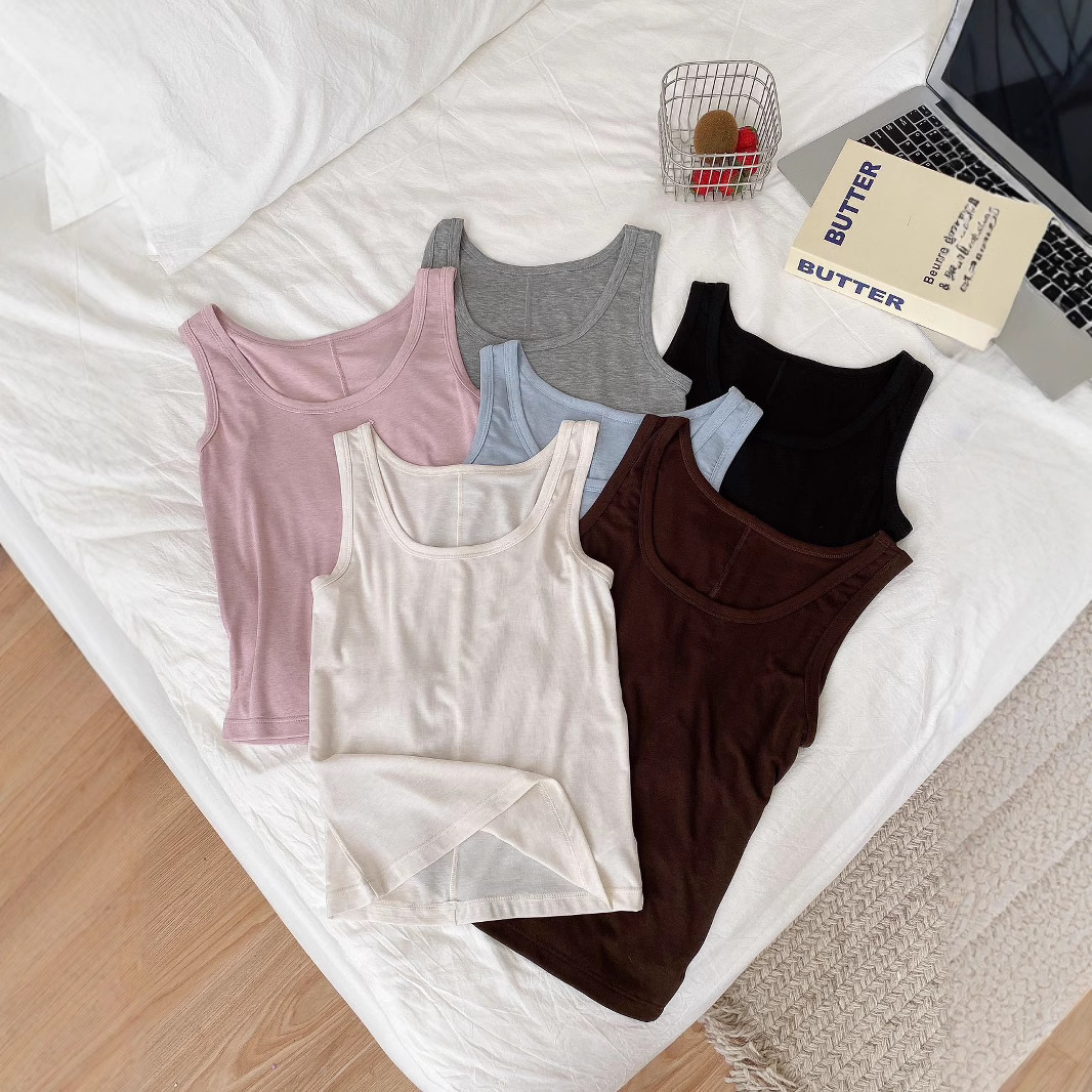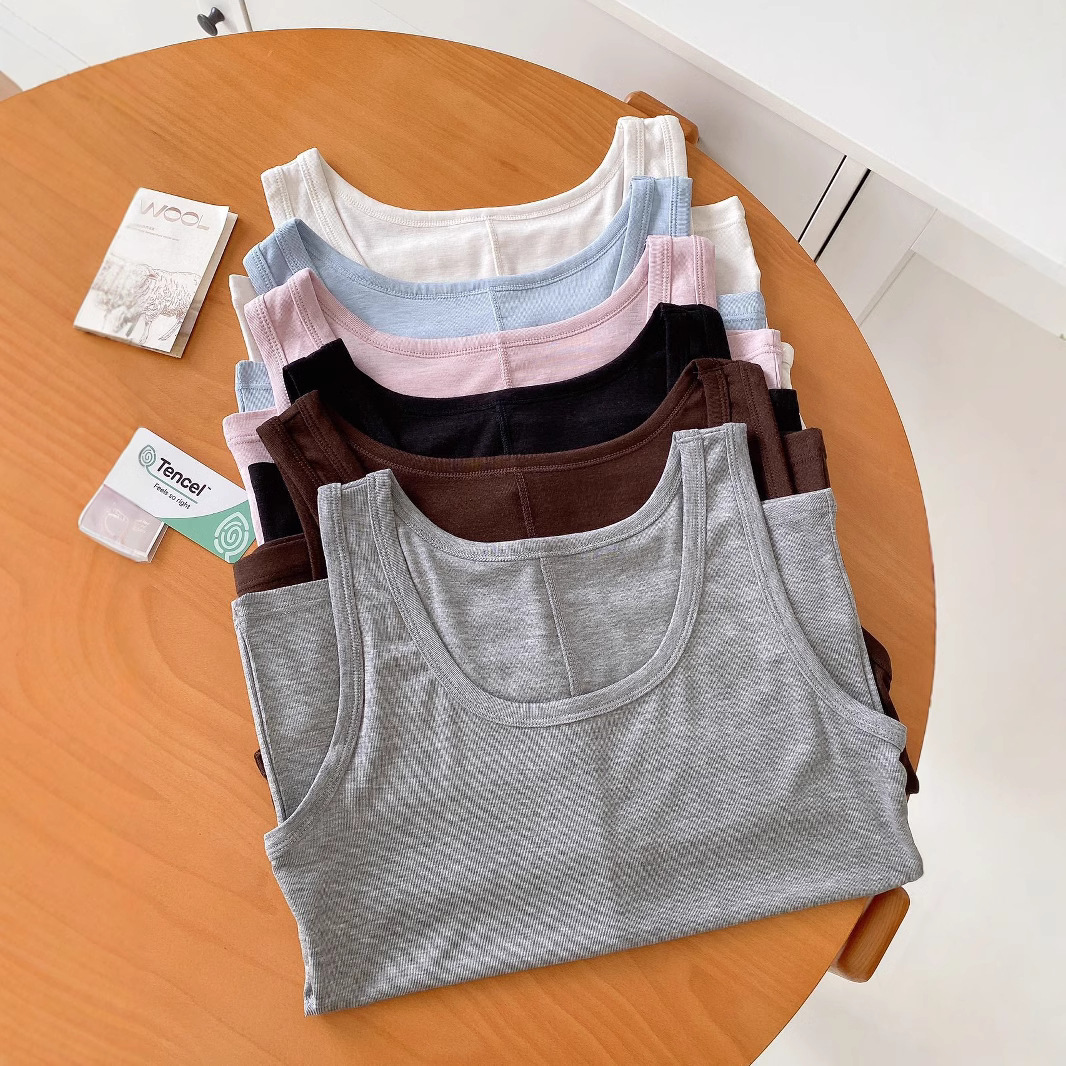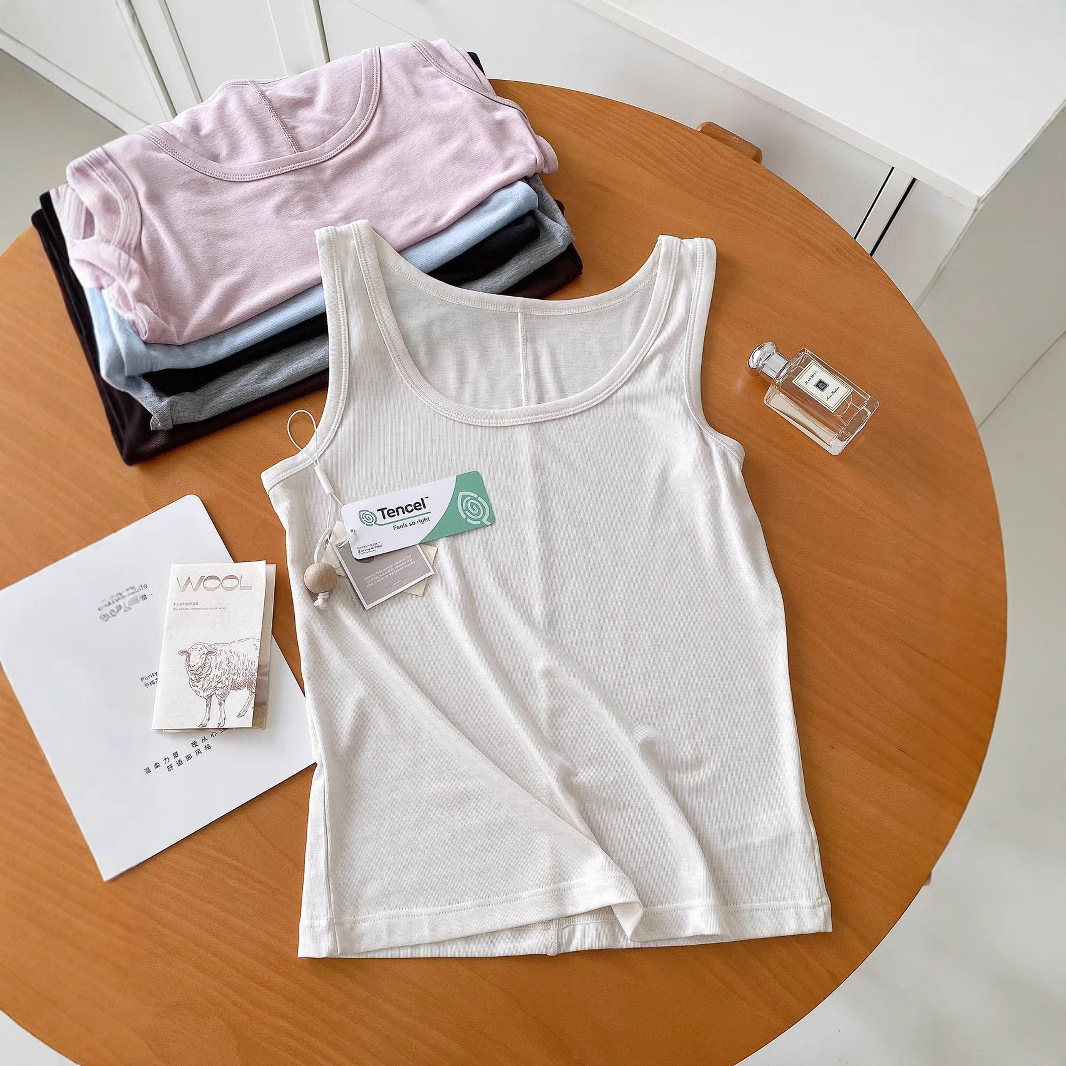 스팟 리오셀 아세테이트 텐셀 양털 U 넥 조끼 민소매 내부 레이어링 셔츠 탑 솔리드 컬러 인 조끼스토어 가기