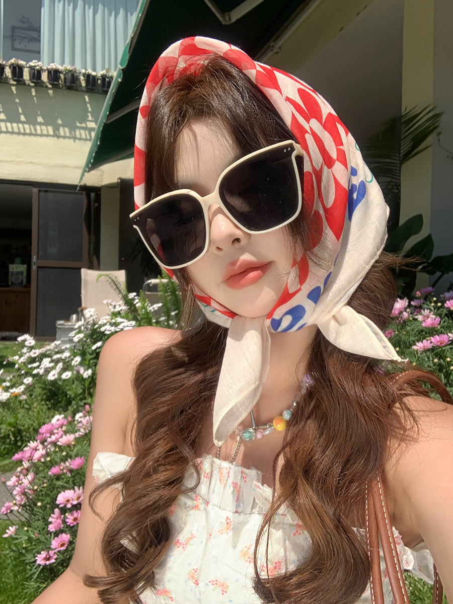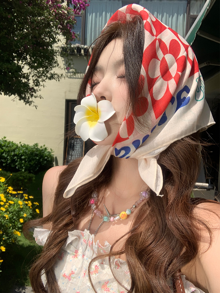 여름과 가을 여성용 프랑스 고급 작은 사각형 스카프, 해변 및 해변 사진 촬영, 자외선 차단제 실크 스카프, 공장 직접 판매