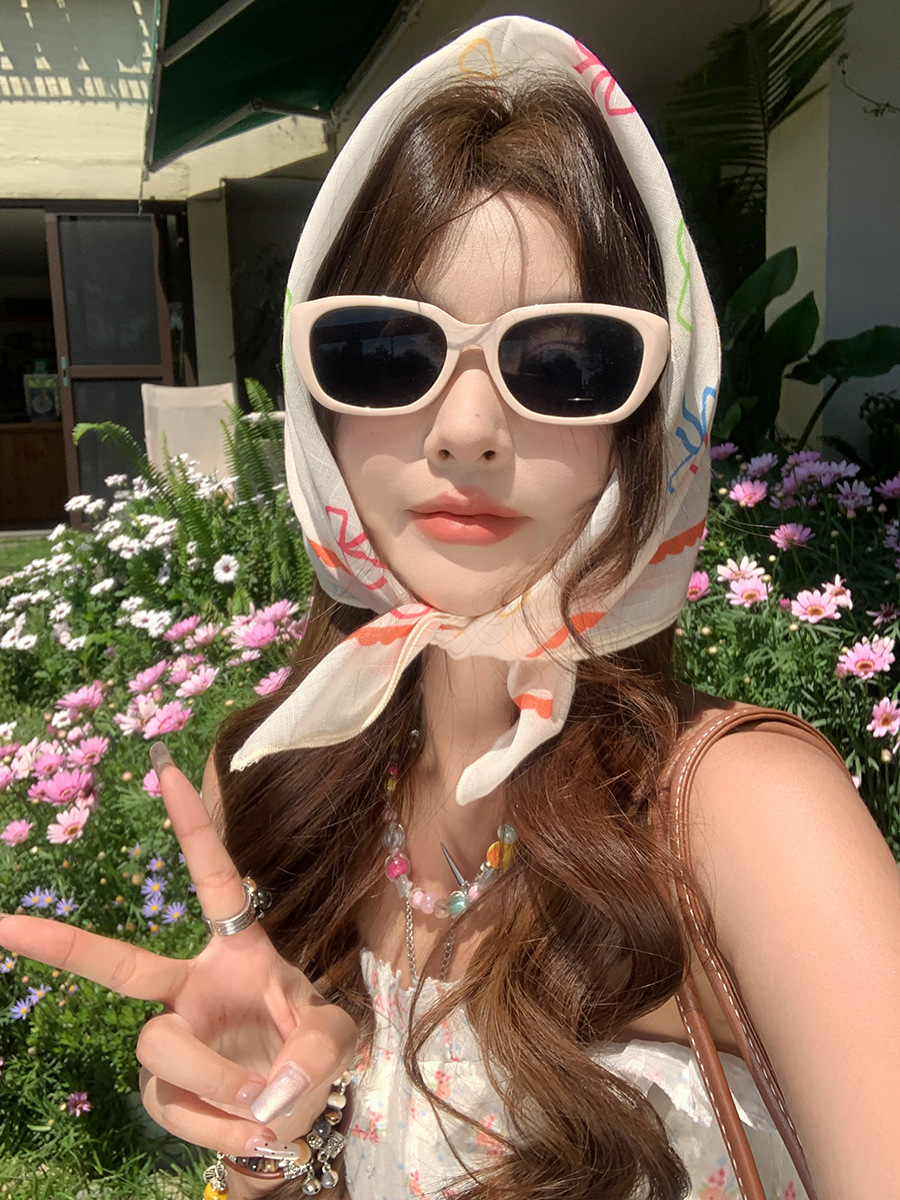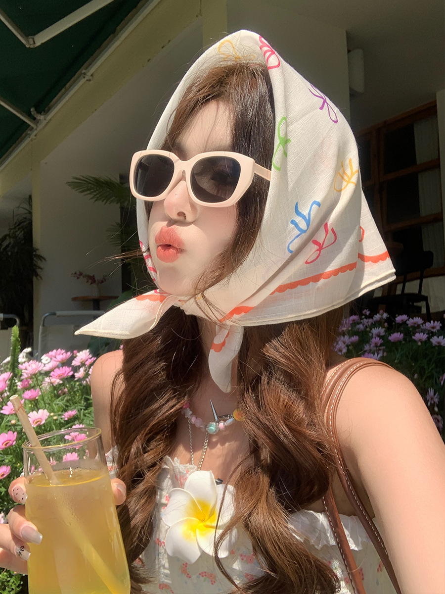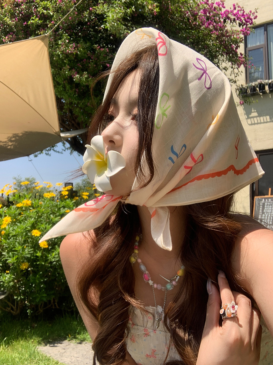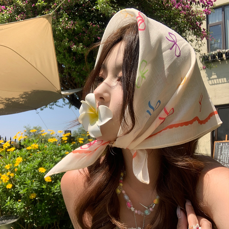 여름과 가을 여성용 프랑스 고급 작은 사각형 스카프, 해변 및 해변 사진 촬영, 자외선 차단제 실크 스카프, 공장 직접 판매스토어 가기