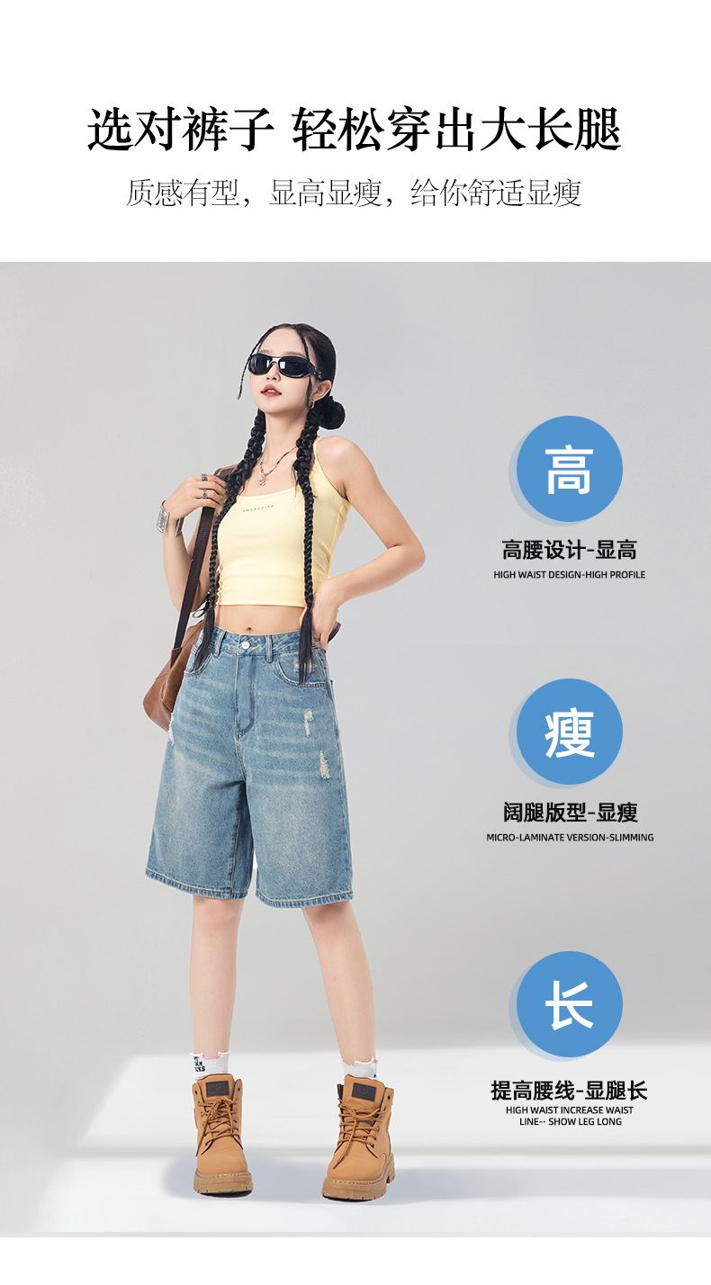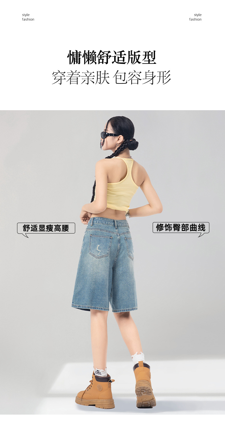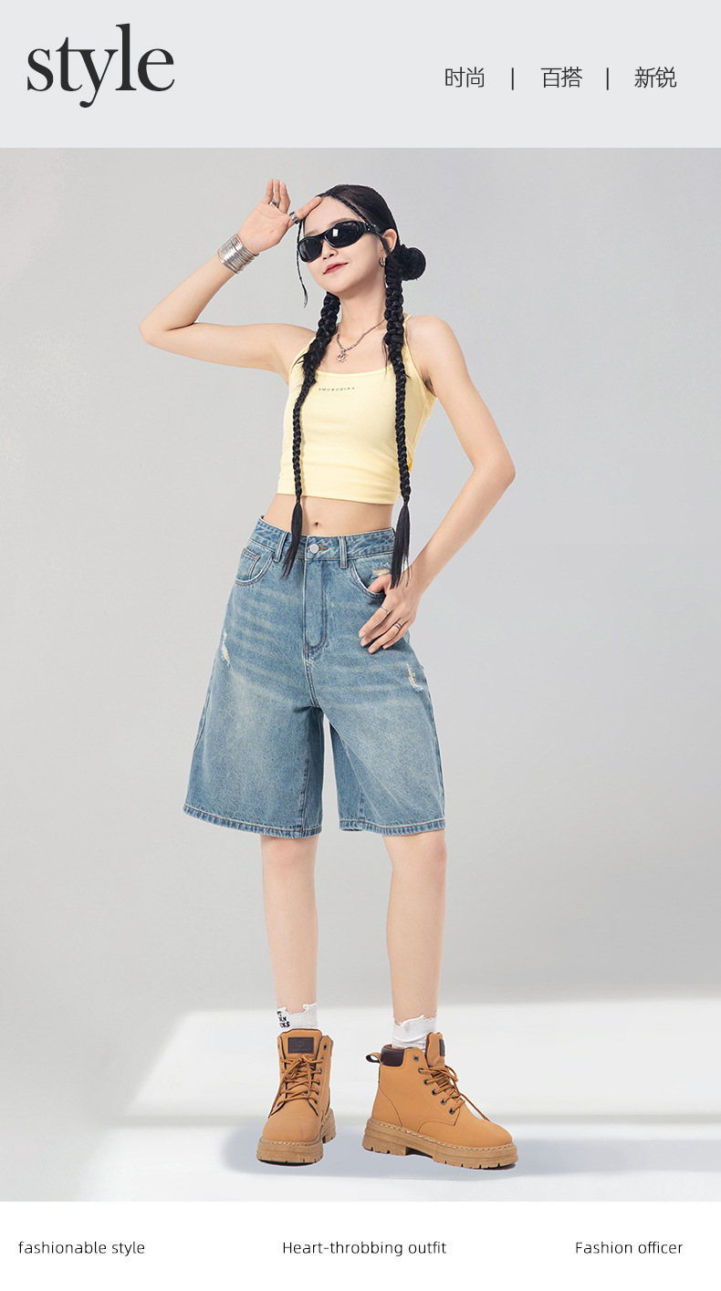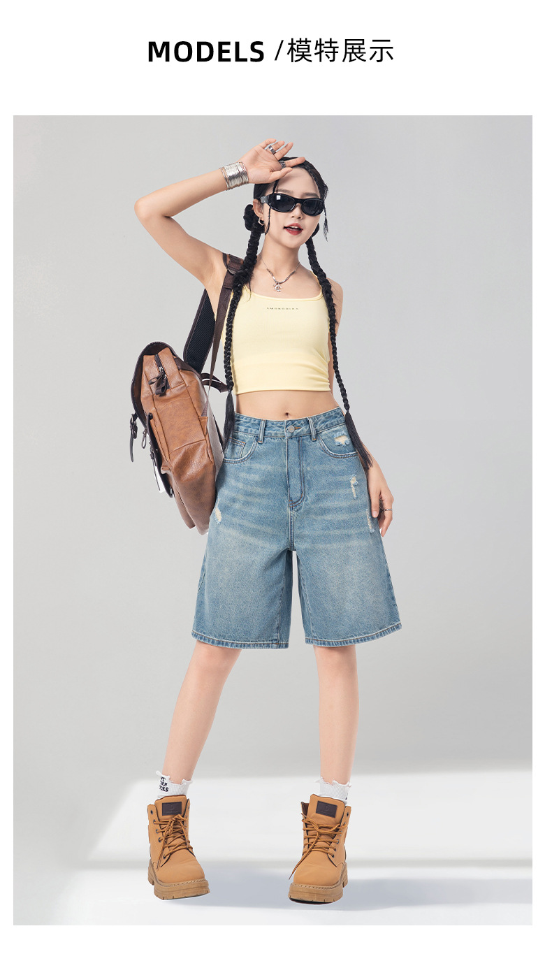 레트로 블루 스트레이트 레그 5부 데님 반바지 여성용 여름 2026 신상 루즈핏 하이 스트리트 디자인 와이드 레그 다용도 활용 가능스토어 가기
