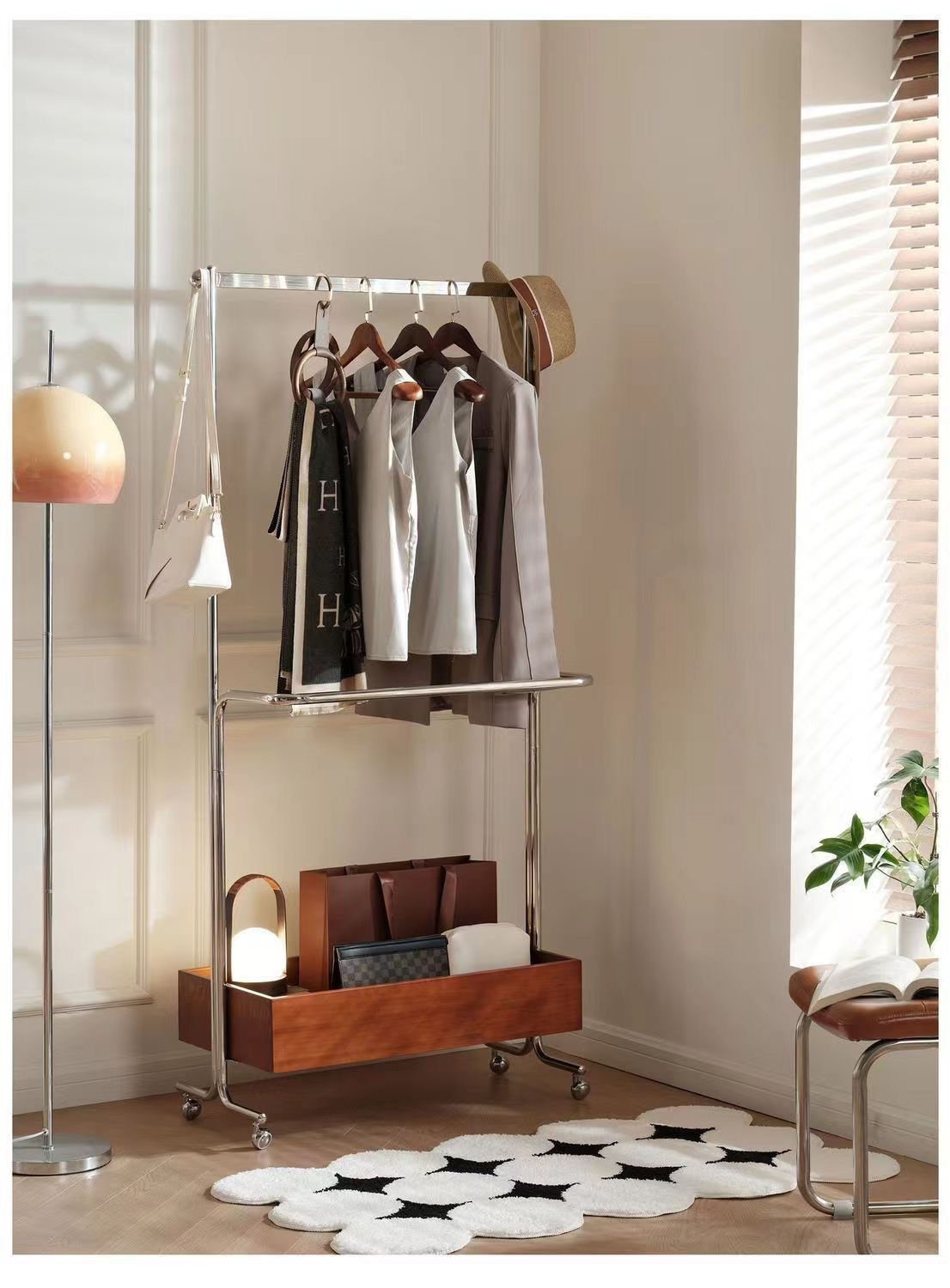 현대 중간 고대 바닥 옷 옷걸이 스테인리스 옷걸이 옷 랙 침실 모바일 의류 보관 옷 랙
