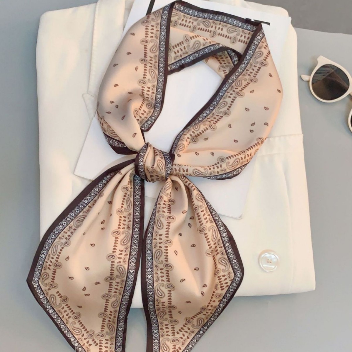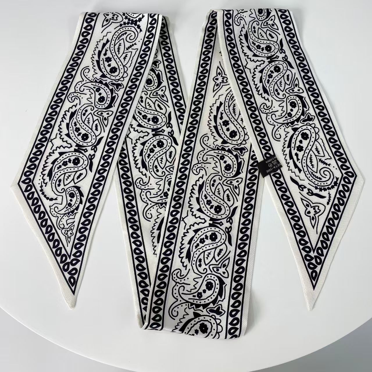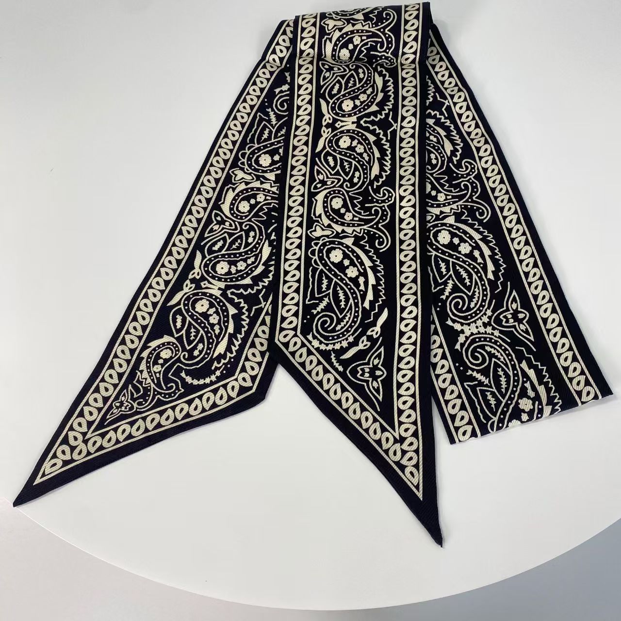 새로운 캐슈 블랙과 화이트 캐슈 클래식 리본 스카프 헤어 밴드 여성 보호 가방 핸들 실크 스카프 좁은 긴 스카프