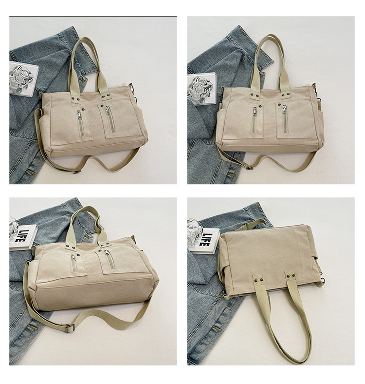 일본식 대용량 캔버스 가방 여성용 Ins 캐주얼 빈티지 핸드백 멀티 포켓 여성용 독특한 어깨 크로스 바디 백