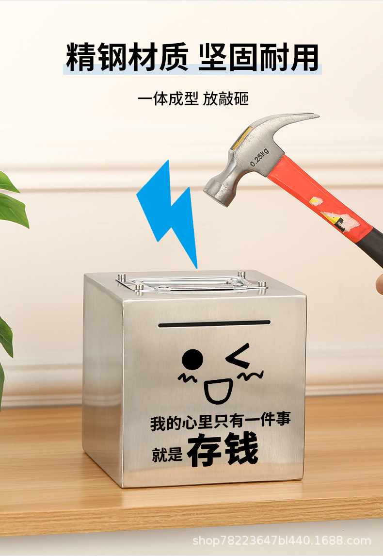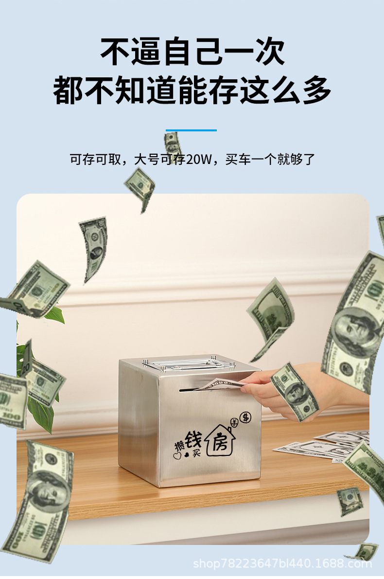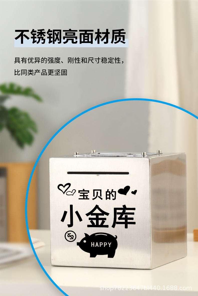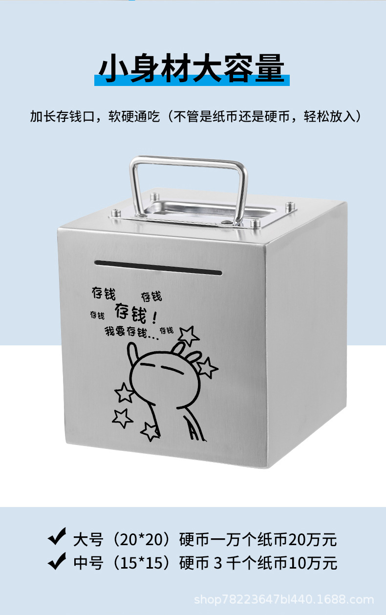 인터넷 연예인 휴대용 스테인레스 스틸 저금통은 새겨질 수 있으며, 돈 상자, 동전 및 지폐를 넣고 빼낼 수 있습니다. 어린이 저금통스토어 가기