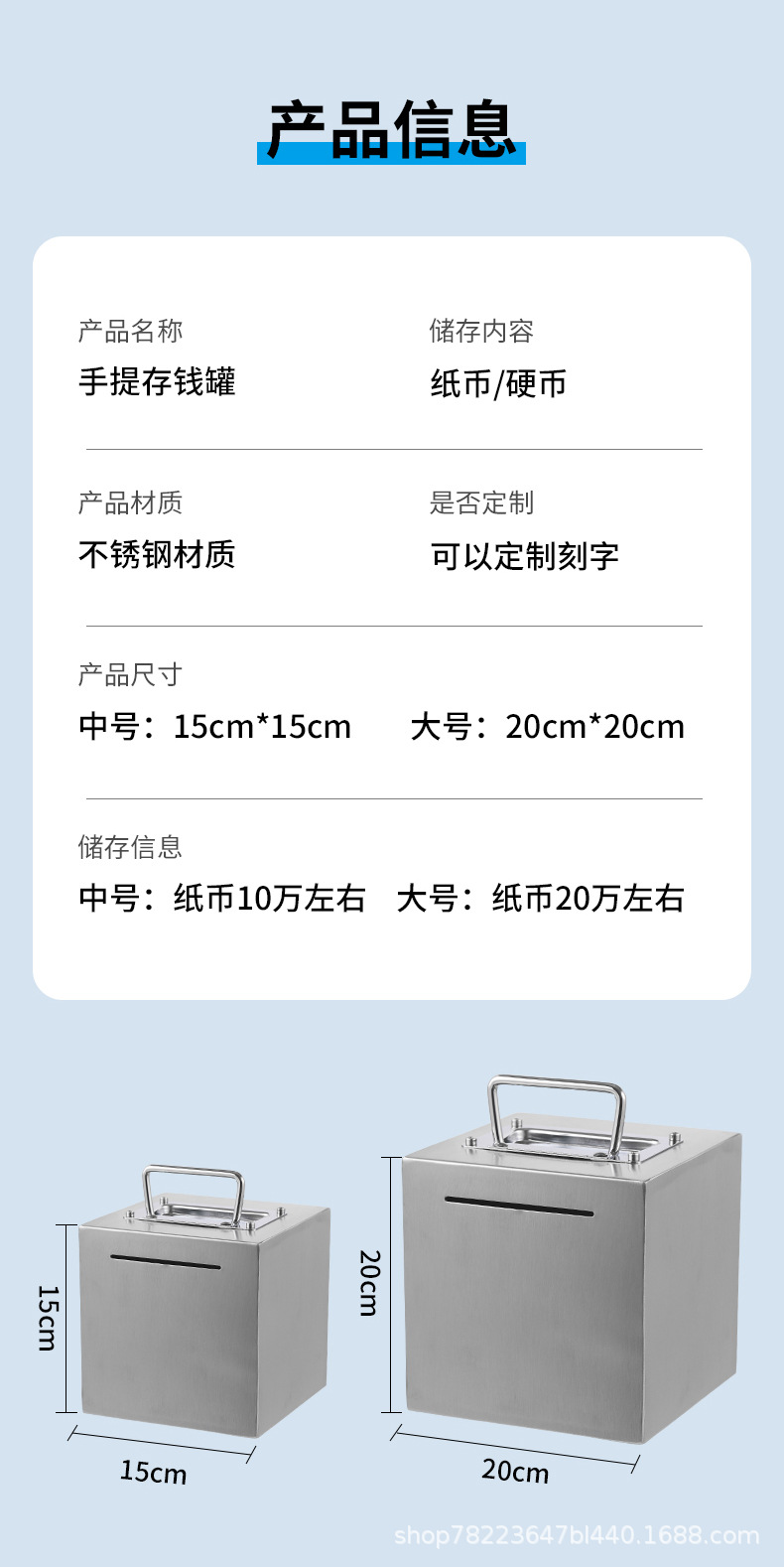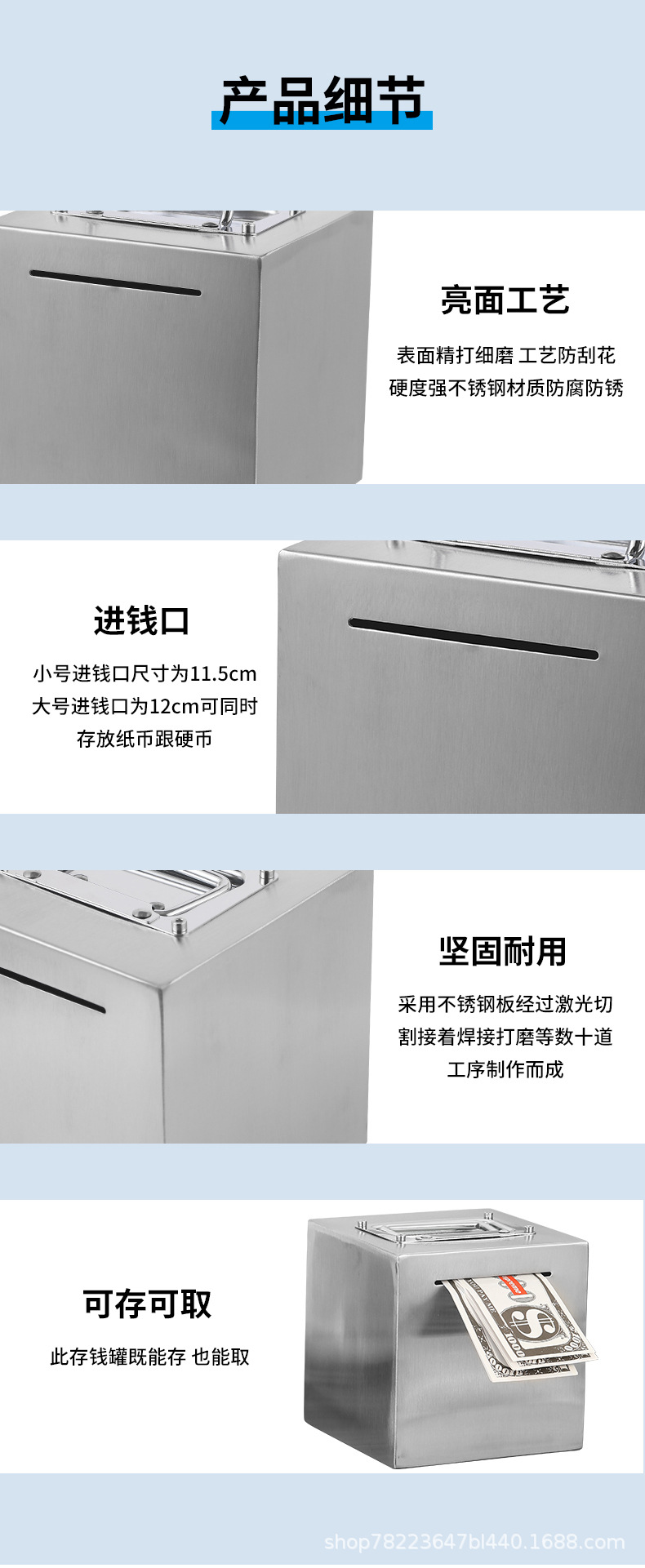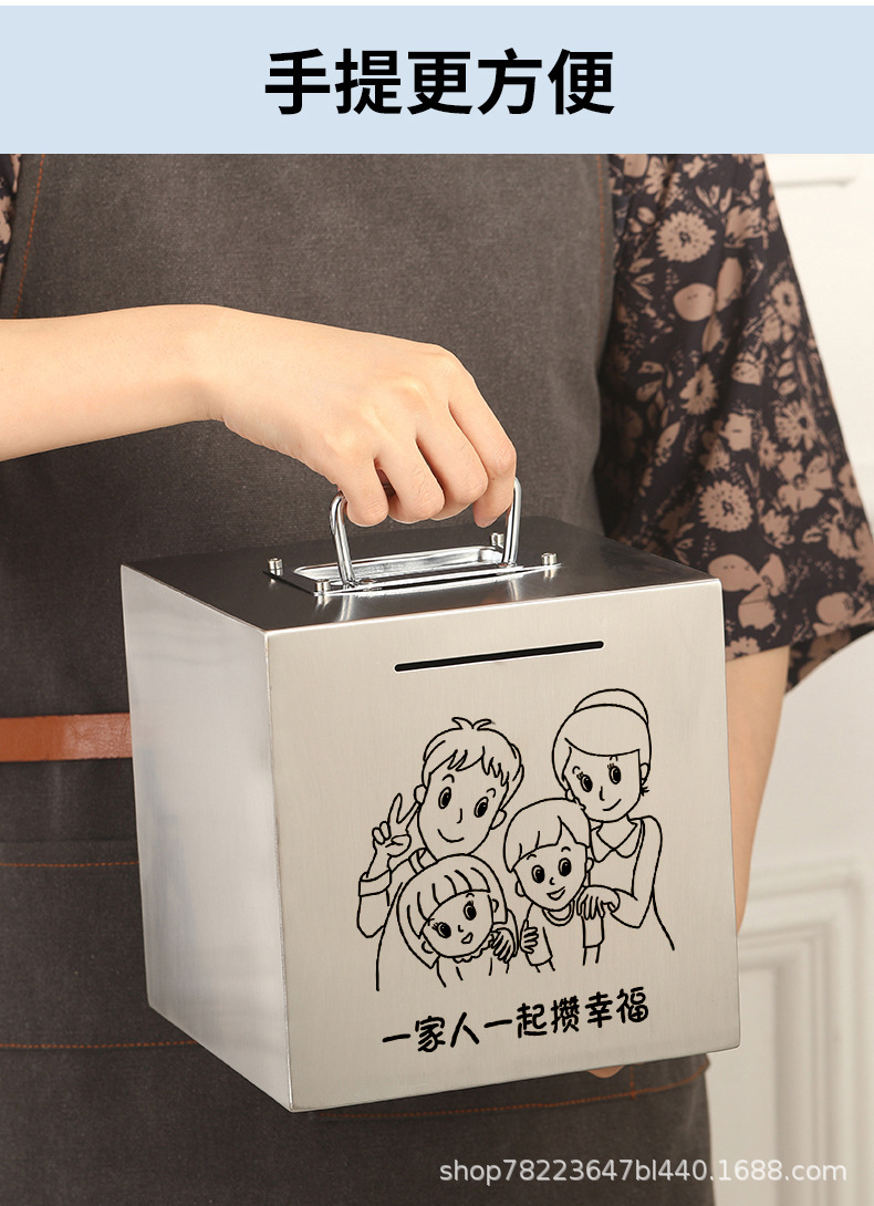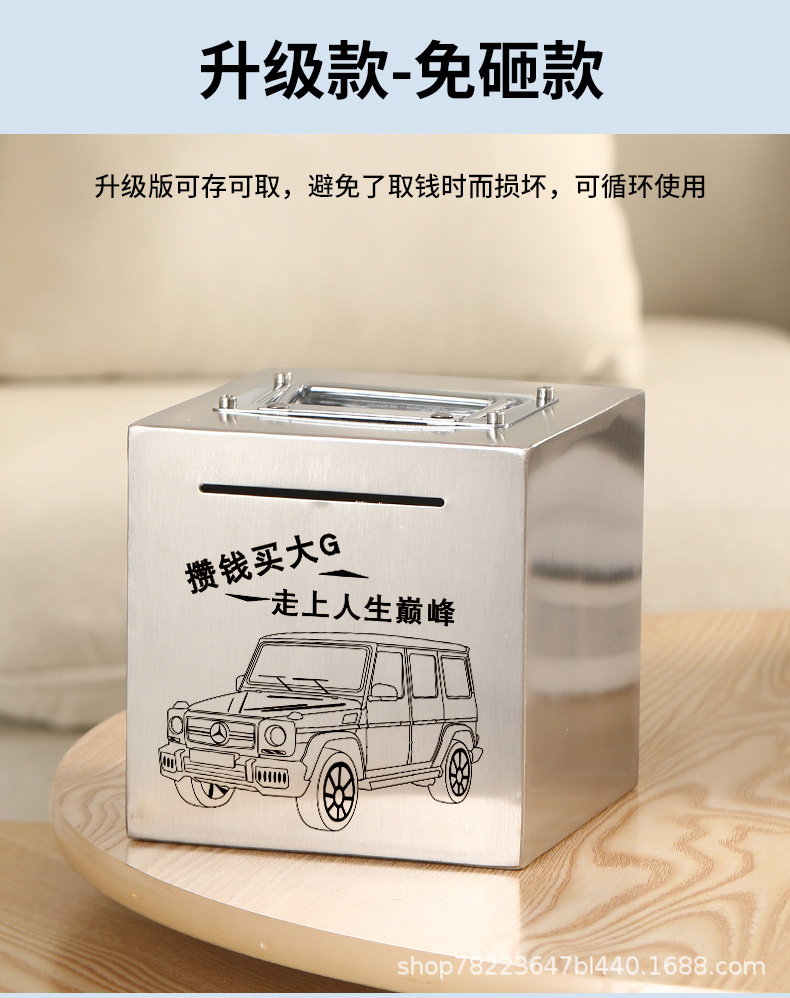 인터넷 연예인 휴대용 스테인레스 스틸 저금통은 새겨질 수 있으며, 돈 상자, 동전 및 지폐를 넣고 빼낼 수 있습니다. 어린이 저금통스토어 가기