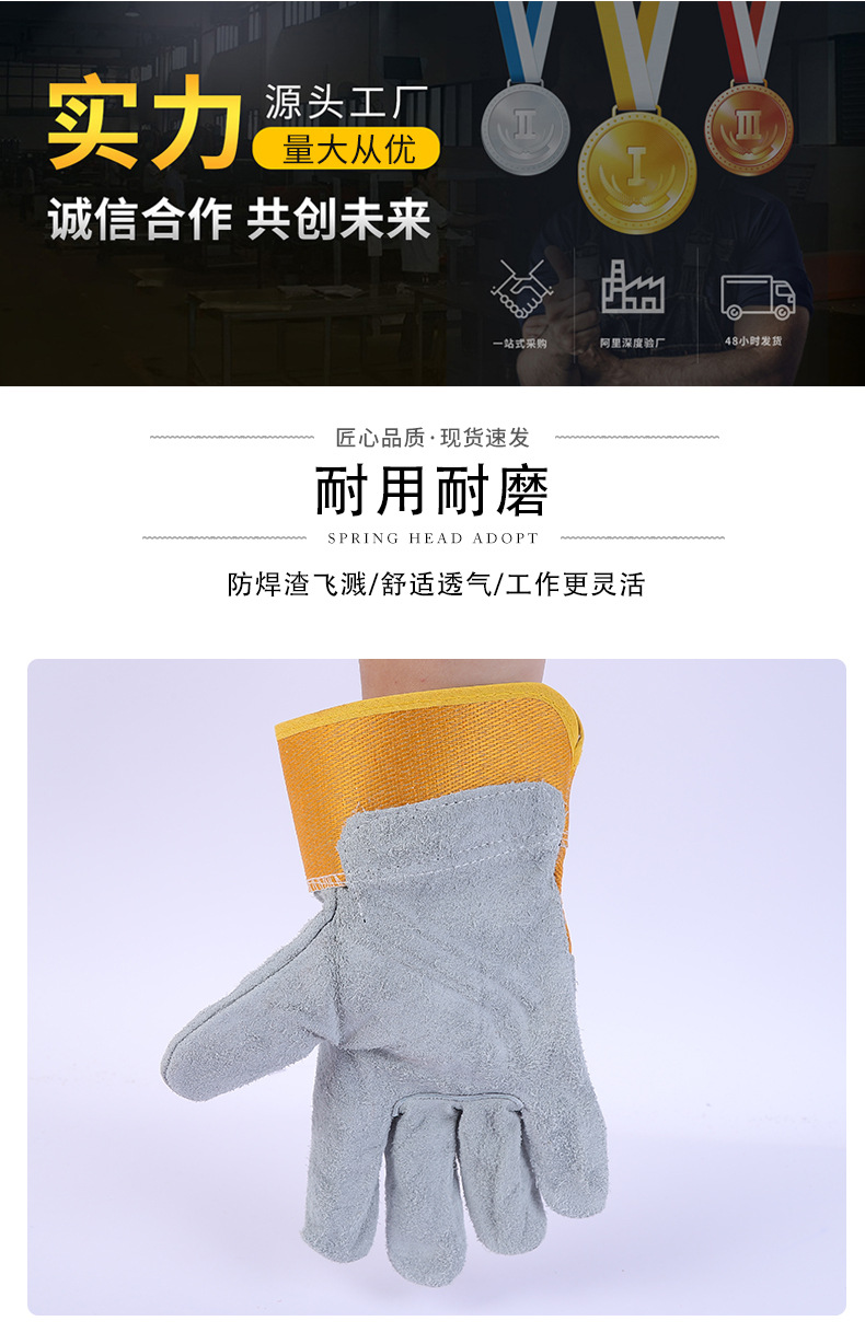 용접기 장갑 길어진 패딩 더블 레이어 용접기 소 가죽 장갑 현장 노동 장갑 공장 도매스토어 가기