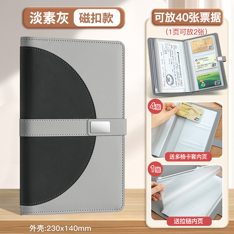 • [마그네틱 버클] 라이트 그레이/지폐 40장 + 카드 24장 수납 가능/사이드백 포함