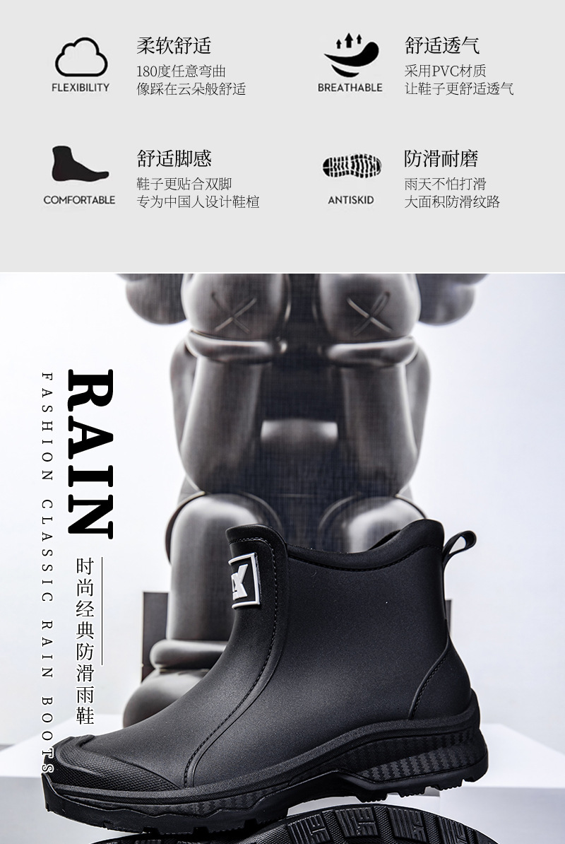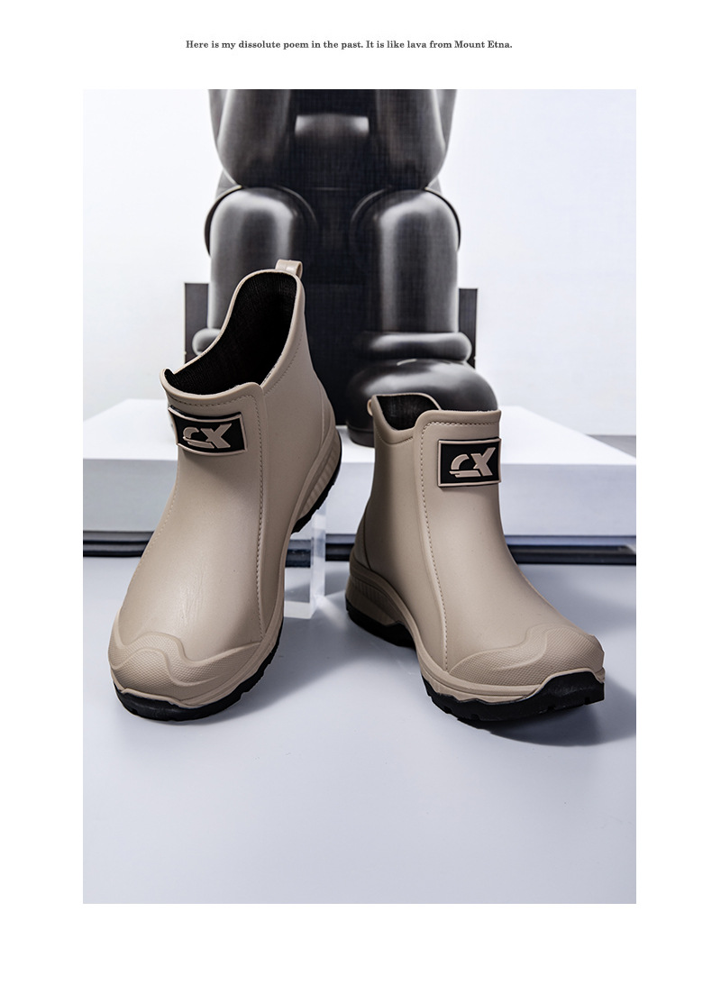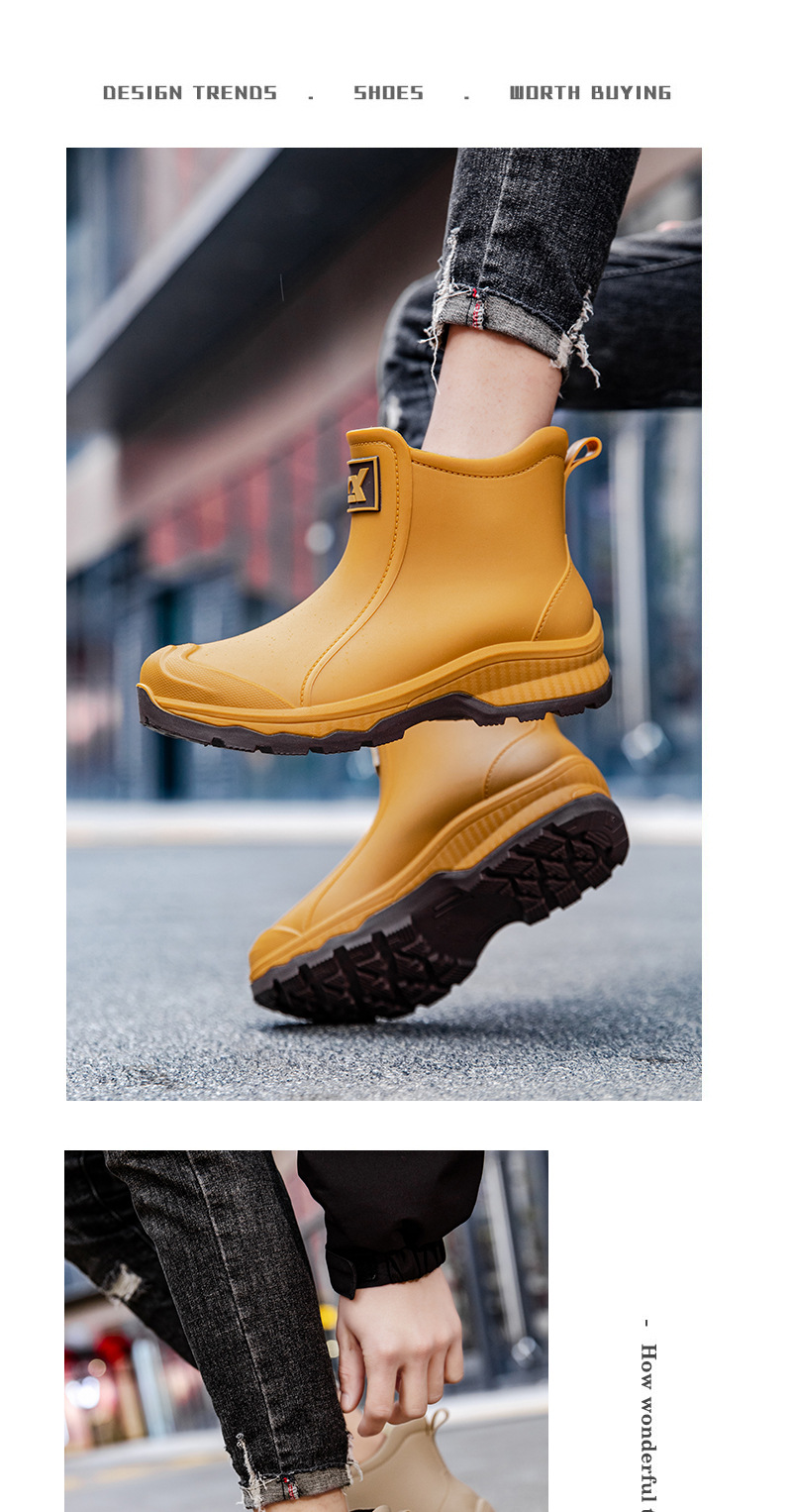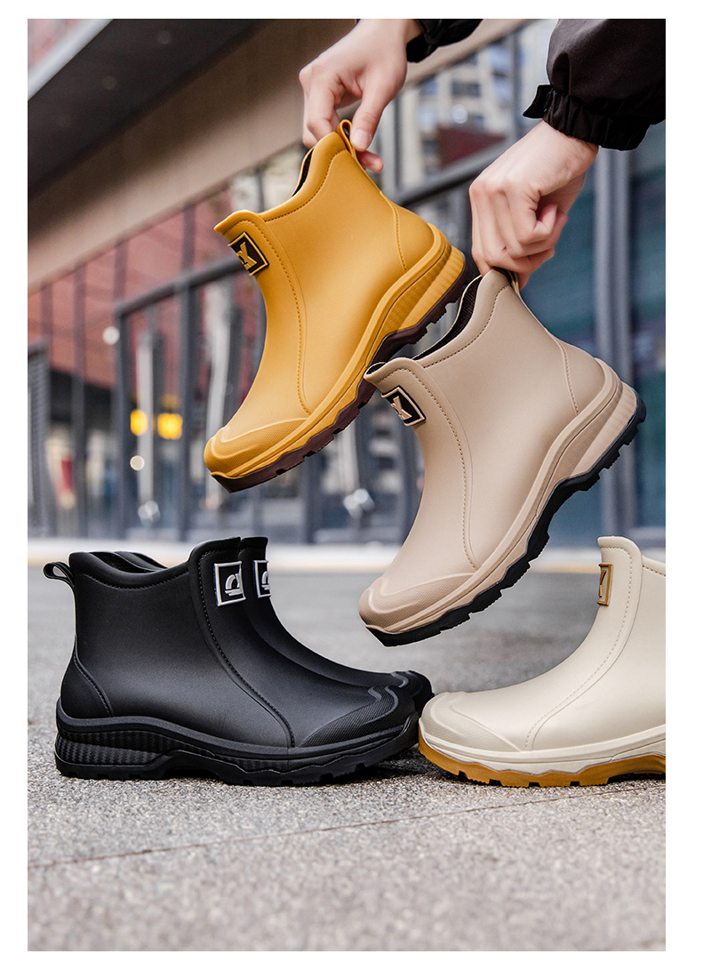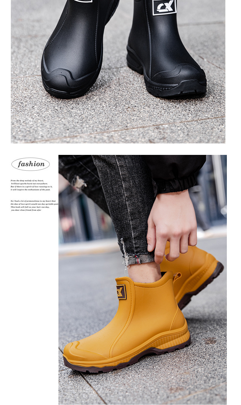 새로운 봄 장화 방수 낮은 따뜻한 유행 남성 짧은 장화 야외 간단한 미끄럼 방지 고무 신발 남성용스토어 가기