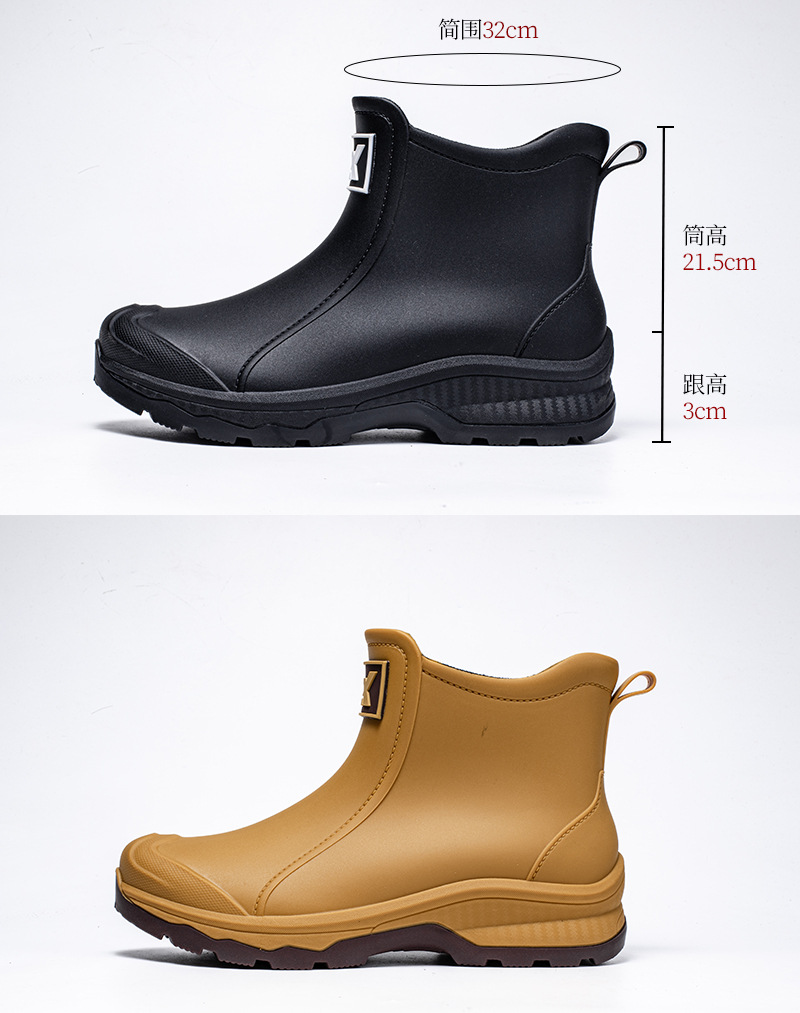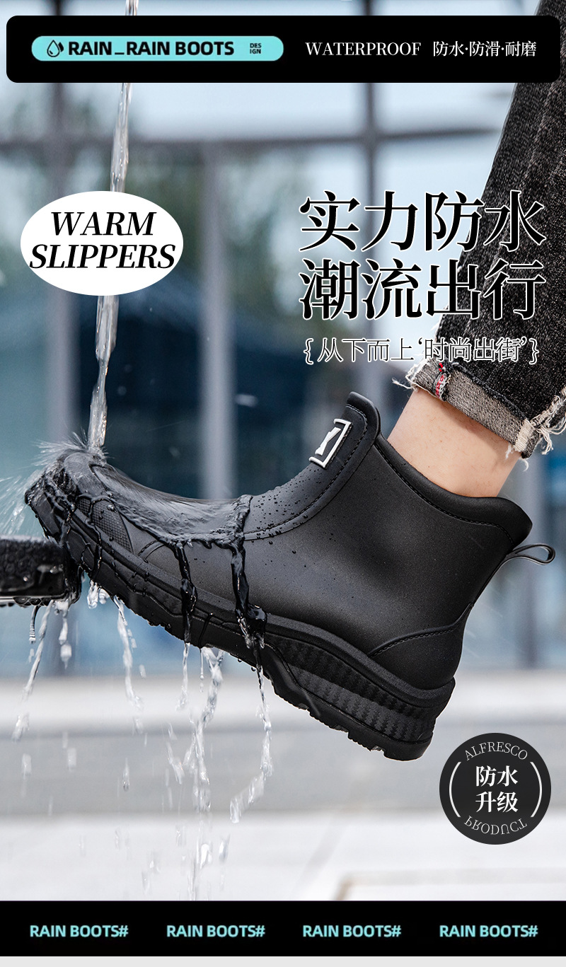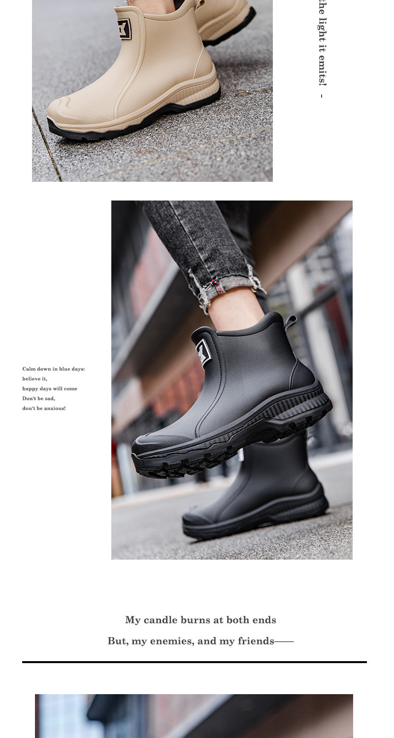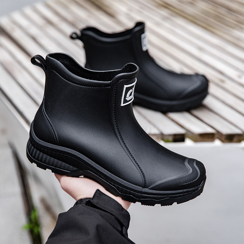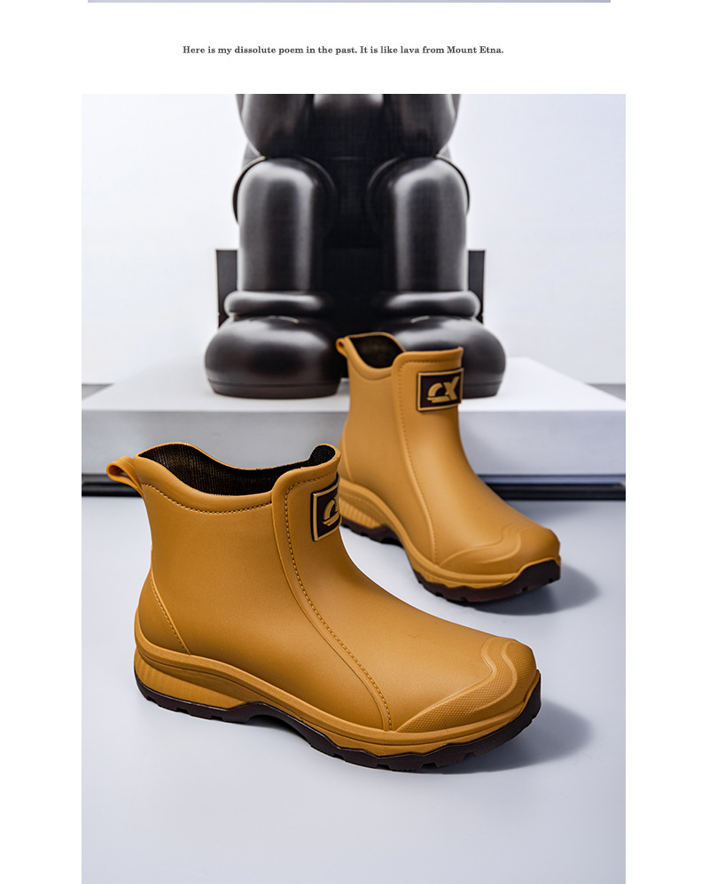새로운 봄 장화 방수 낮은 따뜻한 유행 남성 짧은 장화 야외 간단한 미끄럼 방지 고무 신발 남성용