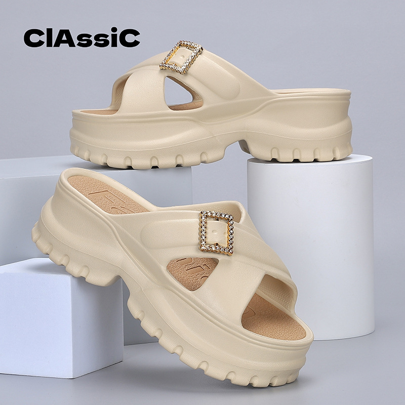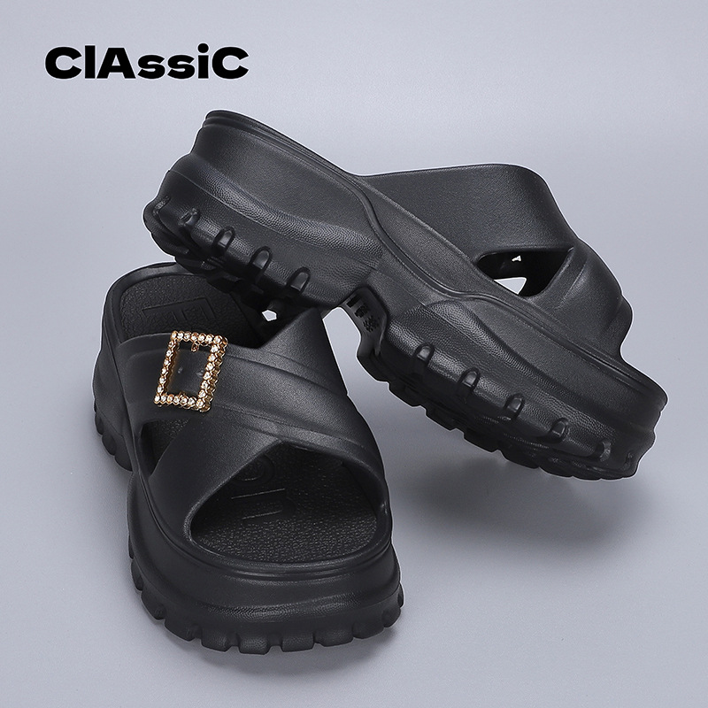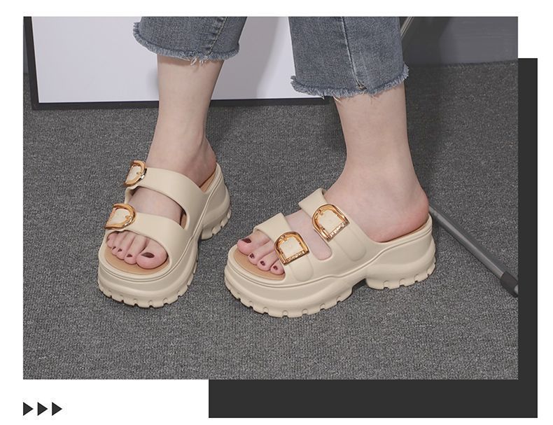 높은 등급의 올 매치 두꺼운 밑창 높이-배설물 한 단어 드래그 아웃 내마모성 플랫폼 케이크 밑창 비치 슈즈 2025 여름 새로운 스타일스토어 가기