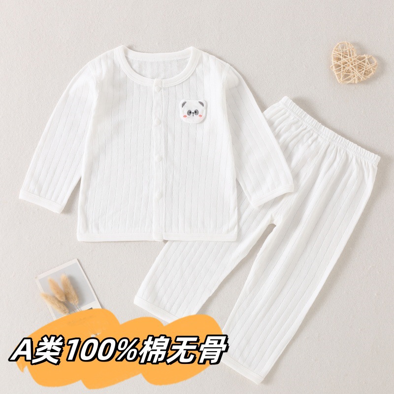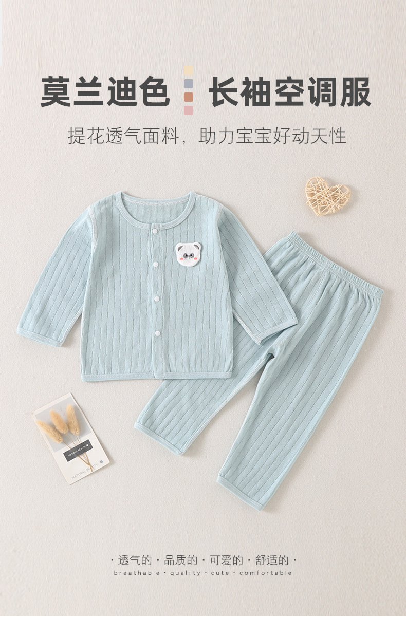 어린이 면 긴 소매 얇은 잠옷 아기의 여름 소년 봄과 여름 홈 옷 소녀 에어컨 아기 옷