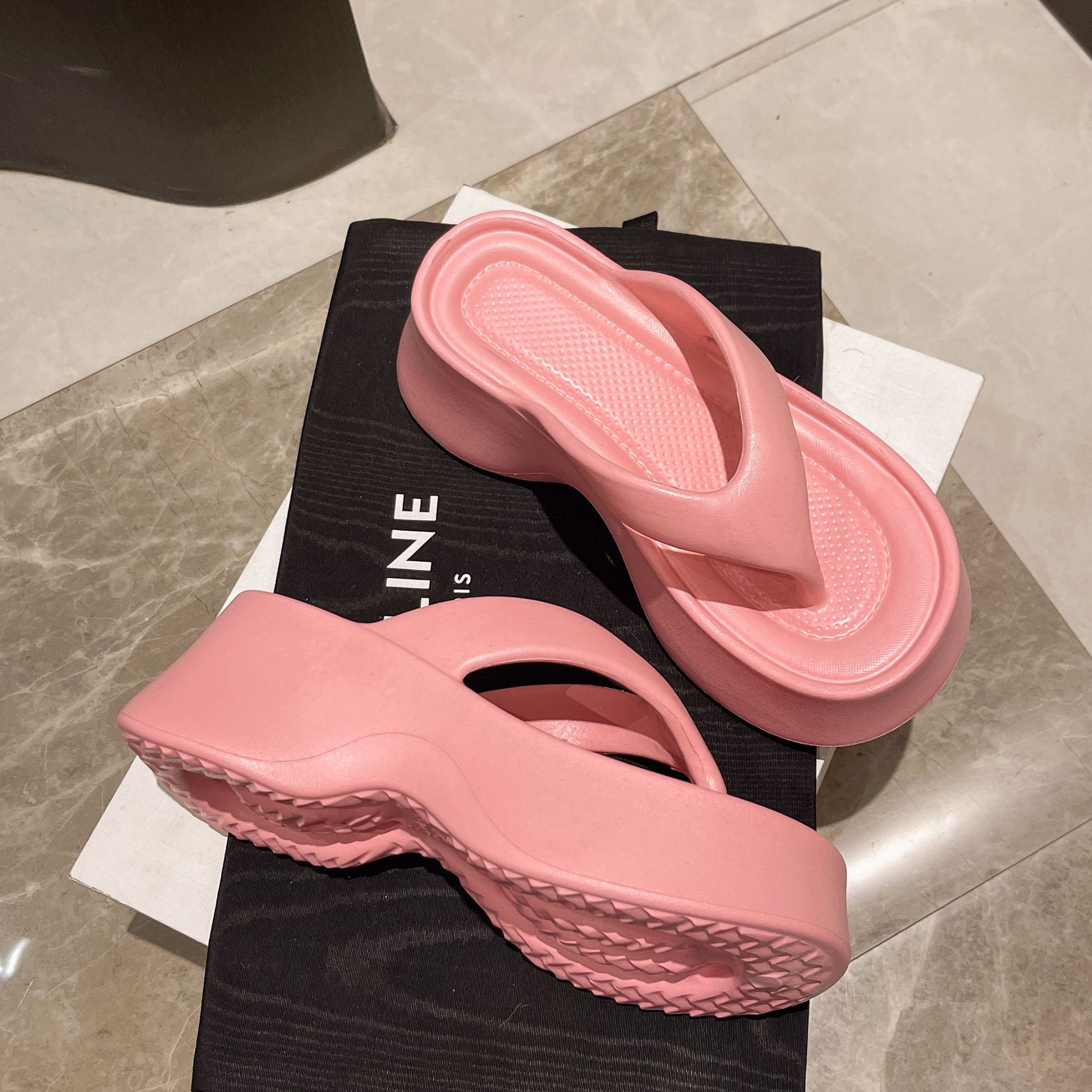 2025 새로운 스타일 플립 플롭 여성 두꺼운 바닥 외부 착용 플립 플롭 하이힐 샌들 비치 미끄럼 방지 냄새 없는 캐주얼 홈