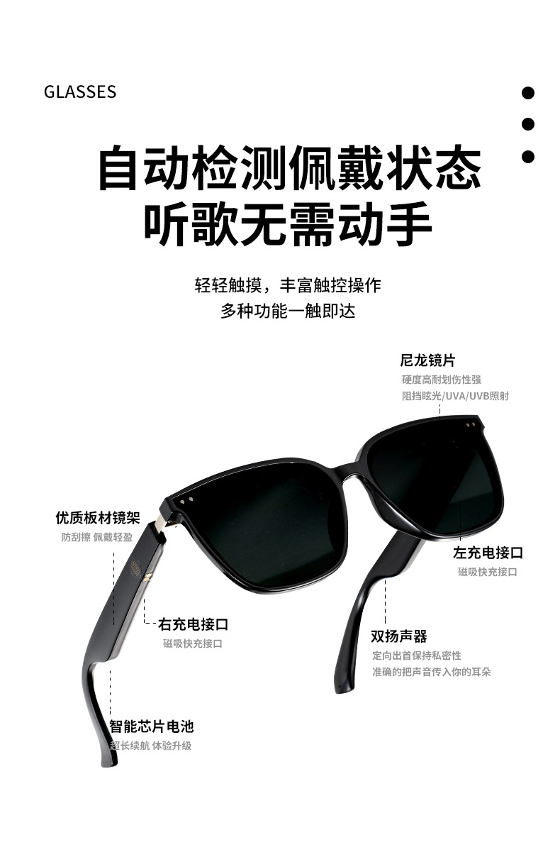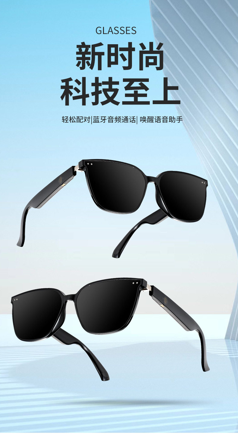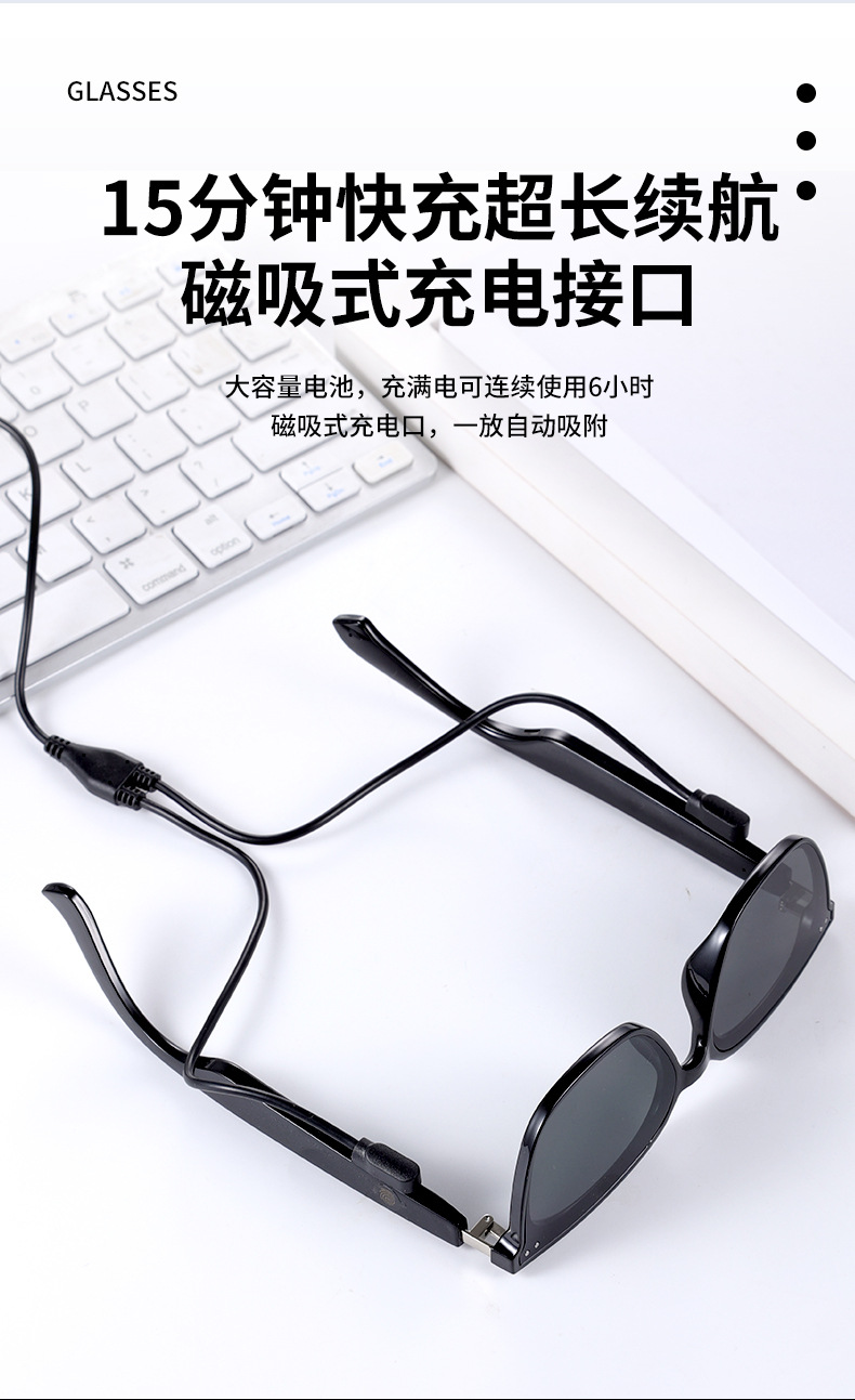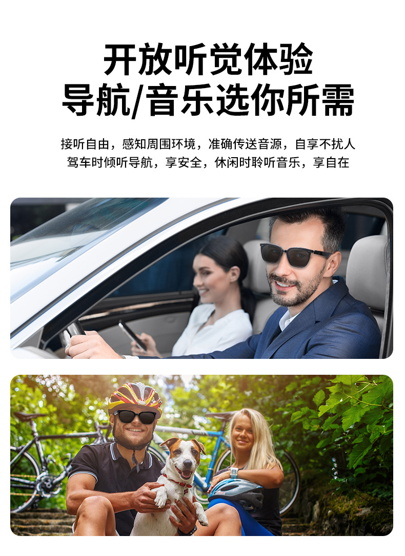 MZ06 블루투스 안경, 스마트 안경, 음악 듣기 및 통화, 선글라스, UV400 자외선 차단, 15분 고속 충전 지원
