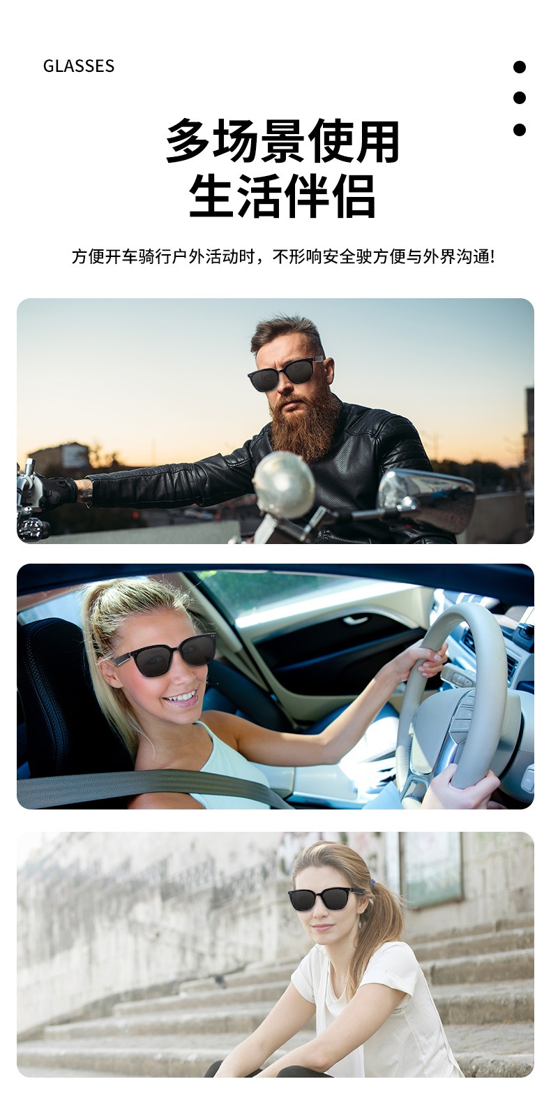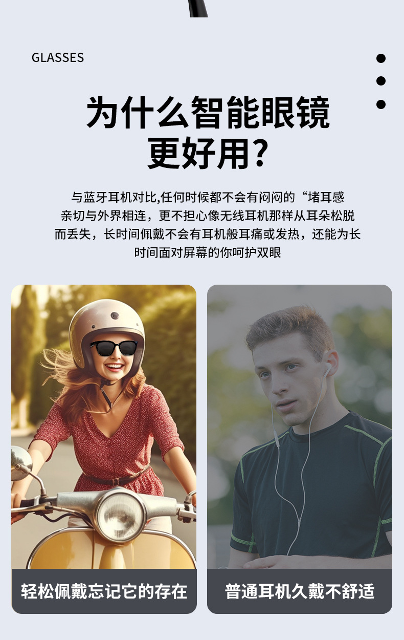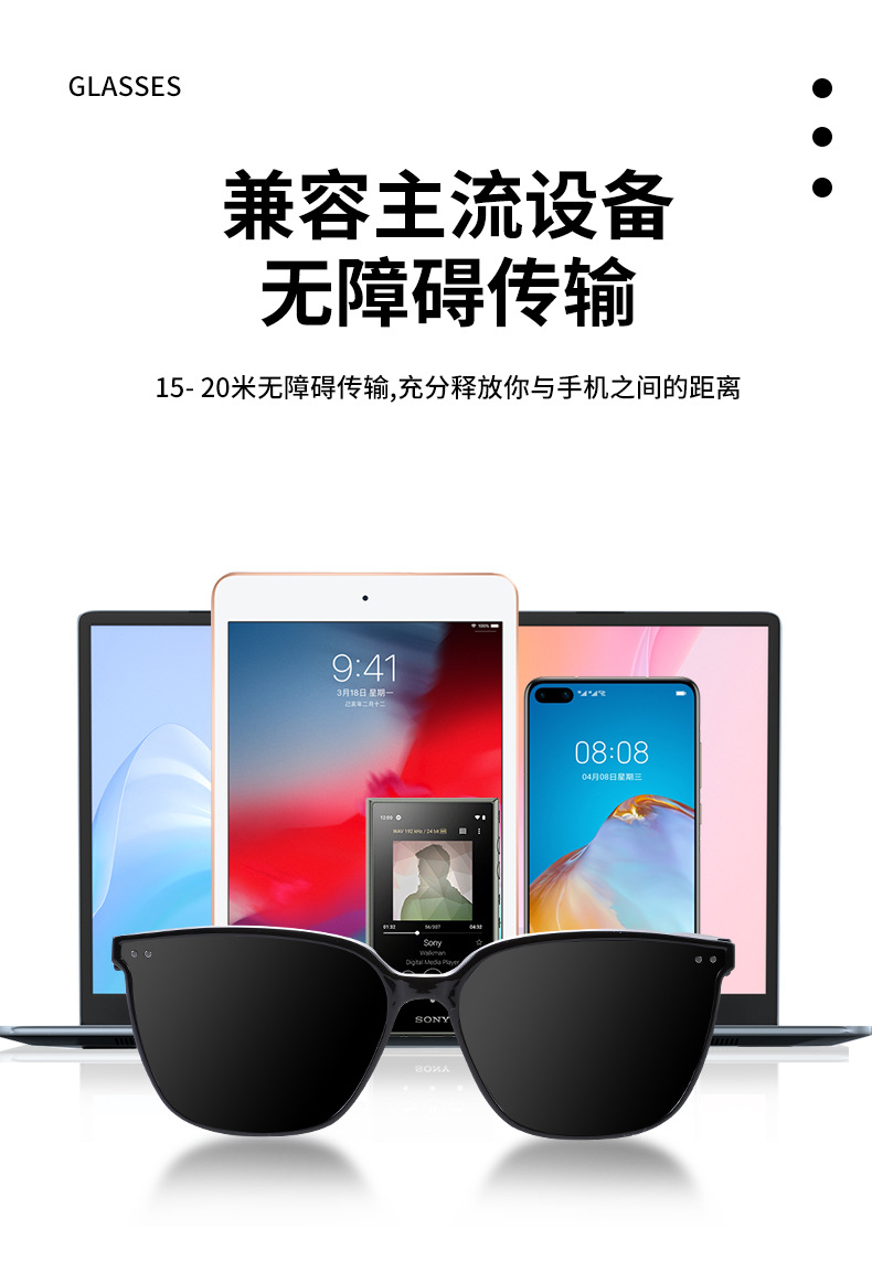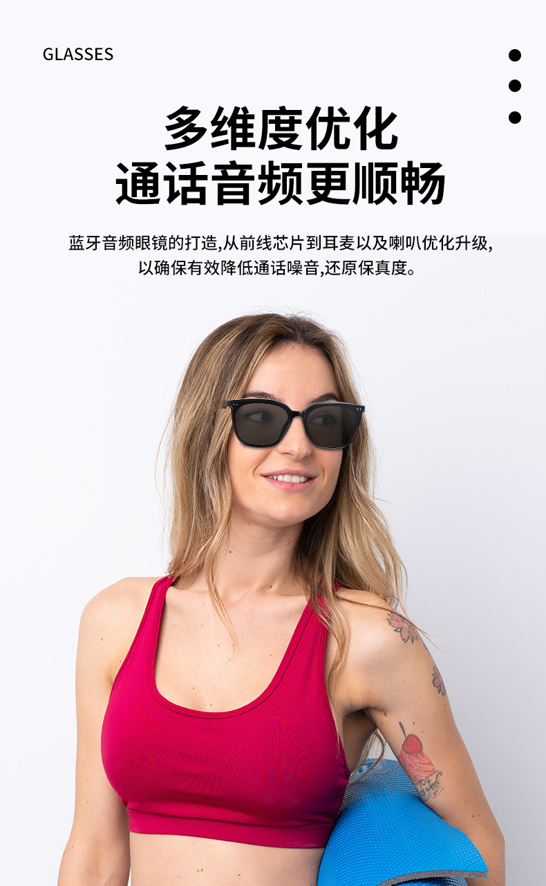MZ06 블루투스 안경, 스마트 안경, 음악 듣기 및 통화, 선글라스, UV400 자외선 차단, 15분 고속 충전 지원