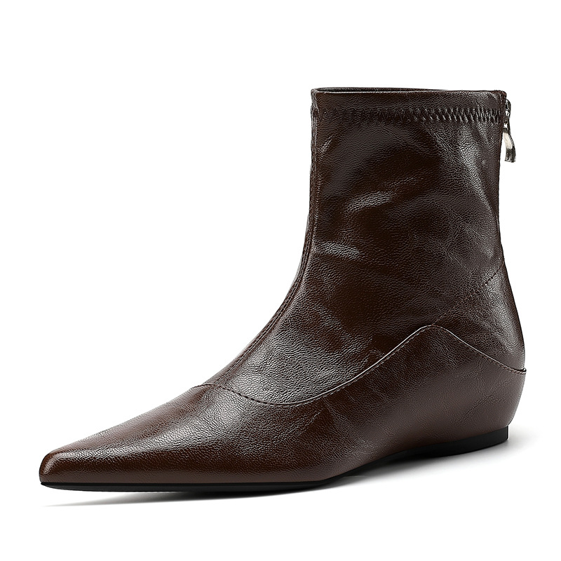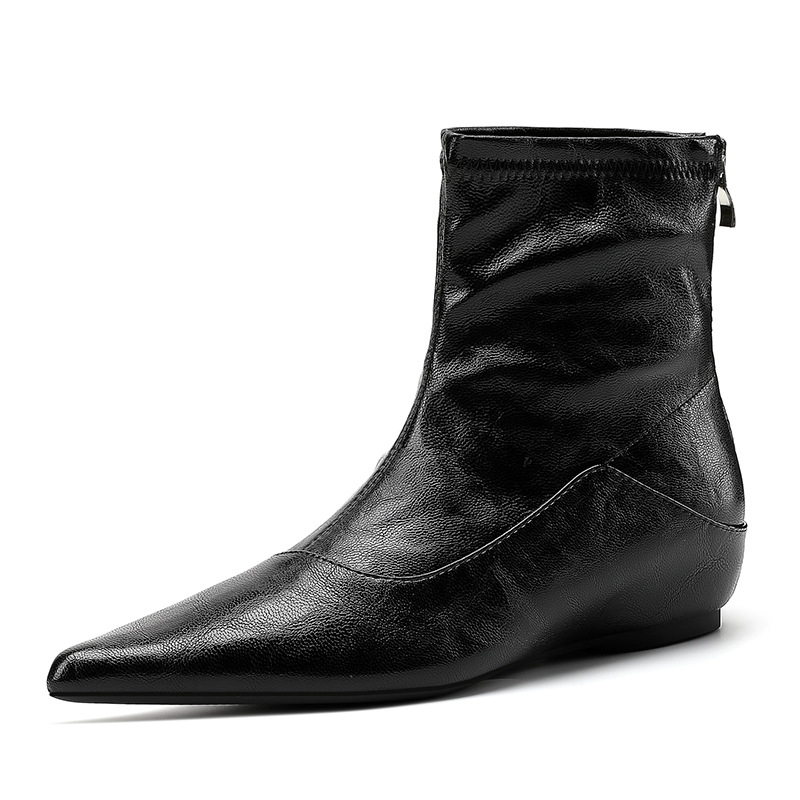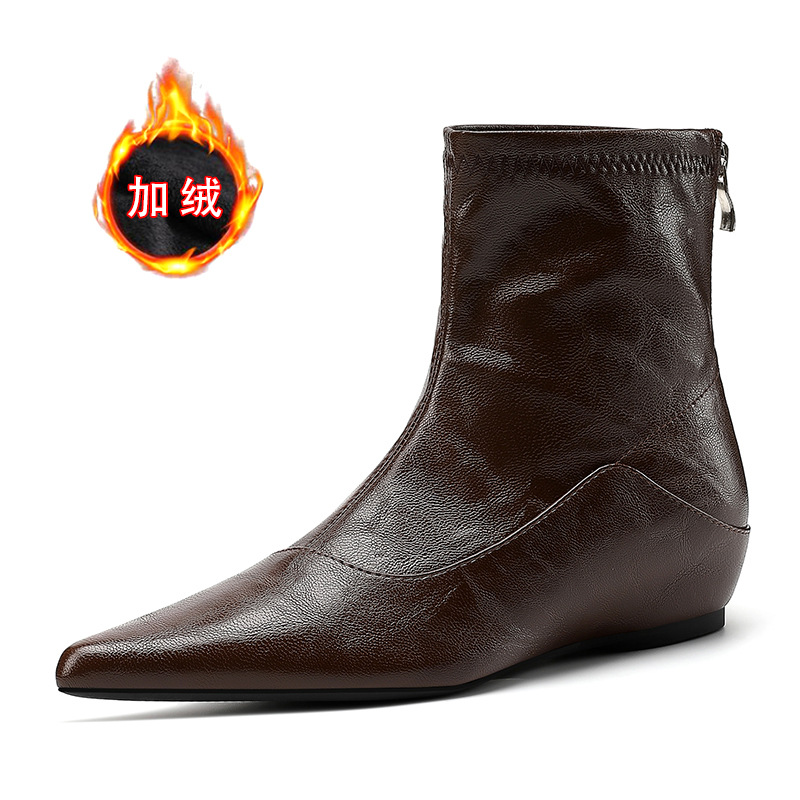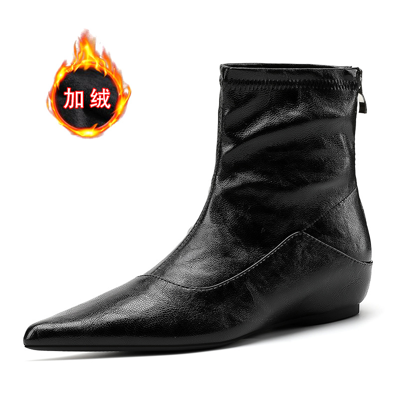 2196-2 내부 높이 증가 5cm 뾰족코 다용도 패션 부츠 여성용 2025 신상 프렌치 스타일 부드러운 가죽 슬림 부츠 숏부츠스토어 가기