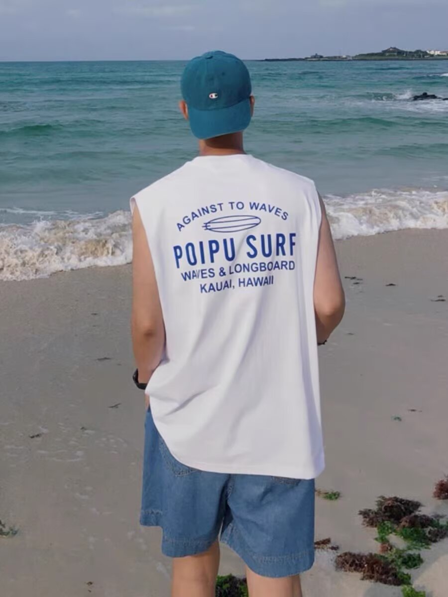 플러스 사이즈 맞춤형 조끼 남성용 루즈한 여름 반팔 티셔츠 트렌디하고 멋스럽고 다재다능한 민소매 탑 트렌디한 조끼스토어 가기