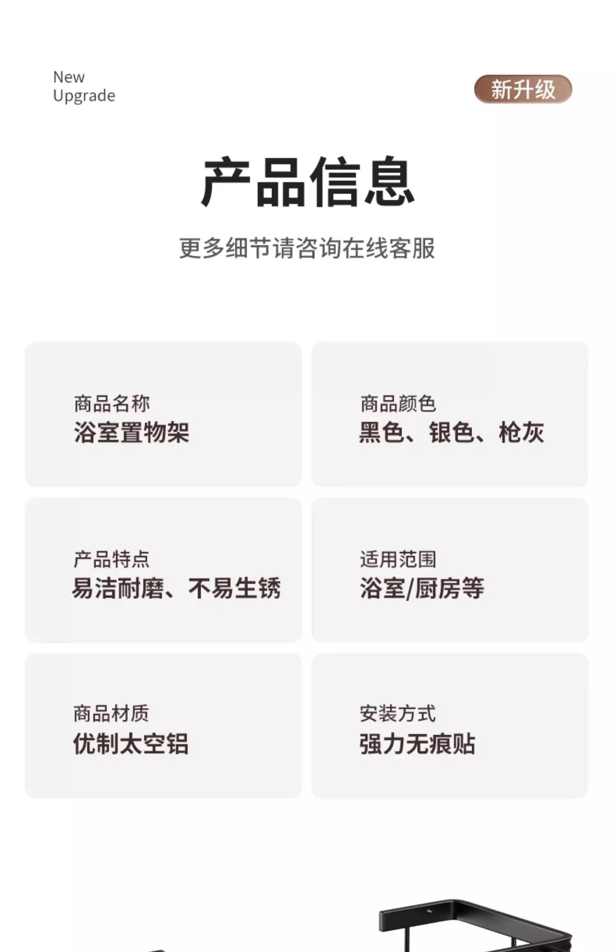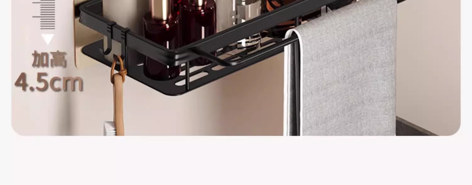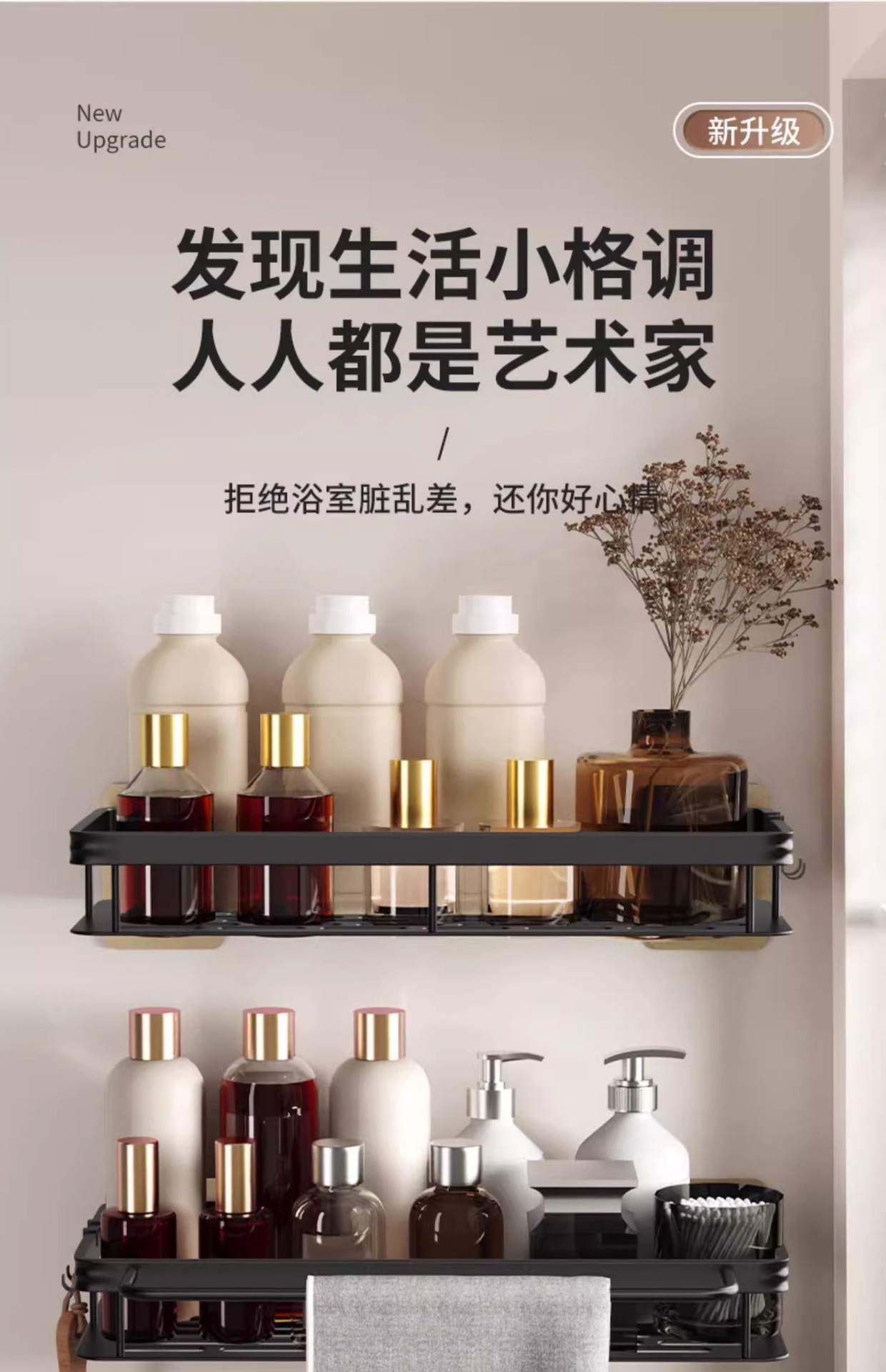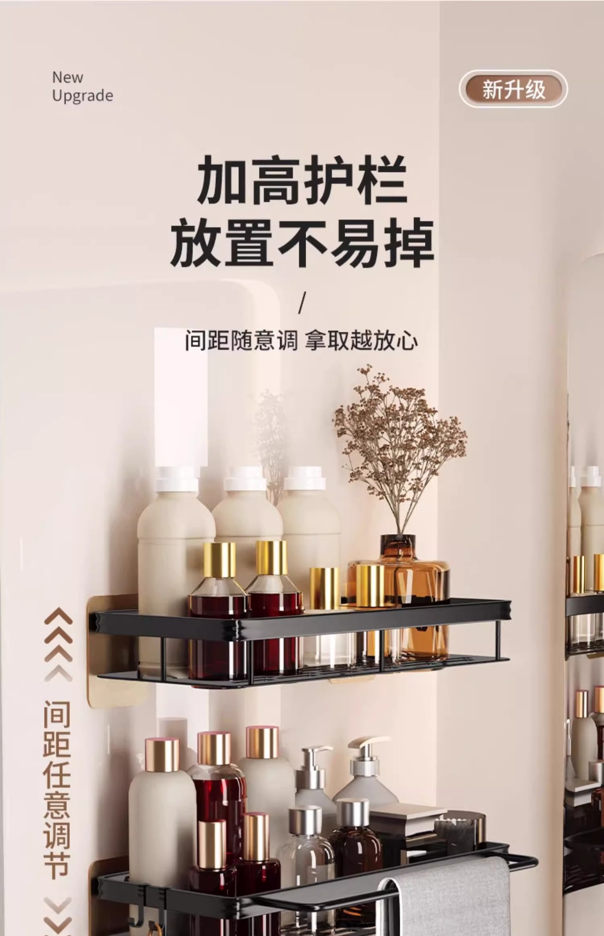 욕실 선반 펀치없는 가정용 욕실 싱크 벽걸이 형 직사각형 ABS 플라스틱 보관 선반스토어 가기