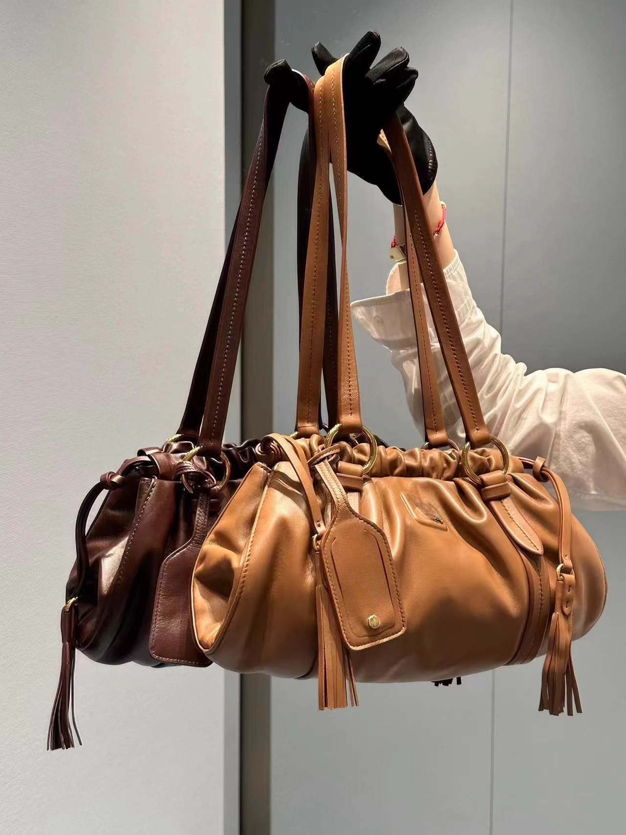 여성용 이탈리안 조이 플리츠 만두백 2025 뉴 레트로 겨드랑이 하이엔드 천연가죽 숄더 통근 다용도스토어 가기