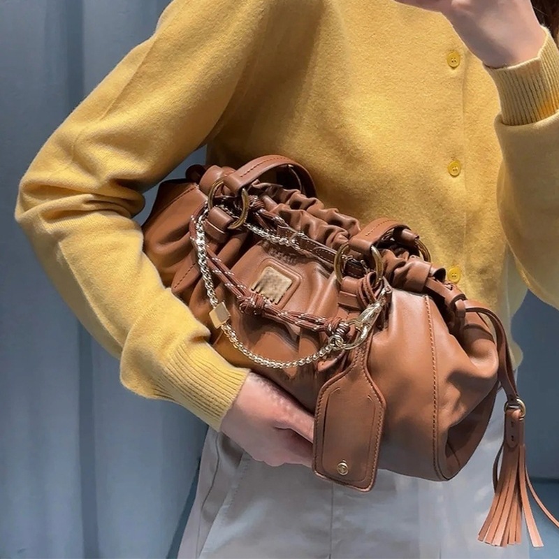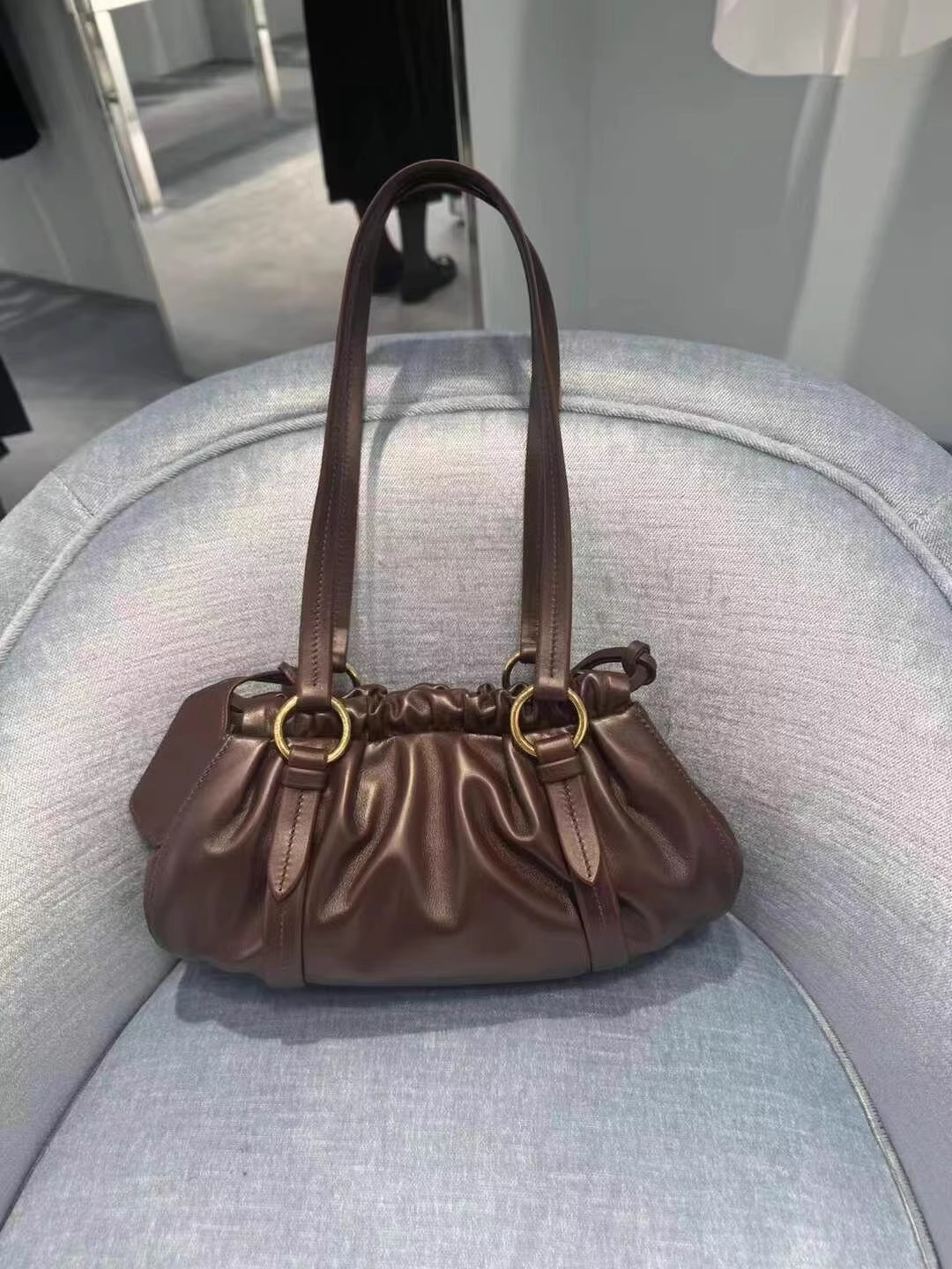 여성용 이탈리안 조이 플리츠 만두백 2025 뉴 레트로 겨드랑이 하이엔드 천연가죽 숄더 통근 다용도