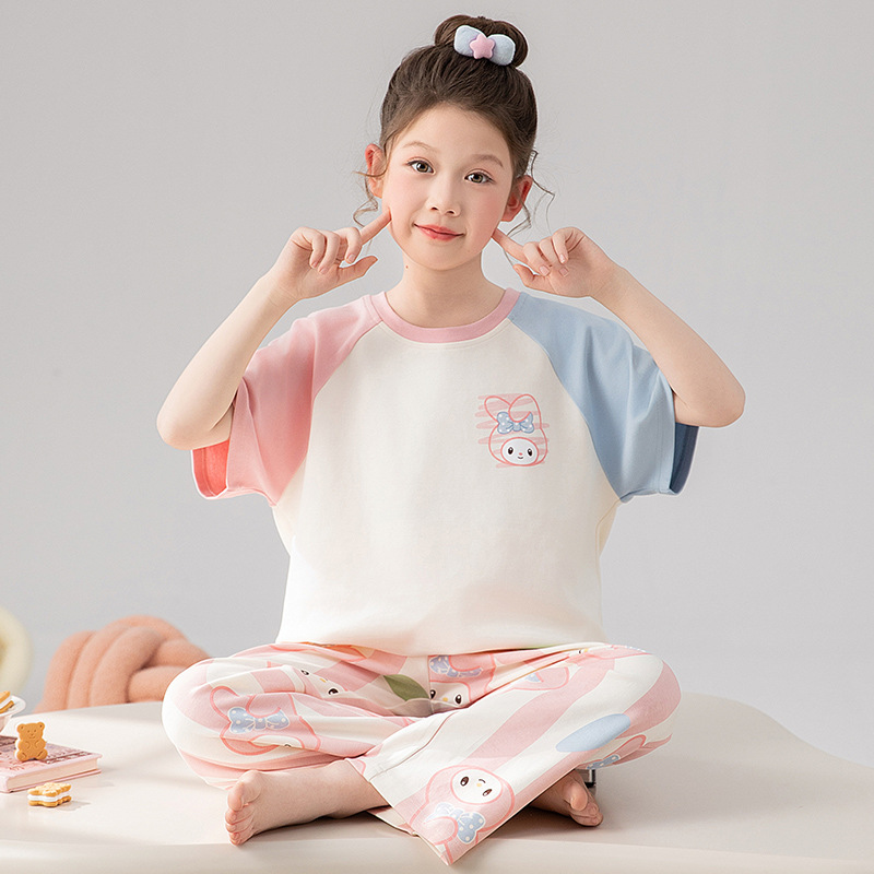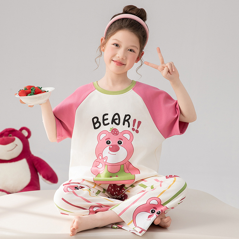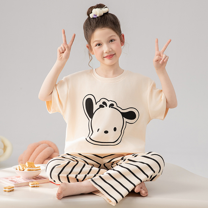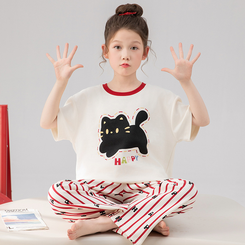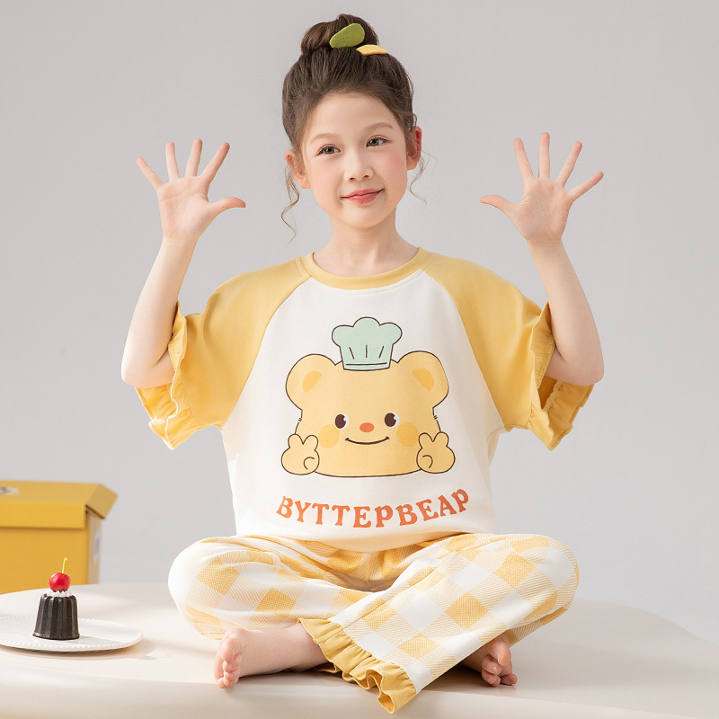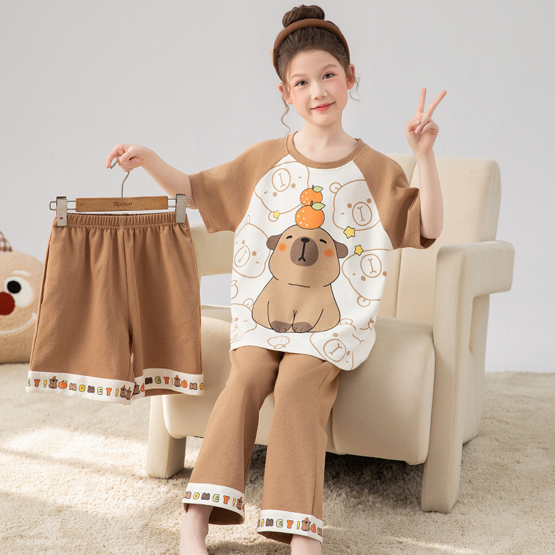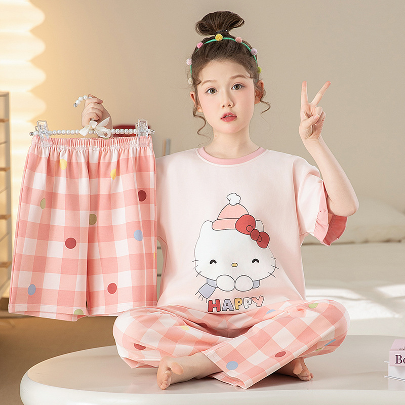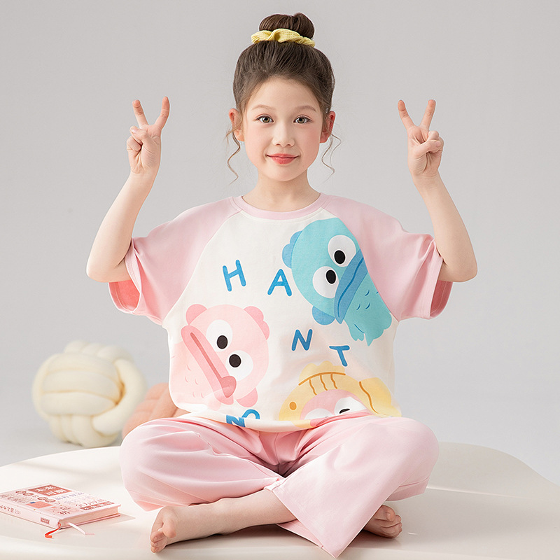 만화 중대형 어린이 봄과 여름 소녀 반팔 파자마 소녀의 집 옷 세트 외형 3 피스 코튼 반바지스토어 가기