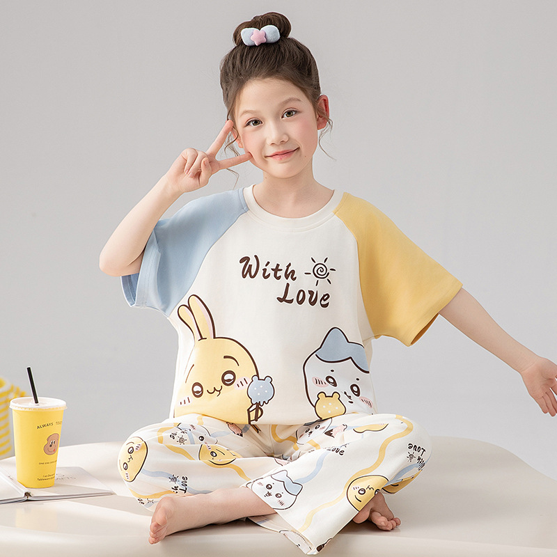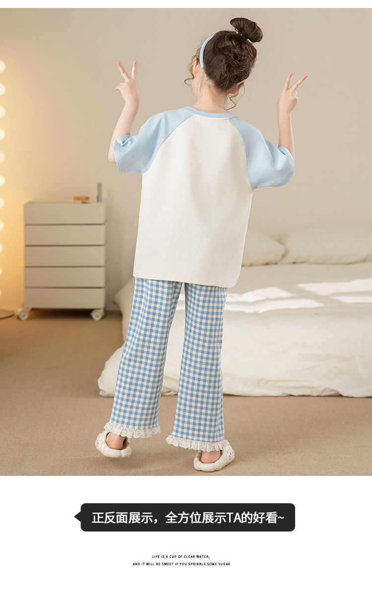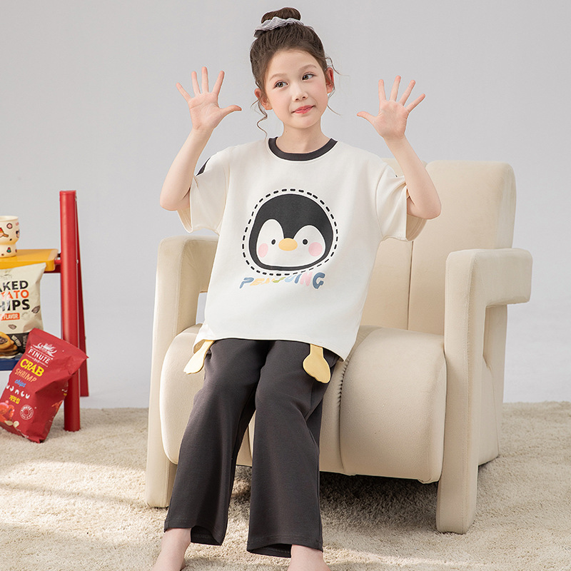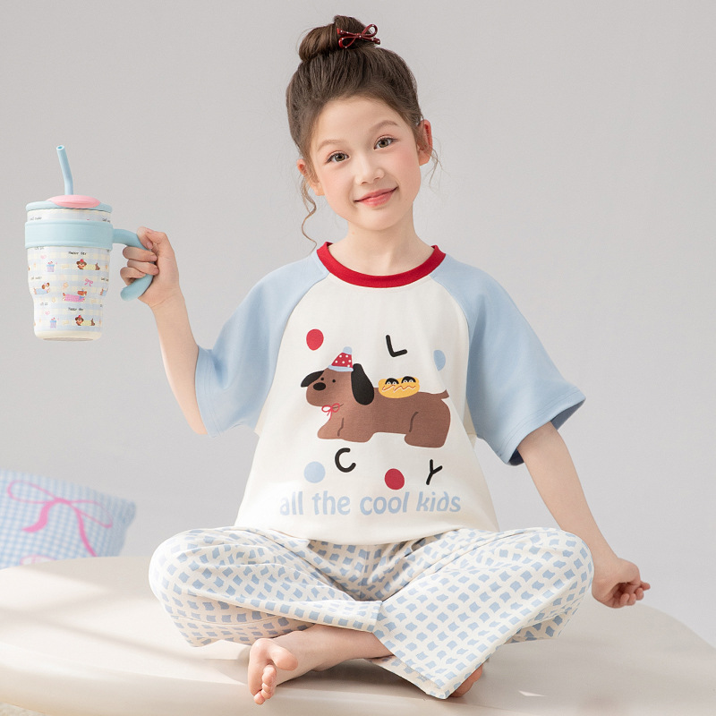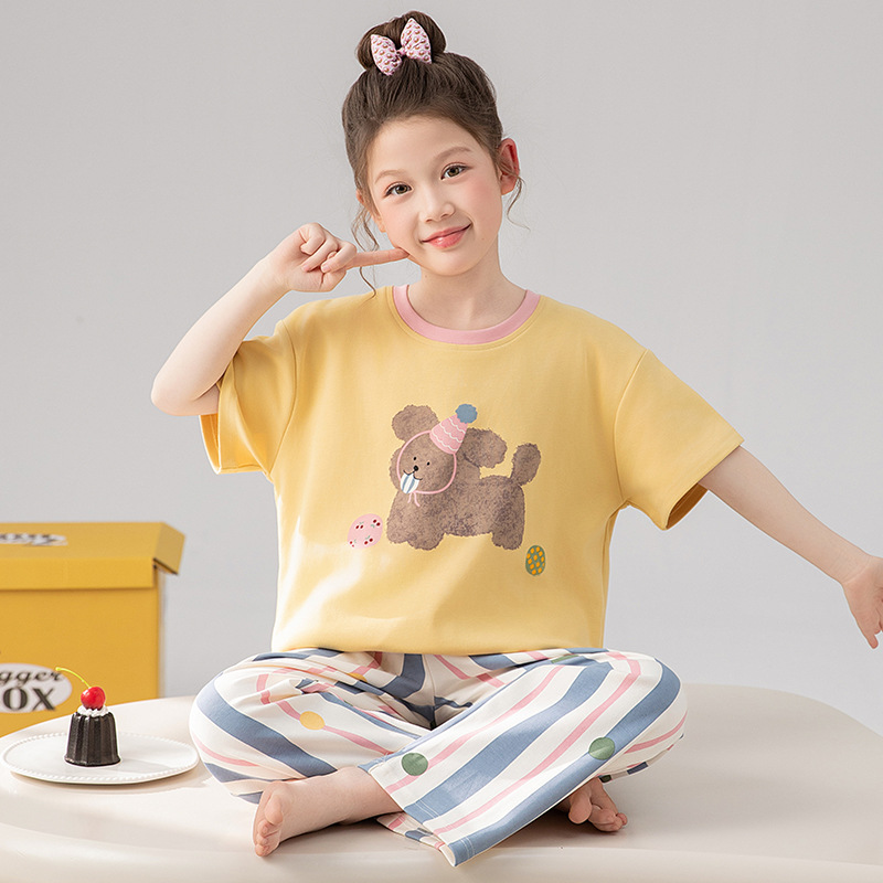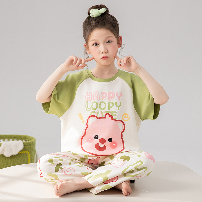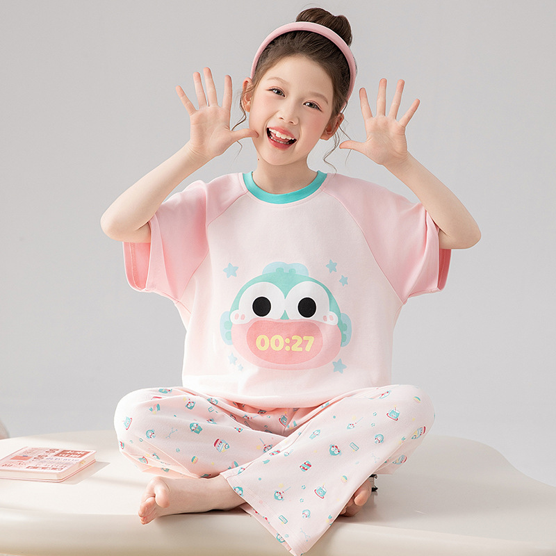 만화 중대형 어린이 봄과 여름 소녀 반팔 파자마 소녀의 집 옷 세트 외형 3 피스 코튼 반바지스토어 가기