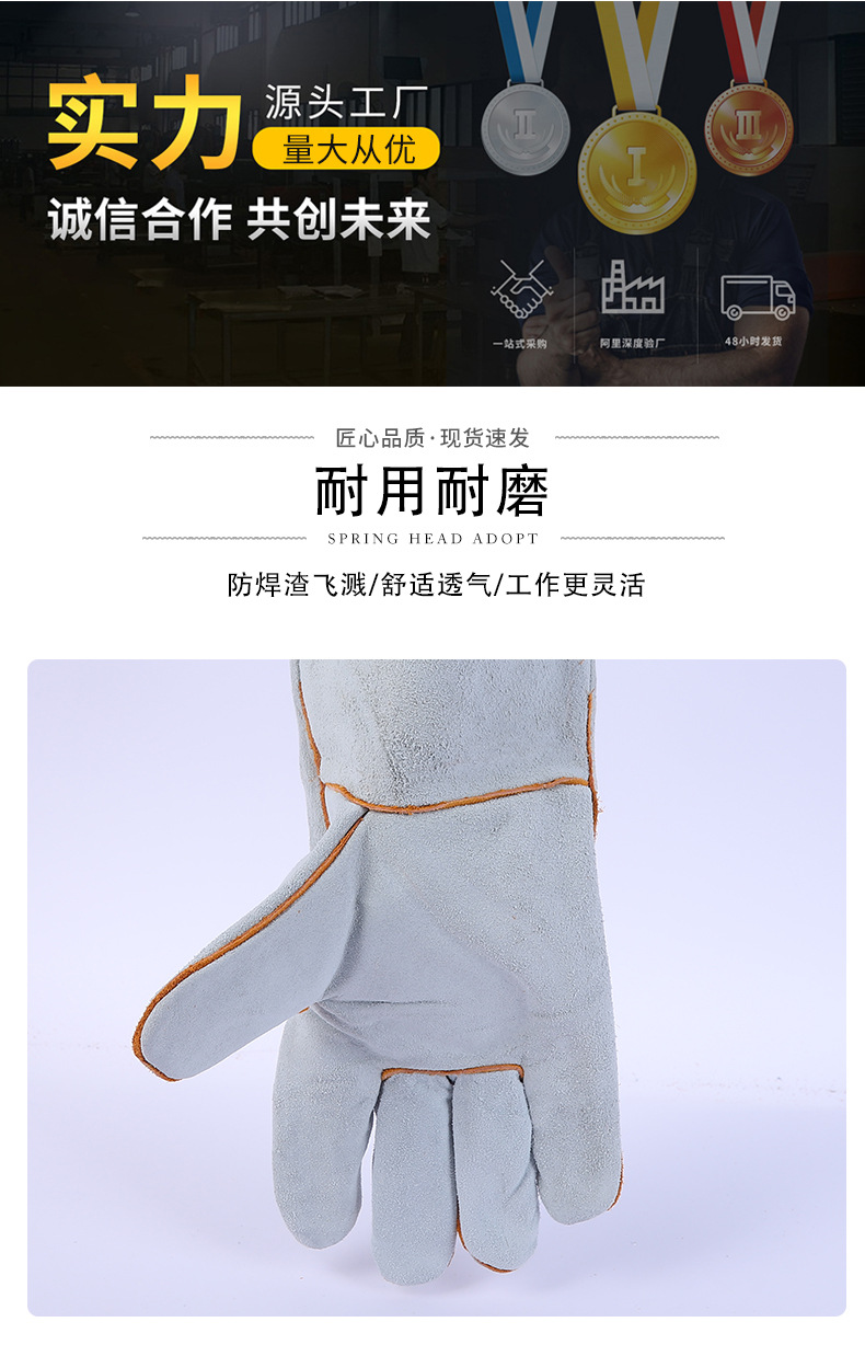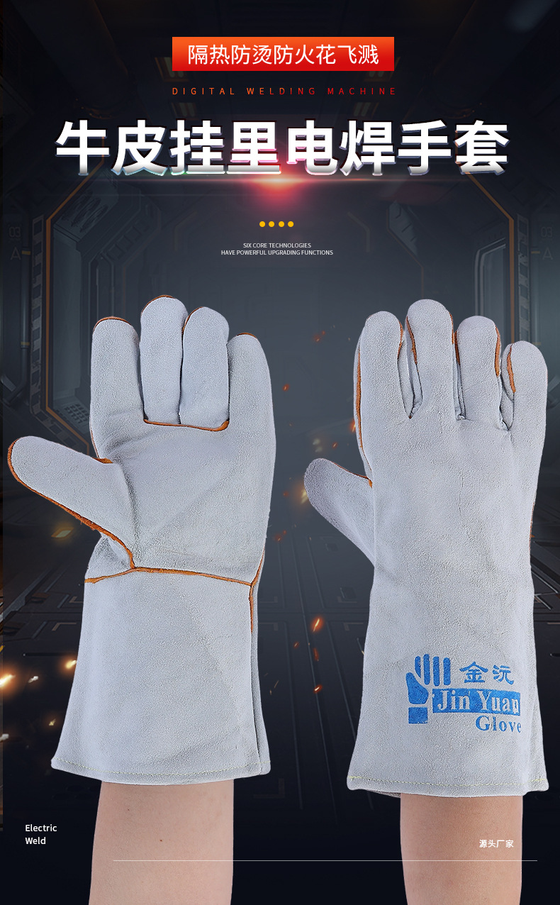 용접 장갑, 노동 보호, 내마모성, 작업용, 용접공, 2겹 소가죽, 단열, 화상 방지, 내화성, 고온 방지, 방진, 아크 용접스토어 가기