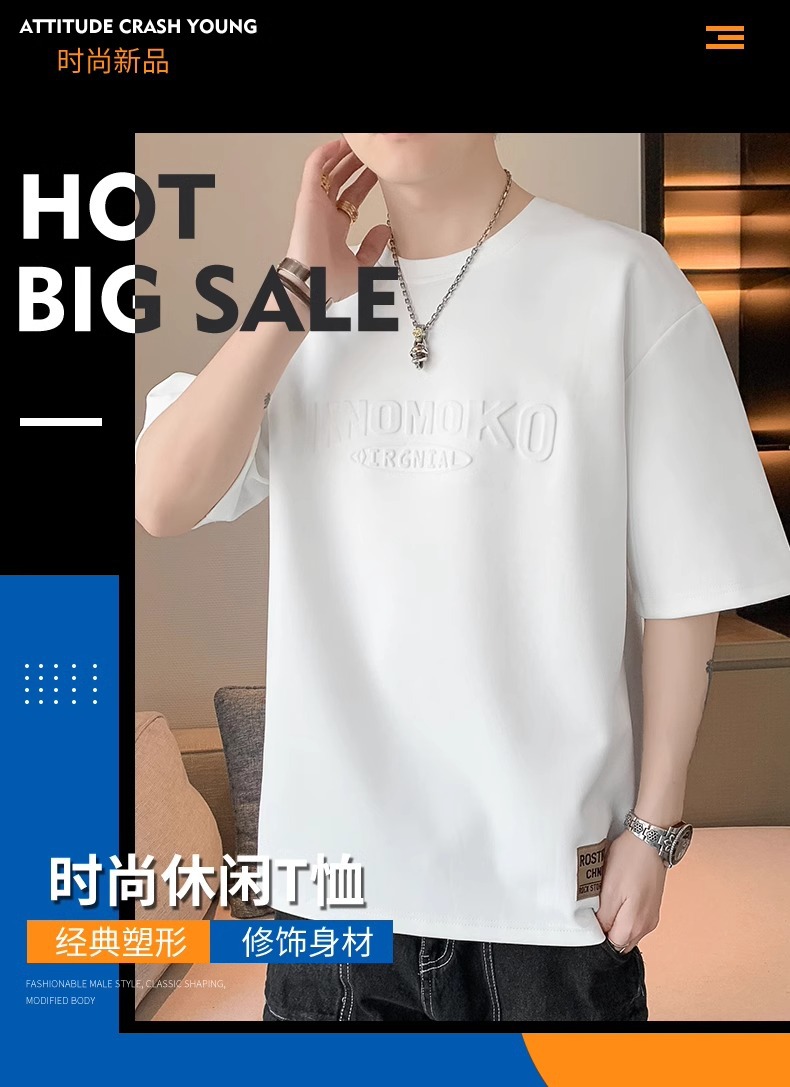 반팔 티셔츠 남자 여름 2025 새로운 패션 브랜드 엑스트라 플러스 대형 뚱뚱한 여름 흰색 반소매 티셔츠스토어 가기