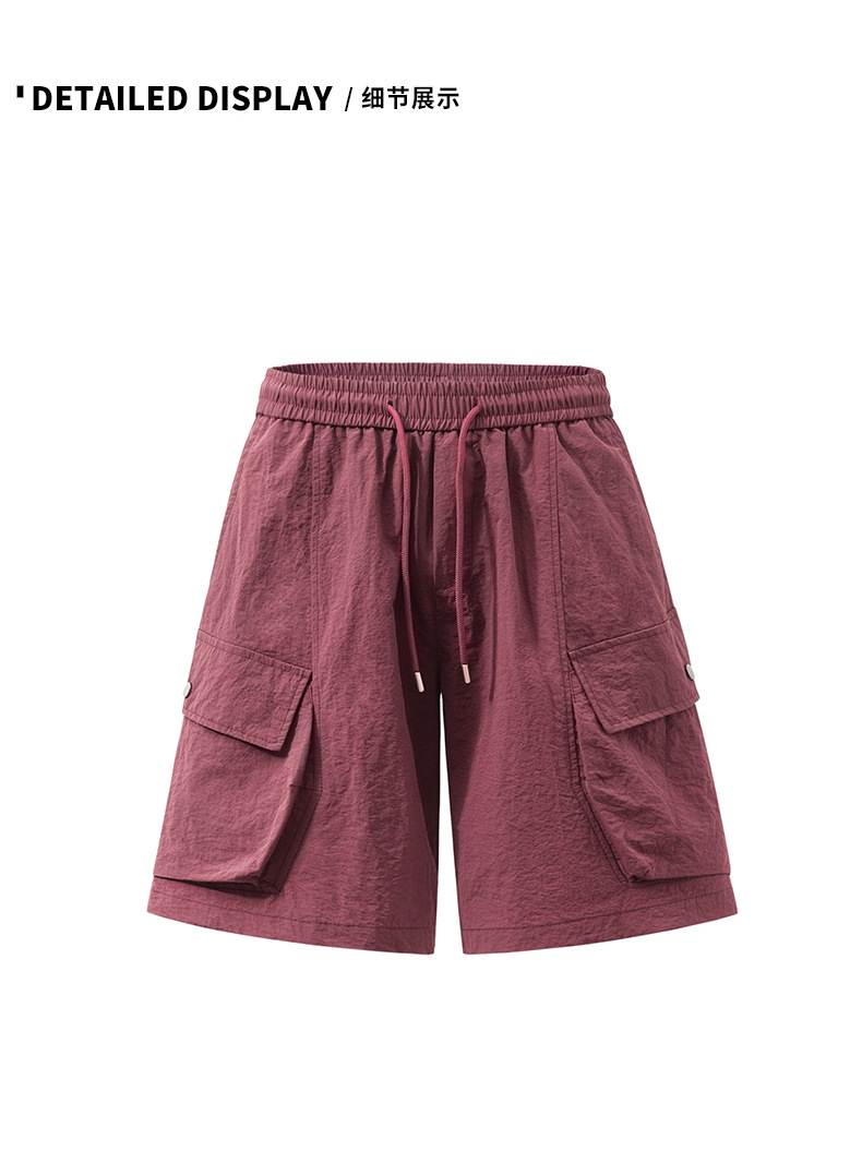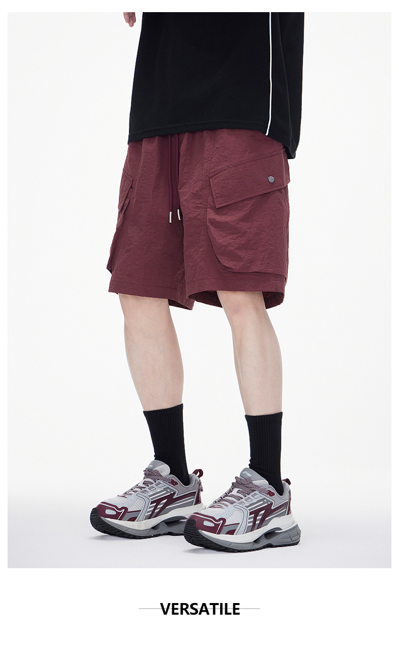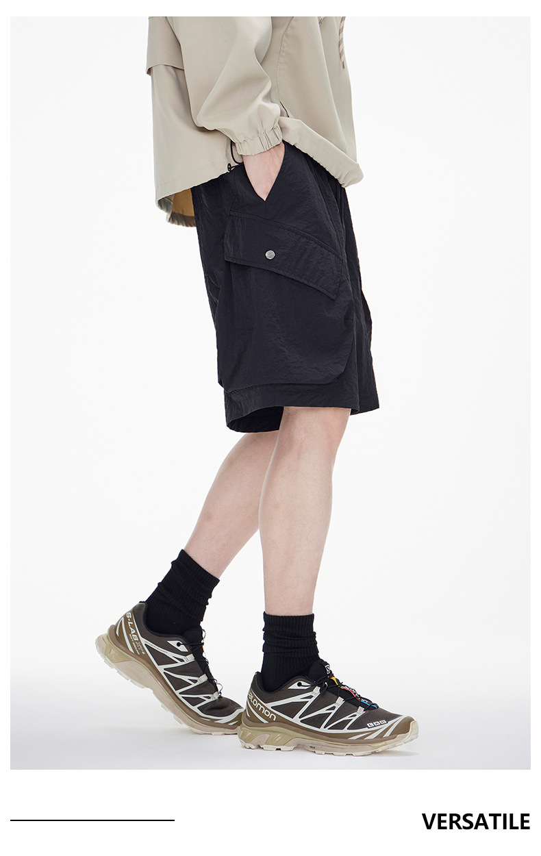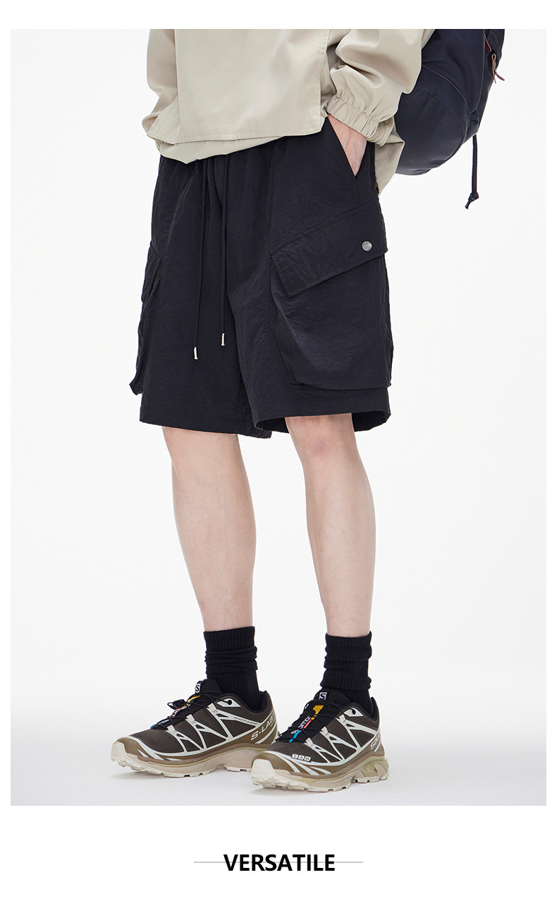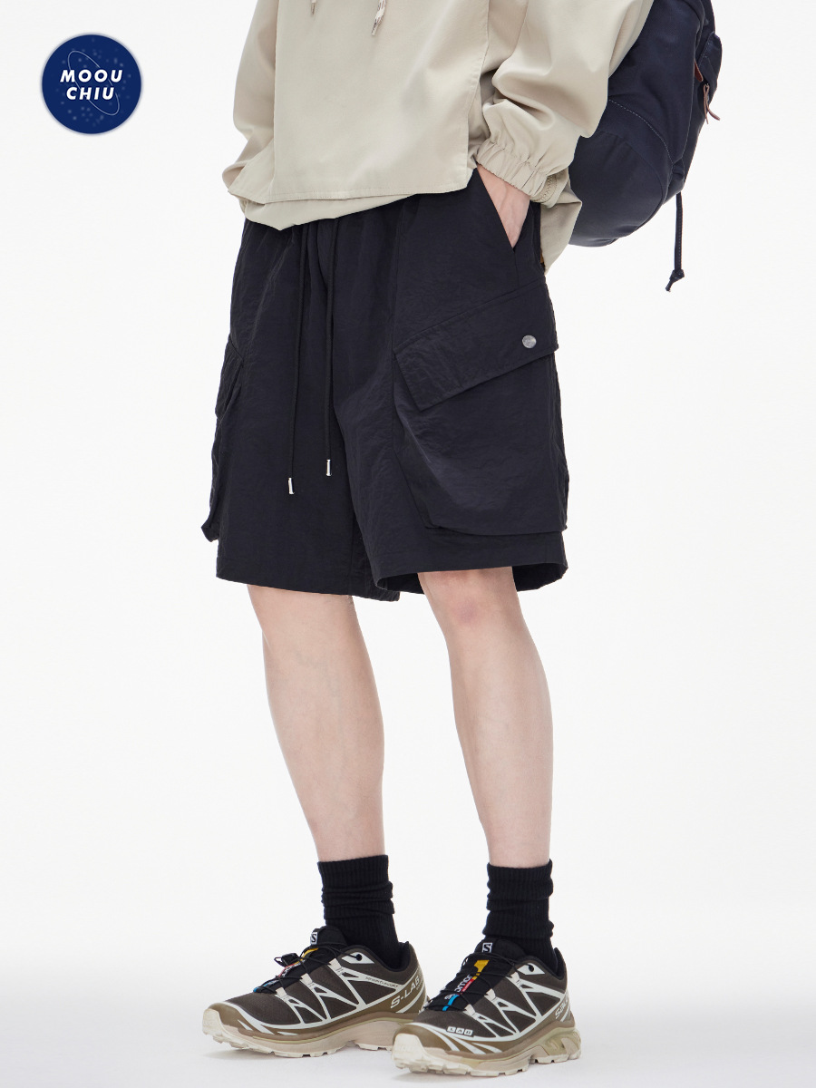 Muqiu 남성복 √ 아메리칸 스타일 야외 빠른 건조 캐주얼 툴링 반바지 남성용 트렌디 브랜드 멀티 포켓 스트레이트 5 점 바지
