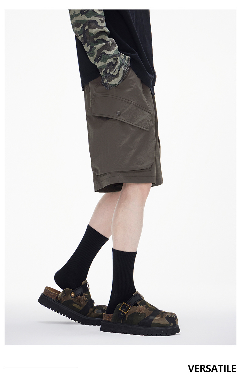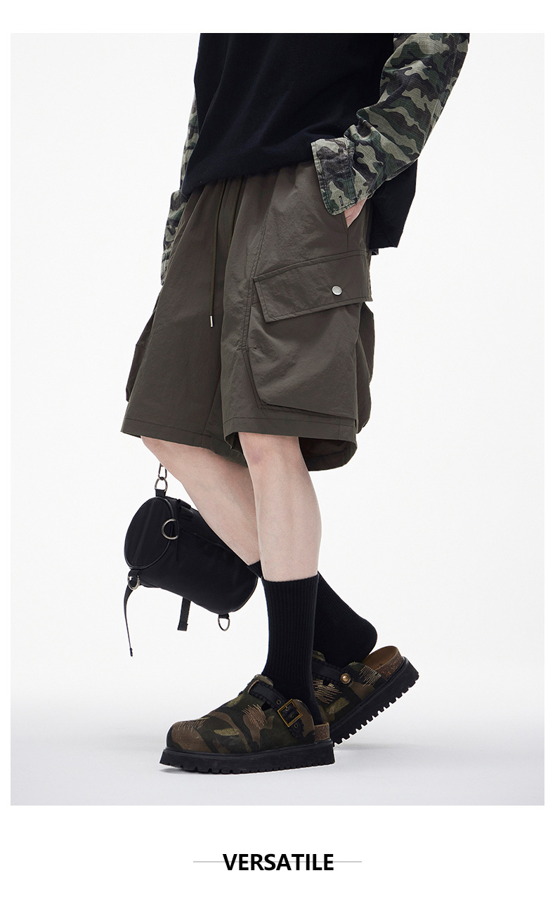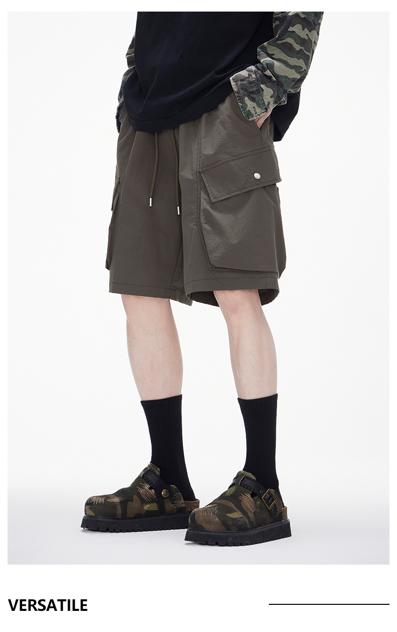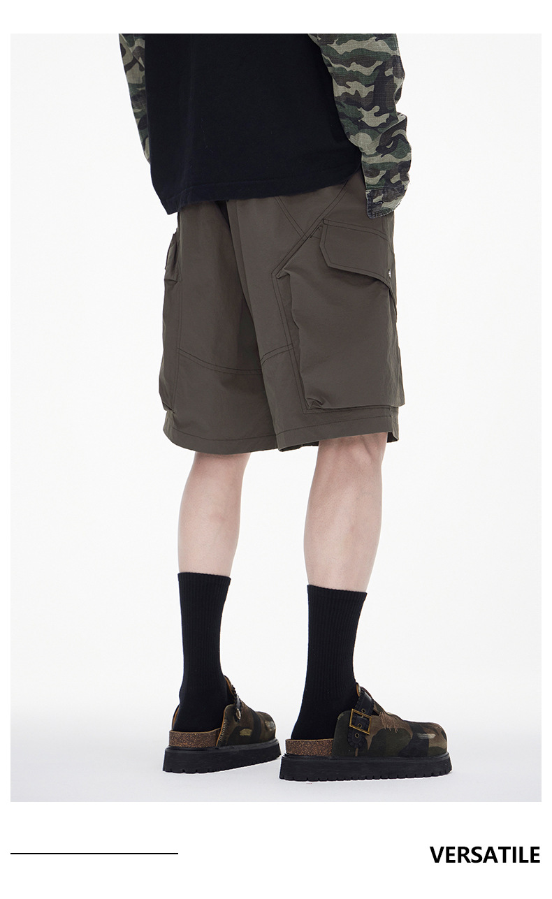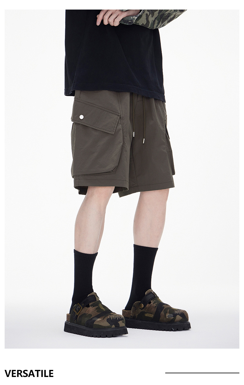 Muqiu 남성복 √ 아메리칸 스타일 야외 빠른 건조 캐주얼 툴링 반바지 남성용 트렌디 브랜드 멀티 포켓 스트레이트 5 점 바지스토어 가기