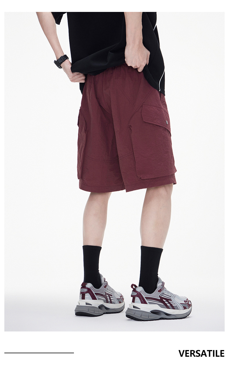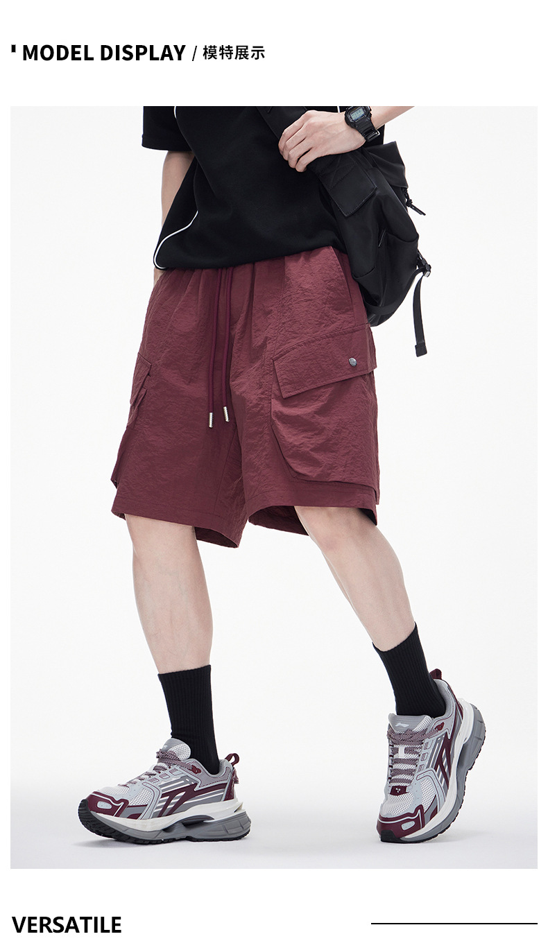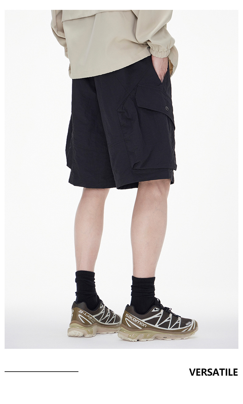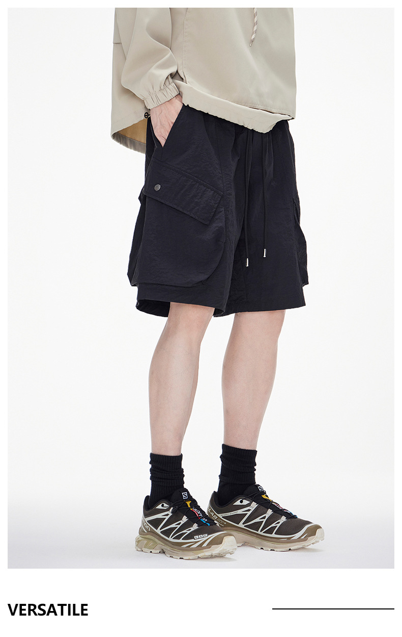Muqiu 남성복 √ 아메리칸 스타일 야외 빠른 건조 캐주얼 툴링 반바지 남성용 트렌디 브랜드 멀티 포켓 스트레이트 5 점 바지스토어 가기