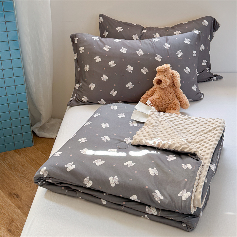 인기있는 어린이 만화 클래스 A 우유 니트 코튼 비니 여름 이불 기계 세탁 가능한 싱글 및 더블 기숙사 커버 담요 에어컨 이불