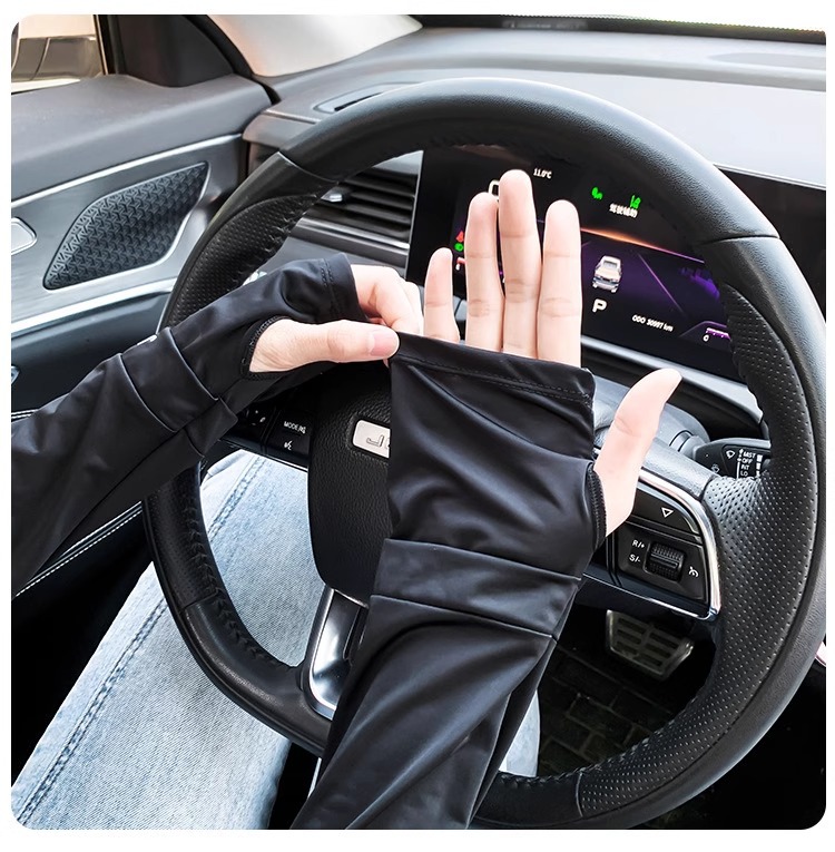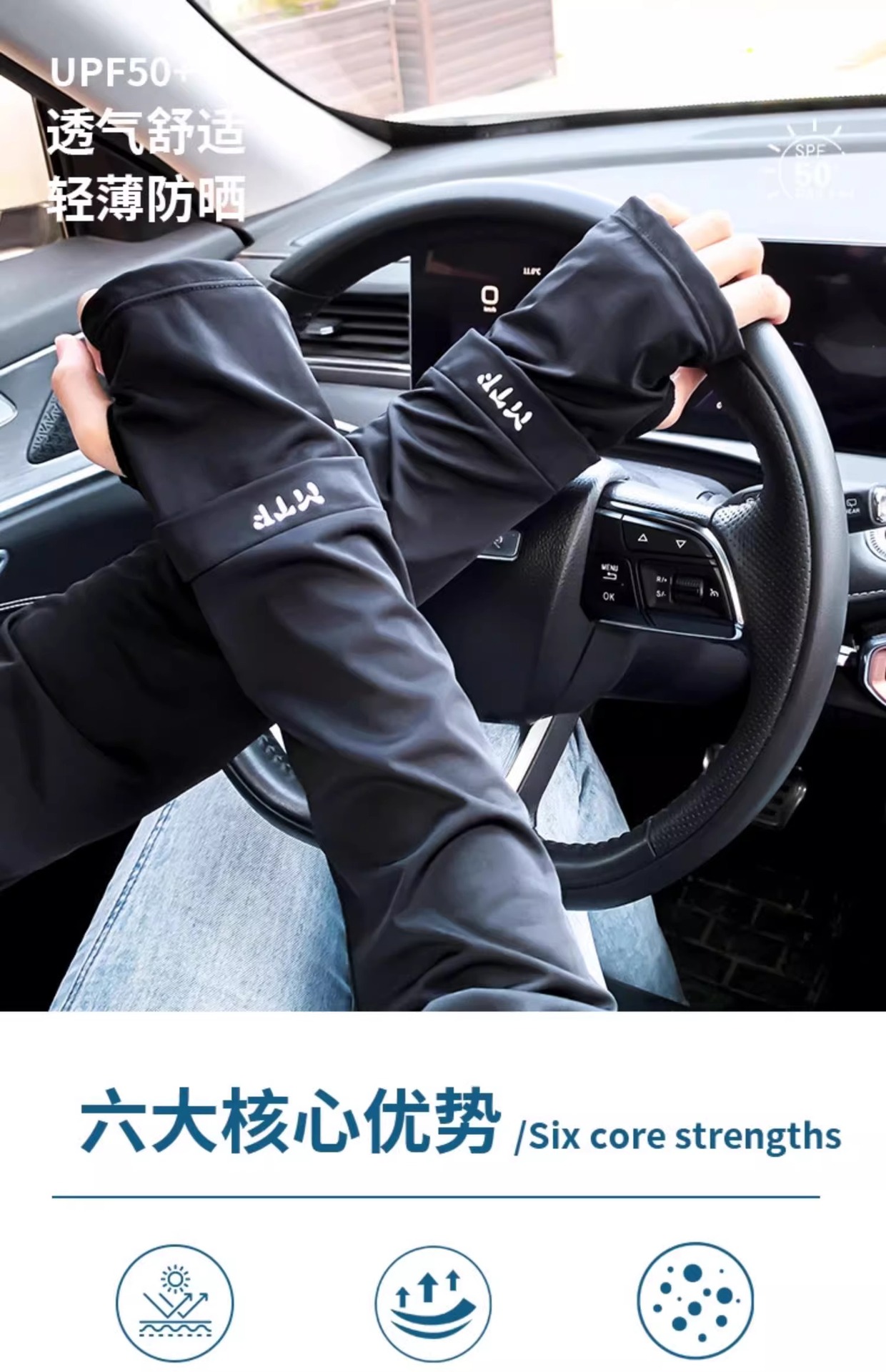 开车防晒手套冰丝防晒袖套女防紫外线骑车冰袖手臂护袖加大宽松夏