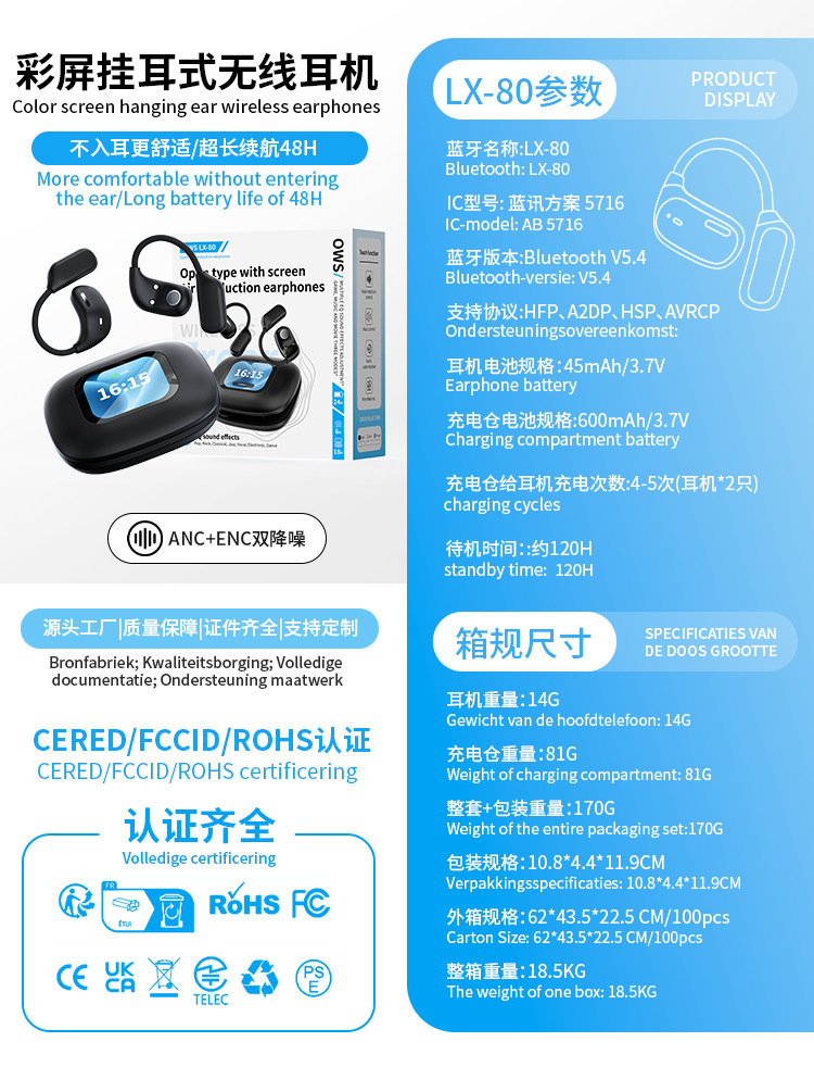 • LX50 블랙(스팟 번역 모델 + ANC/ENC 이중 소음 감소)
