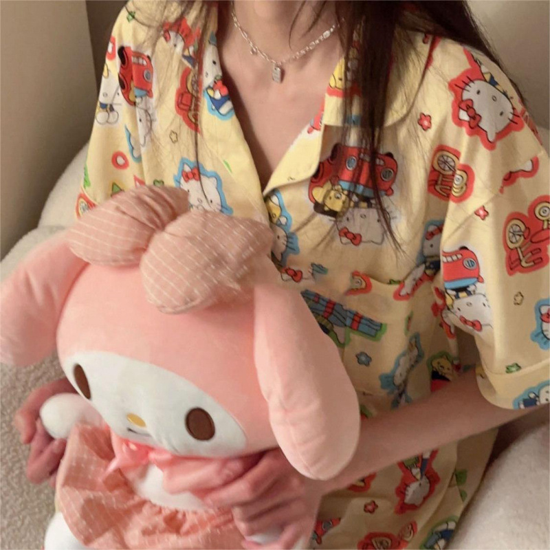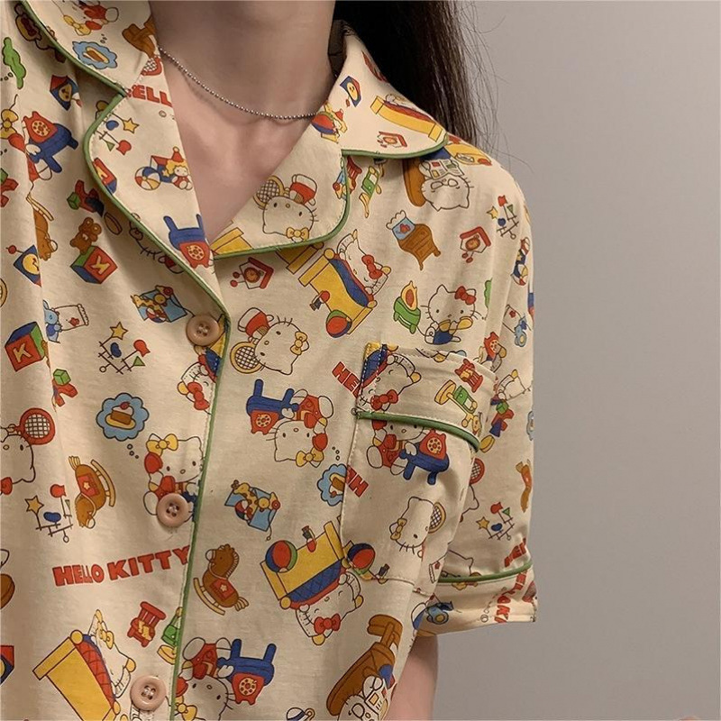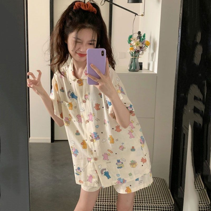 귀여운 간단한 단색 잠옷 여성 여름 새로운 반팔 Ins 스타일 높은 가치의 학생 기숙사 홈 의류 세트스토어 가기