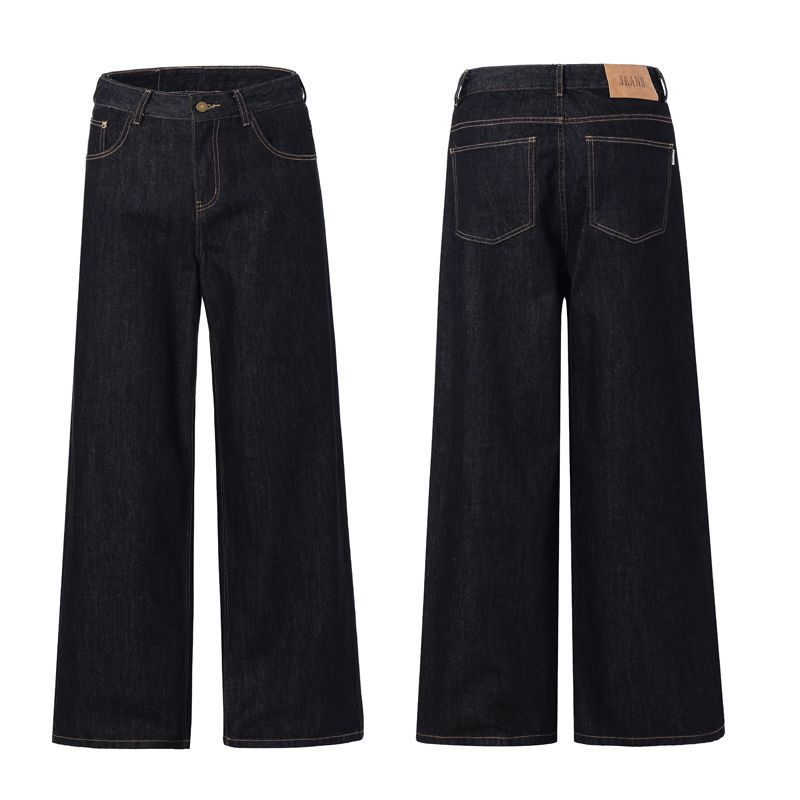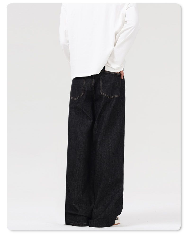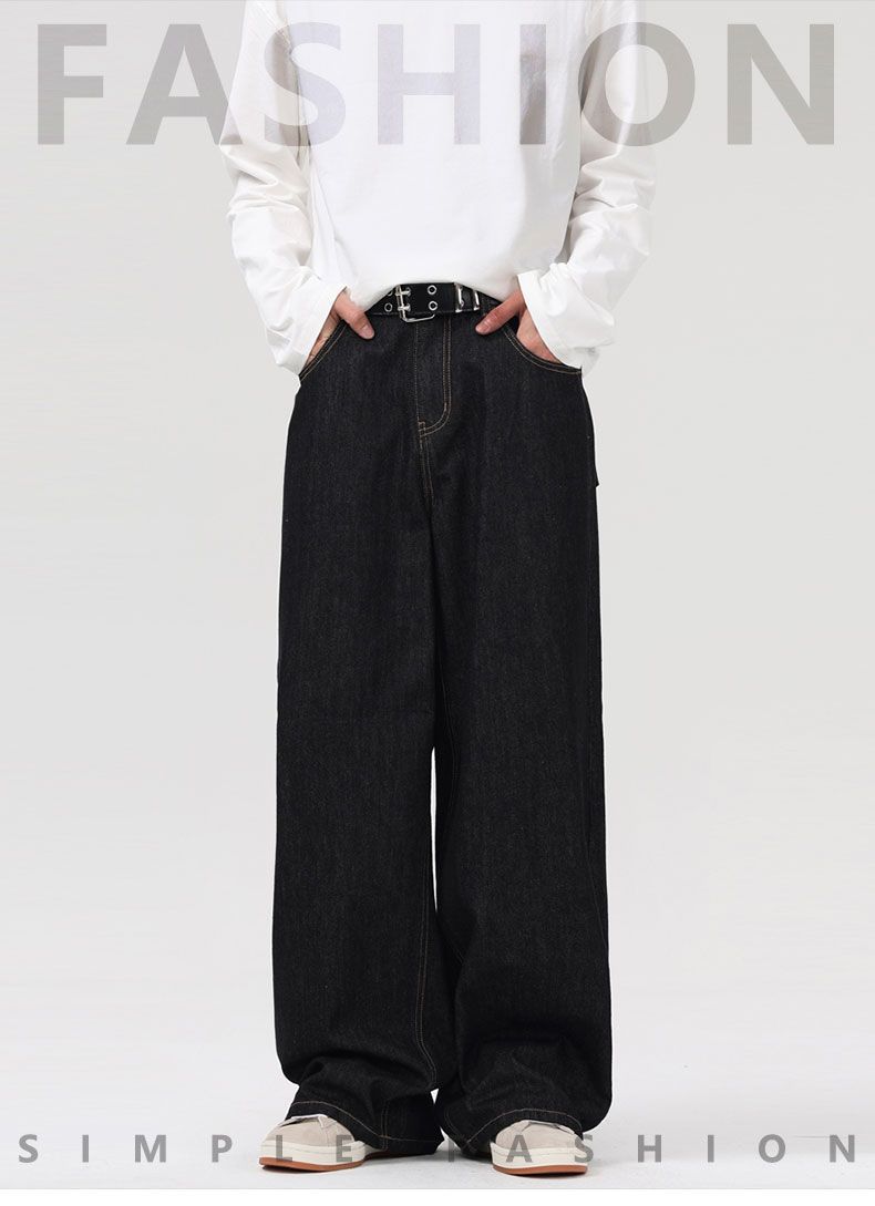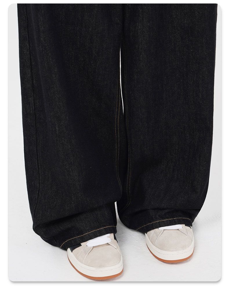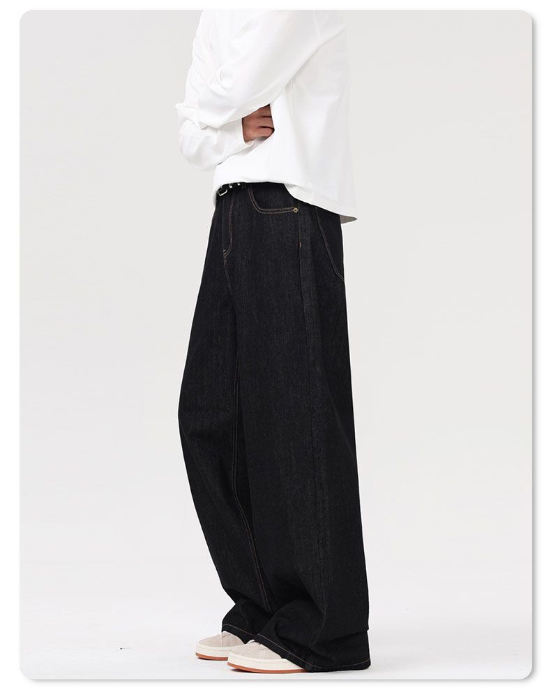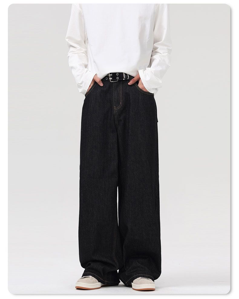 JIAMU American Basic Original Cow Black High Street Baggy Wide Leg Jeans 남성용 스트레이트 느슨한 중립 슬림 룩스토어 가기