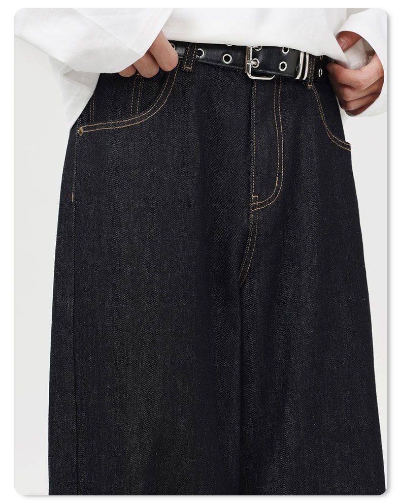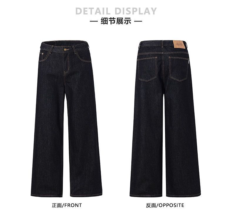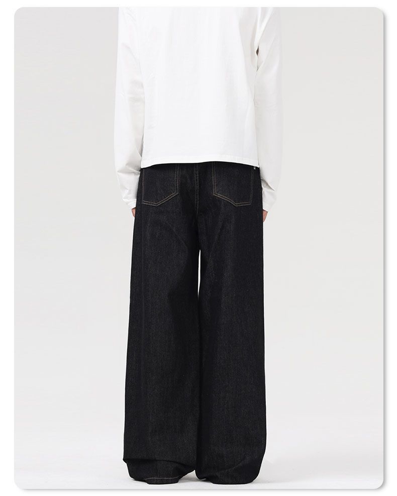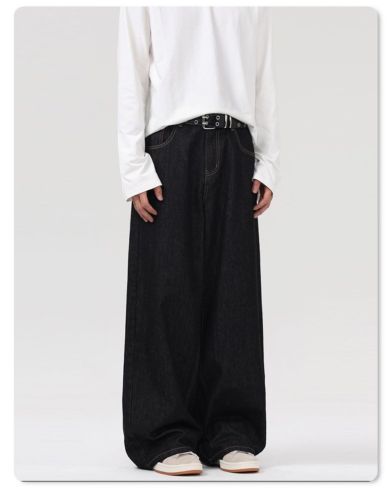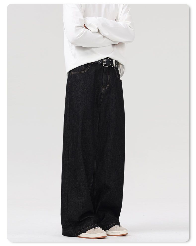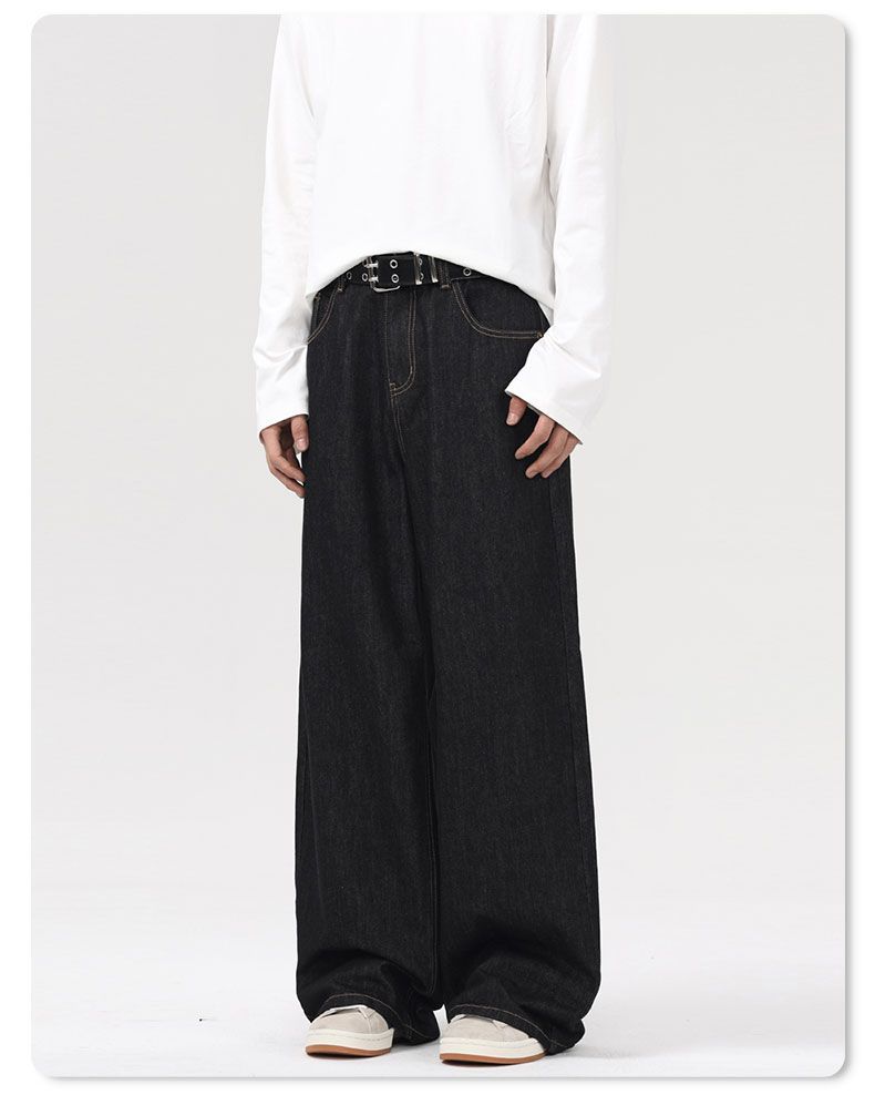 JIAMU American Basic Original Cow Black High Street Baggy Wide Leg Jeans 남성용 스트레이트 느슨한 중립 슬림 룩스토어 가기