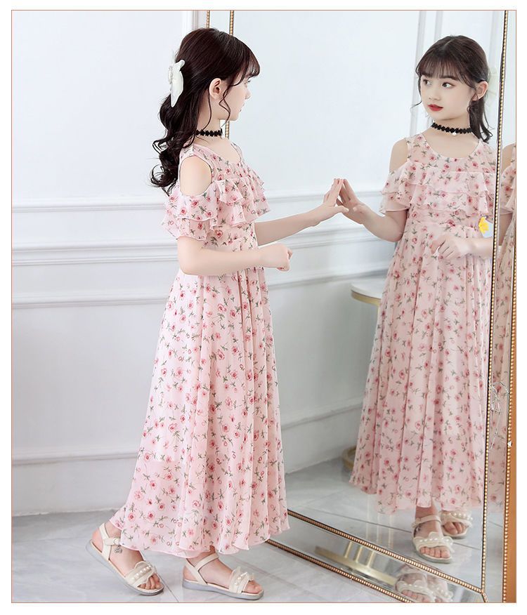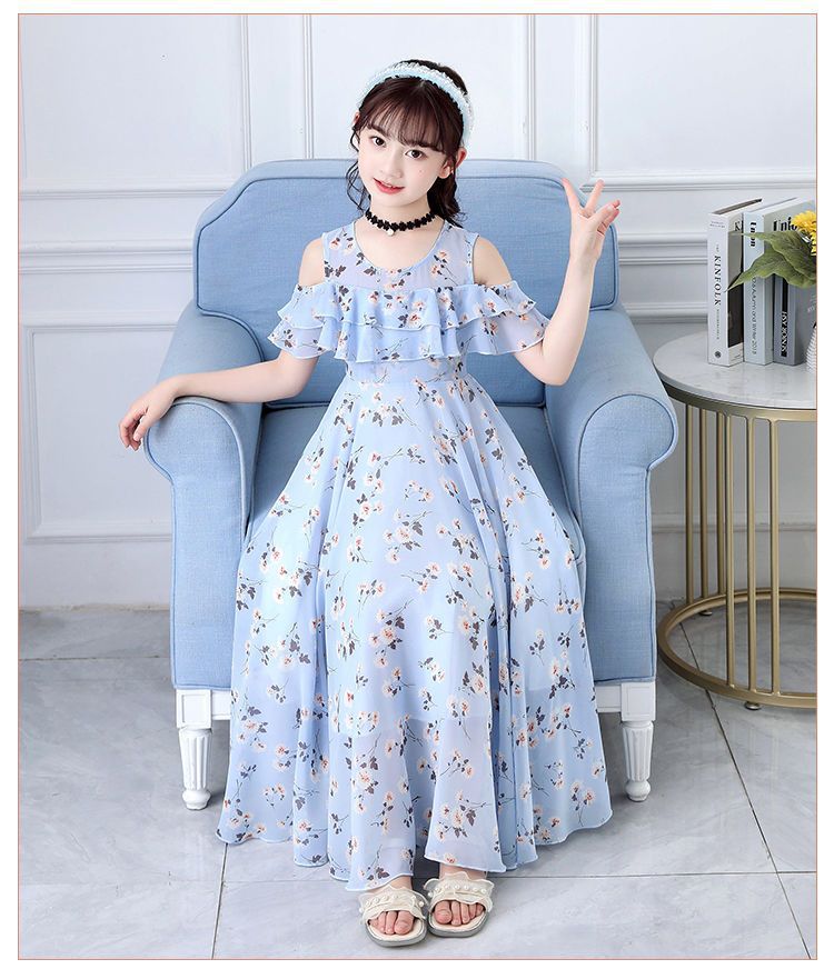 여자 여름 원피스 어린이 치마 여름 큰 어린이 시폰 원피스 소녀 서양식 꽃 원피스 긴 원피스 공주 원피스스토어 가기