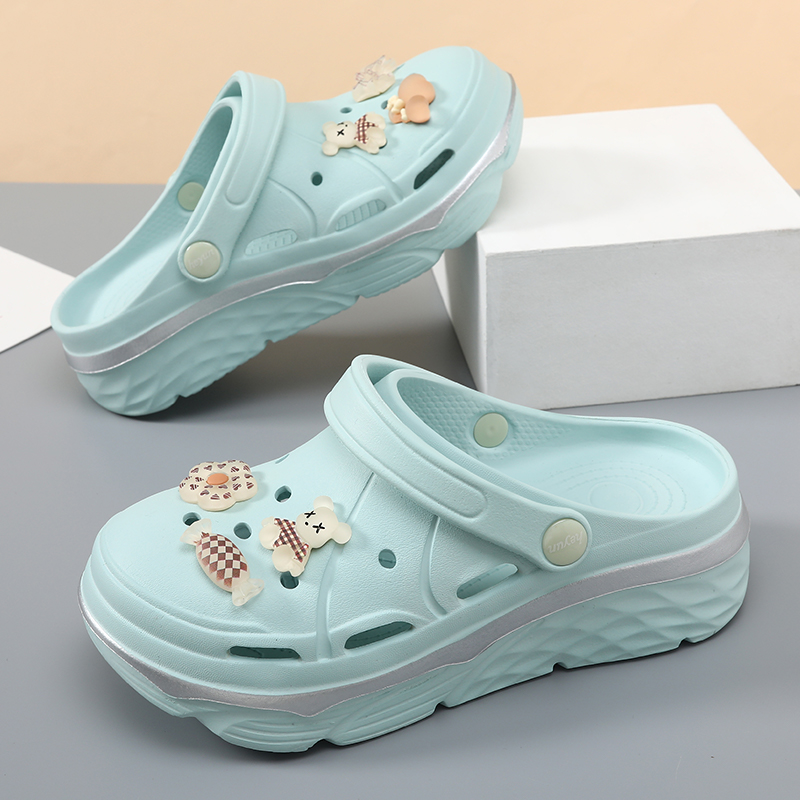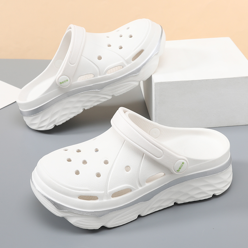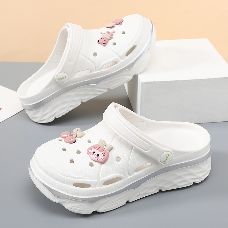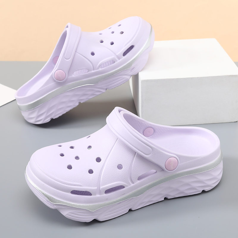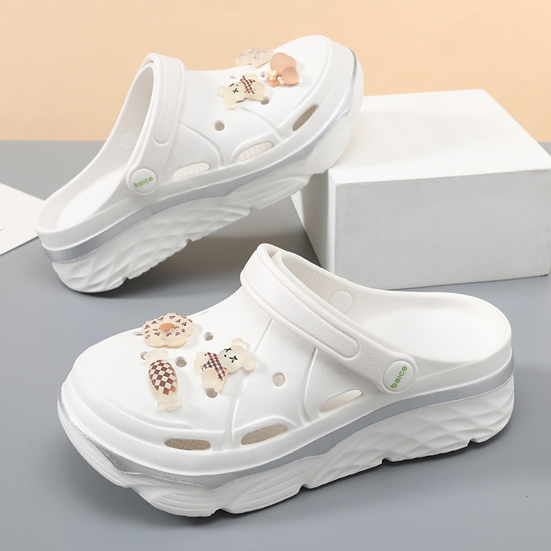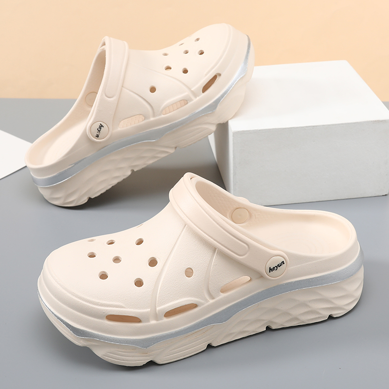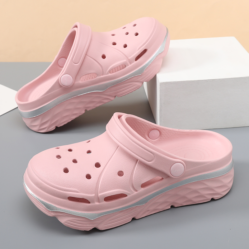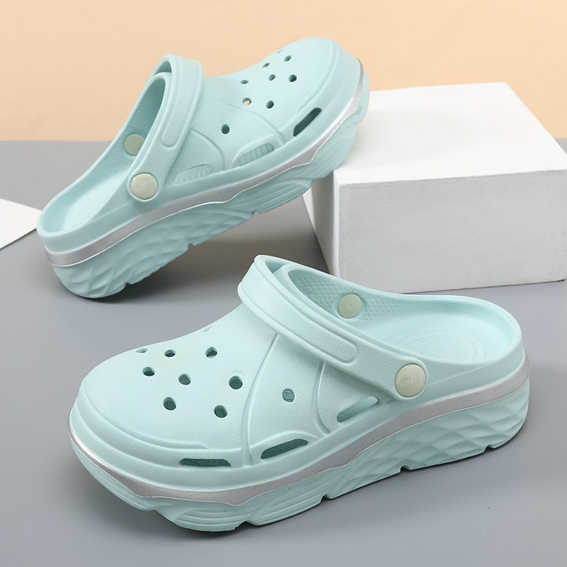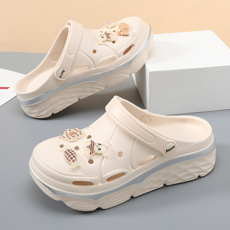 여성용 Croc Shoes 2023 새로운 두꺼운 밑창 샌들, 패셔너블한 아우터웨어, 똥 밟는 느낌을 증가시키는 비치 여성 샌들 및 슬리퍼