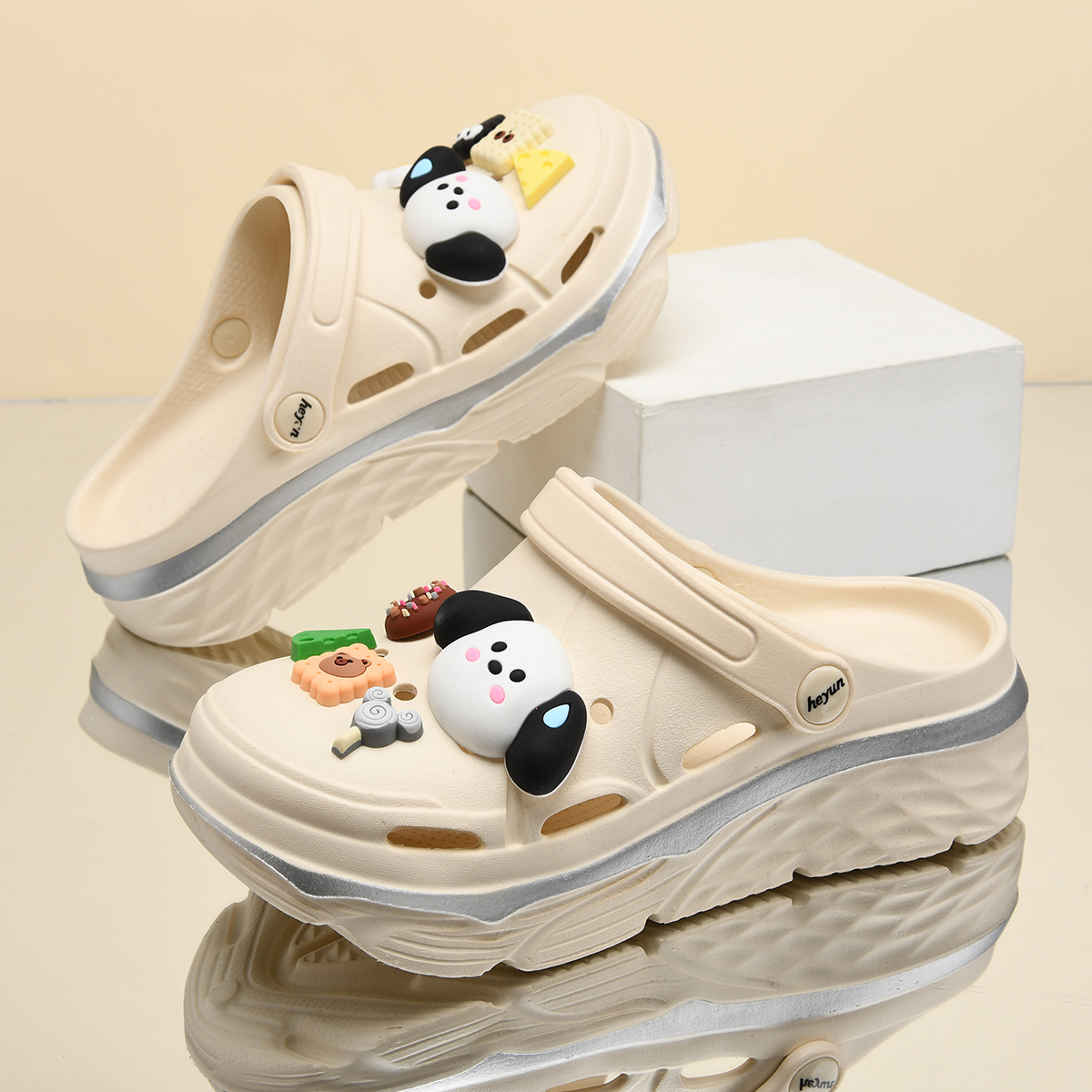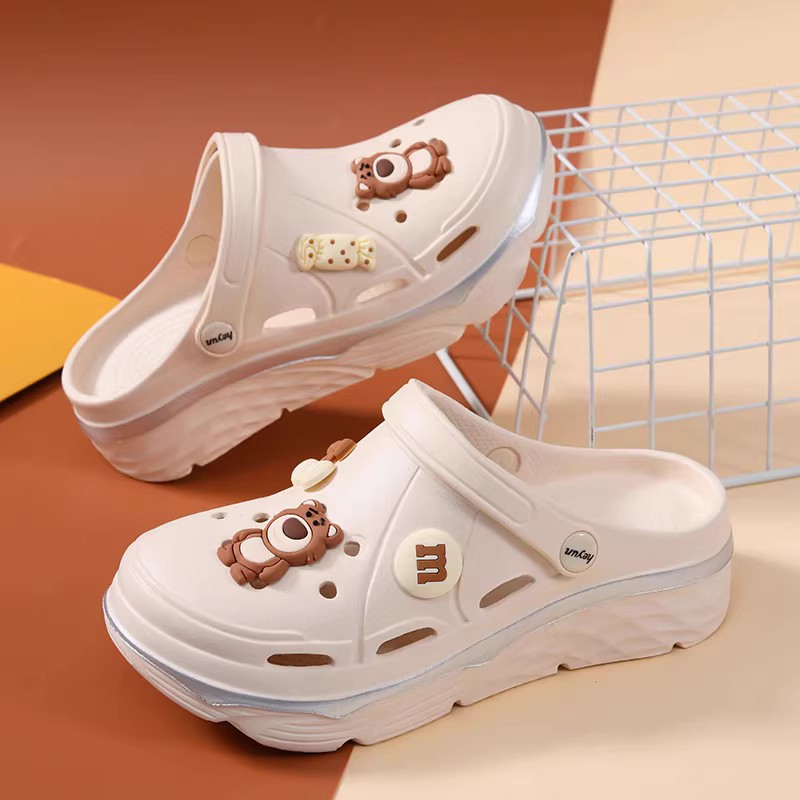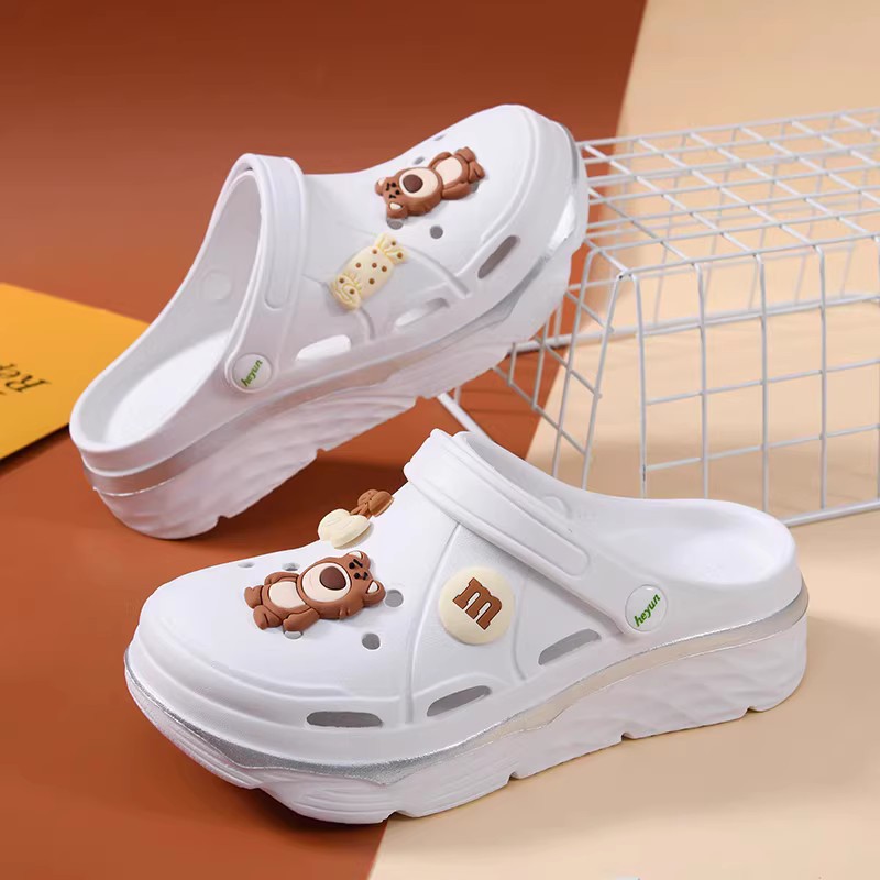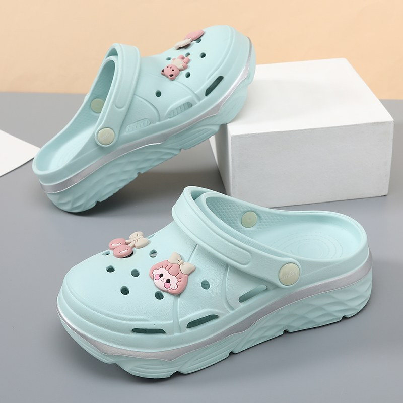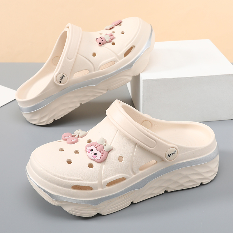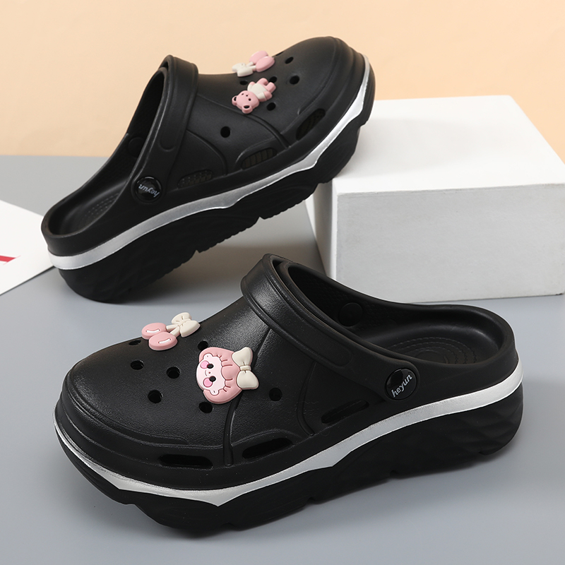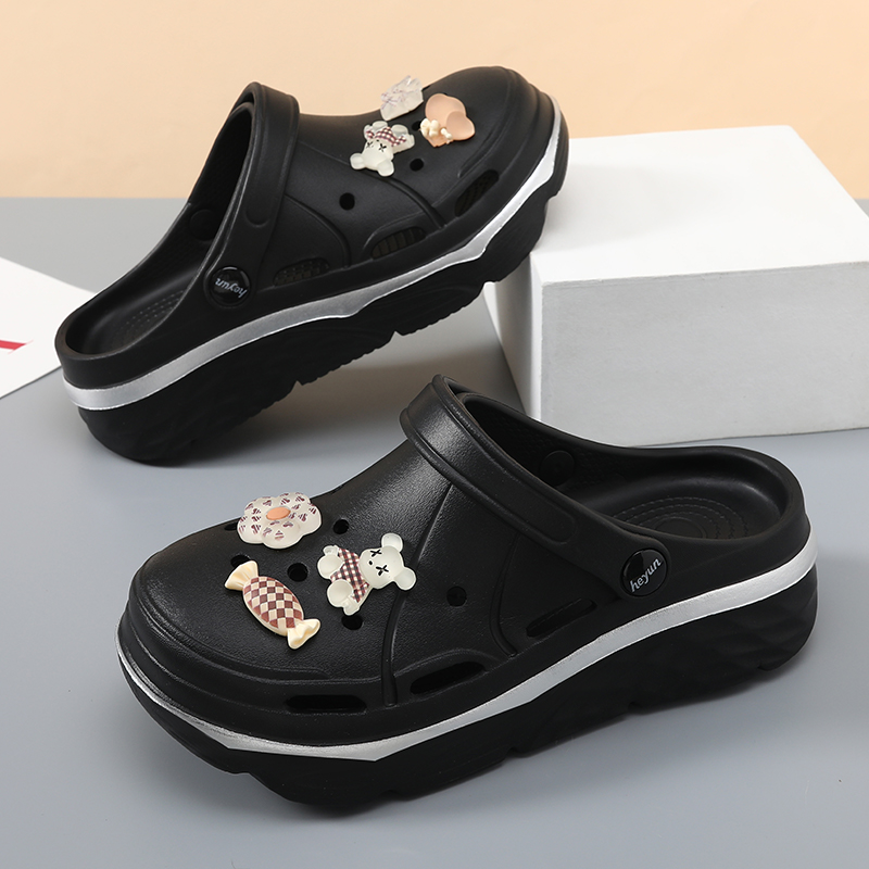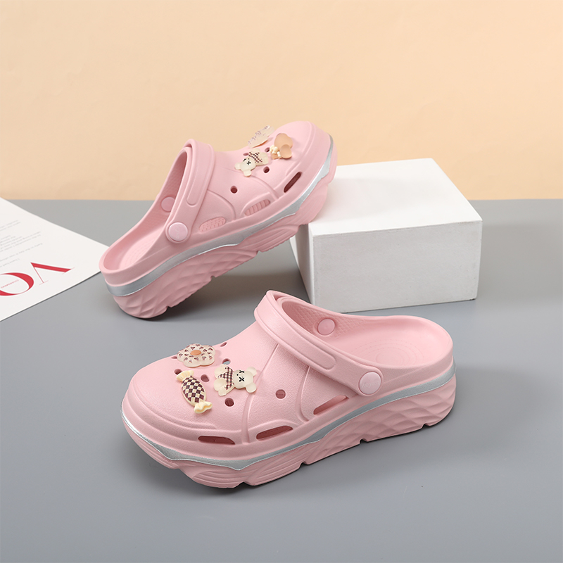 여성용 Croc Shoes 2023 새로운 두꺼운 밑창 샌들, 패셔너블한 아우터웨어, 똥 밟는 느낌을 증가시키는 비치 여성 샌들 및 슬리퍼